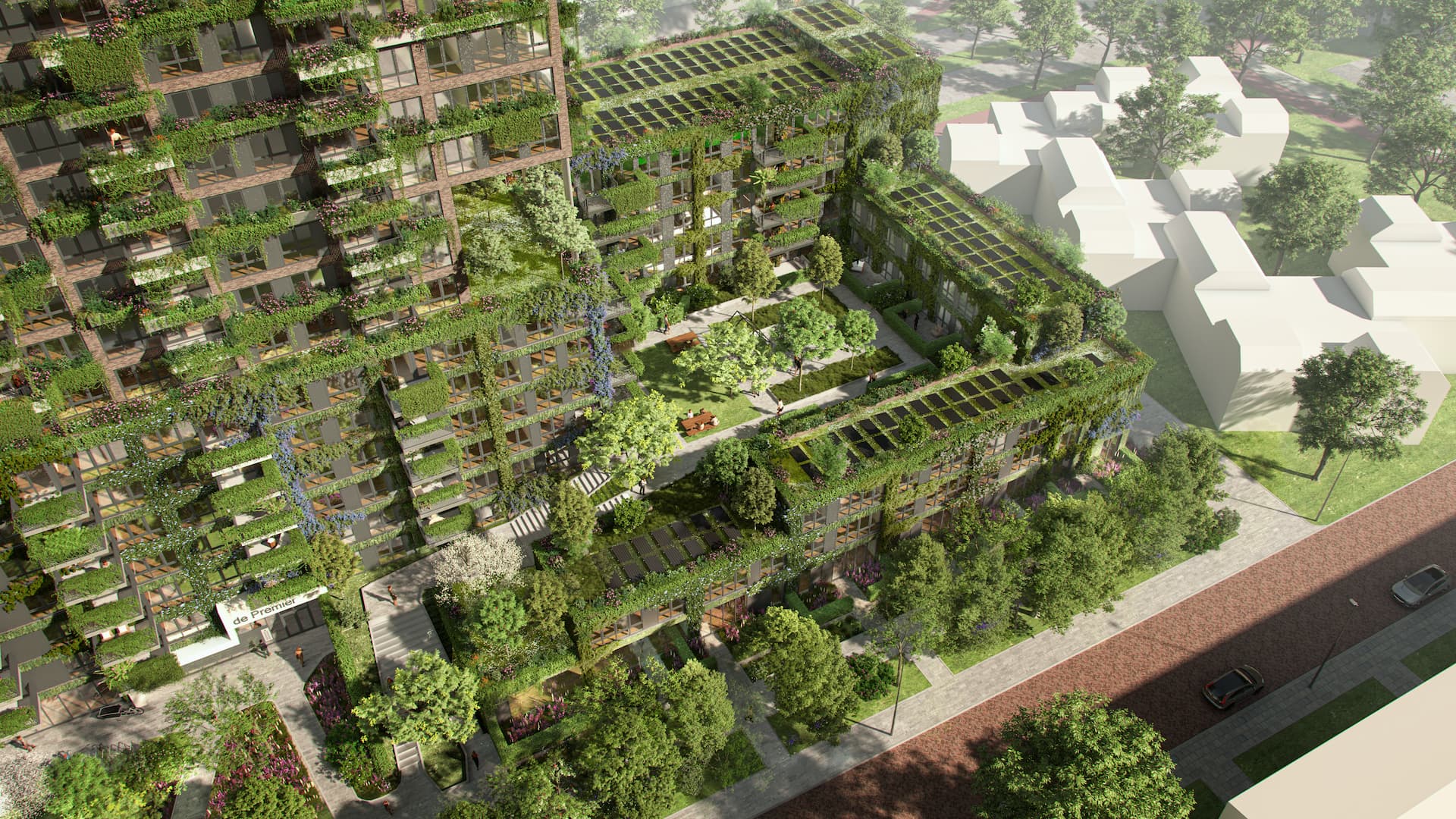 De eerste plannen voor de nieuwbouw op de hoek van de Vijf Meilaan en de Churchilllaan dateren uit 2019. Toen al stelde de raad een heel serie eisen aan het zeventig meter hoge woongebouw. Zo moet het gebouw een verticaal bos worden met groene gevels en daken. De bouw begint naar verwachting begin volgend jaar.