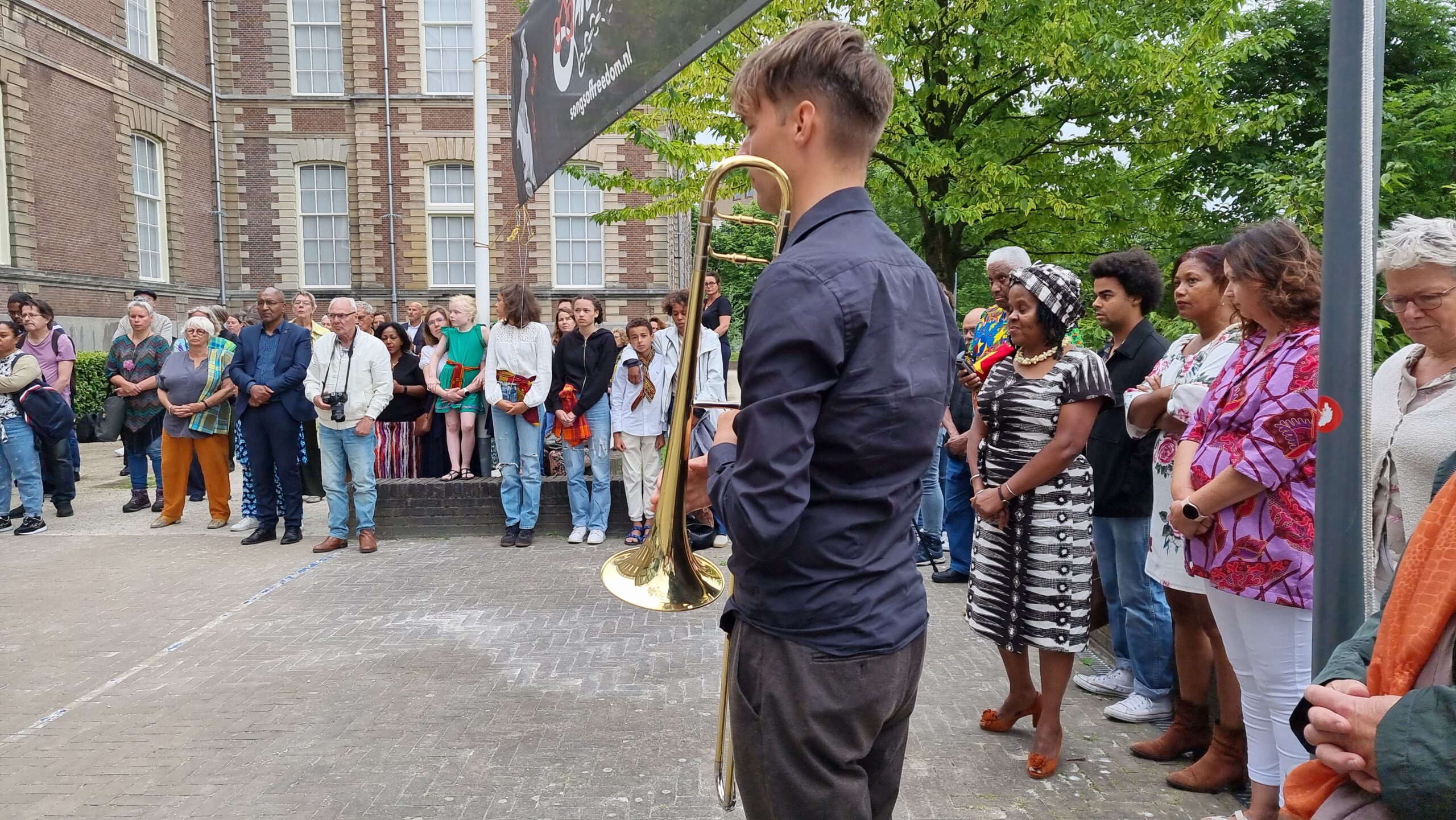 Met een bijeenkomst in de tuin van Museum Volkenkunde werd donderdagmiddag in Leiden voor het tweede jaar op rij de afschaffing van de slavernij herdacht. Er waren toespraken, gedichten en muziek. Ook werd er een minuut stilte gehouden en legden verschillende organisaties een krans.
