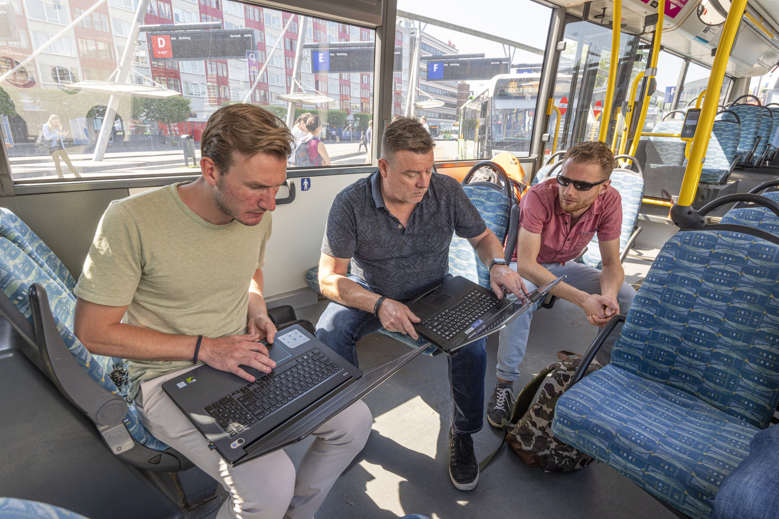 Vorige week is het systeem op een deel van de route getest. Een bus is een aantal keer heen en weer gereden tussen de Lammenschansweg en de Langegracht. De verkeerscentrale van de gemeente leverde nuttige informatie over de verkeerslichten en de verkeersregelingen. De resultaten van de test worden nu geëvalueerd. Aan het eind van het jaar vindt er weer een test plaats.