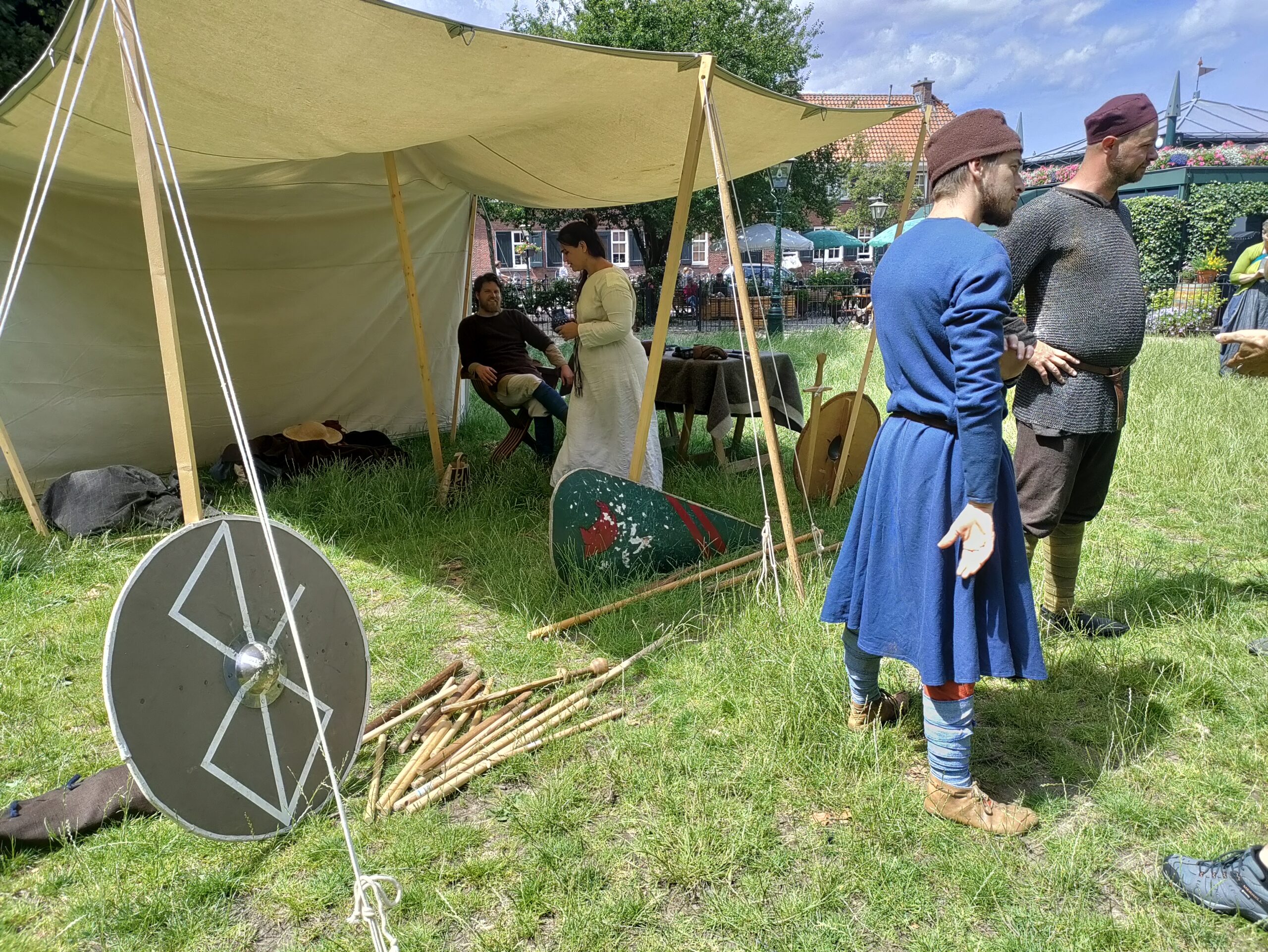 In het Van der Werfpark was een historisch tentenkamp opgezet. Daar waren ridders te vinden, die uitleg gaven over hun wapentuig. Vrouwen bakten er vol enthousiasme brood uit de periode 900-1200 op basis van wetenschappelijke inzichten. Er was een heuse smid en een handelaar in oude spelletjes gemaakt van glas en leer. Het hele event werd omlijst met middeleeuwse live-muziek.