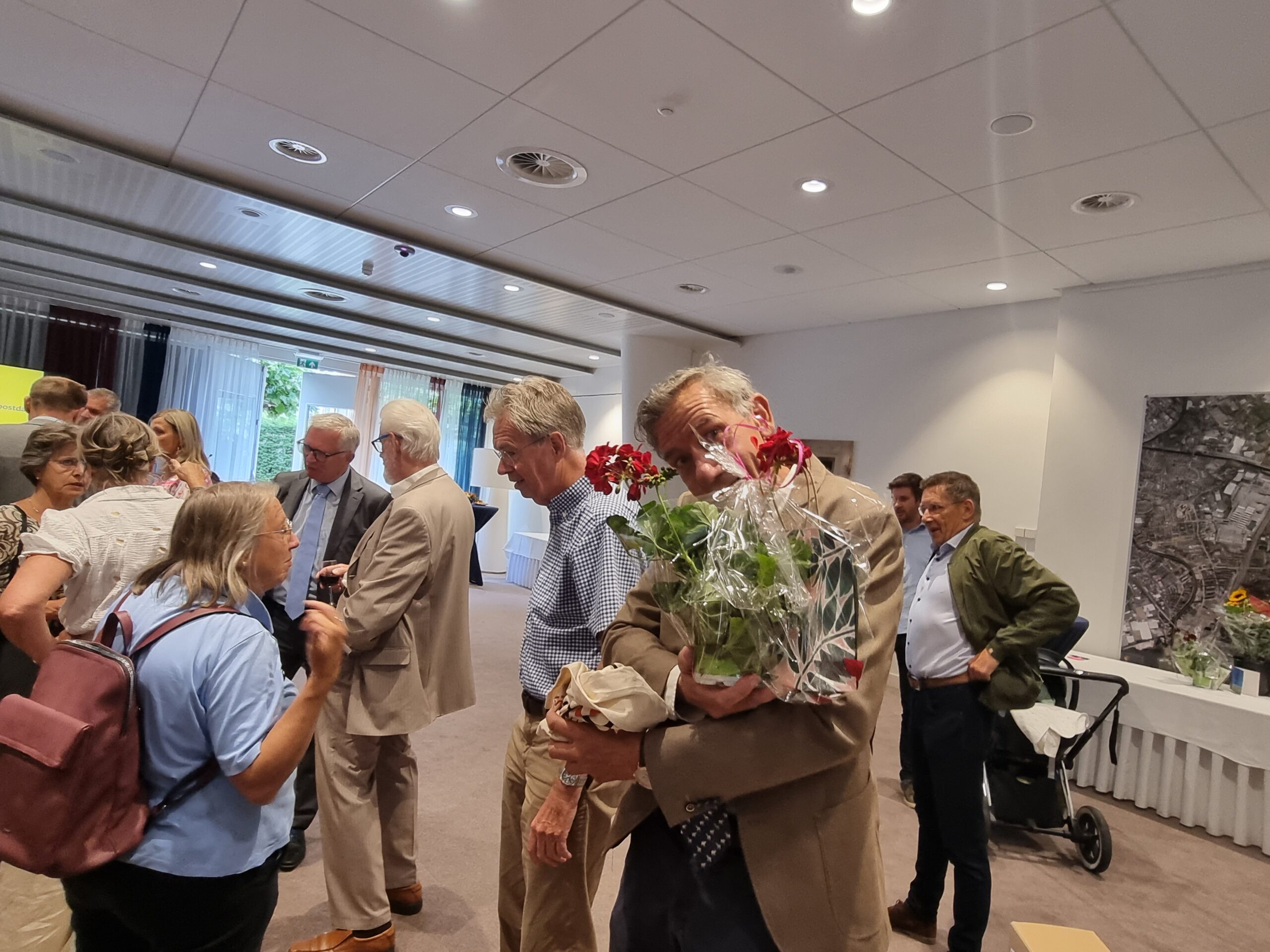 Matthijs Huizing verruilt het wethouderschap voor de rol van oppositieleider. “Ik mag nu als fractievoorzitter van de VVD mijn opvolger gaan controleren”, zegt hij vanachter de geraniums die hij als ludiek cadeautjes kreeg van VVD-raadslid Inge Oosterhuis.