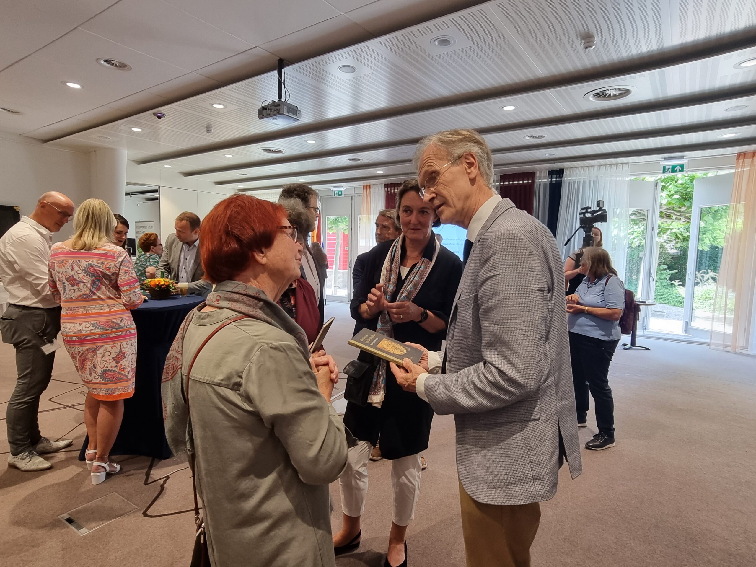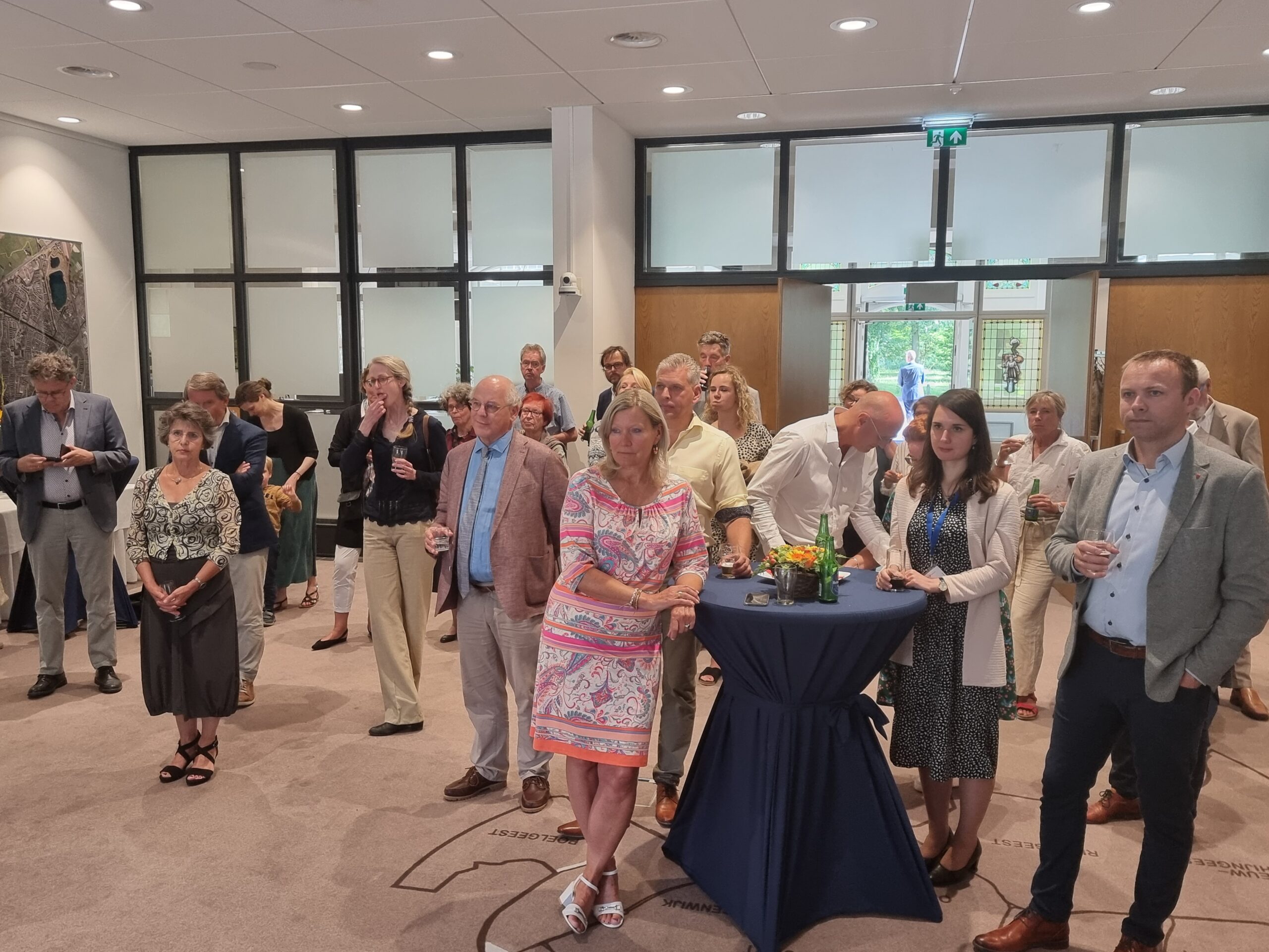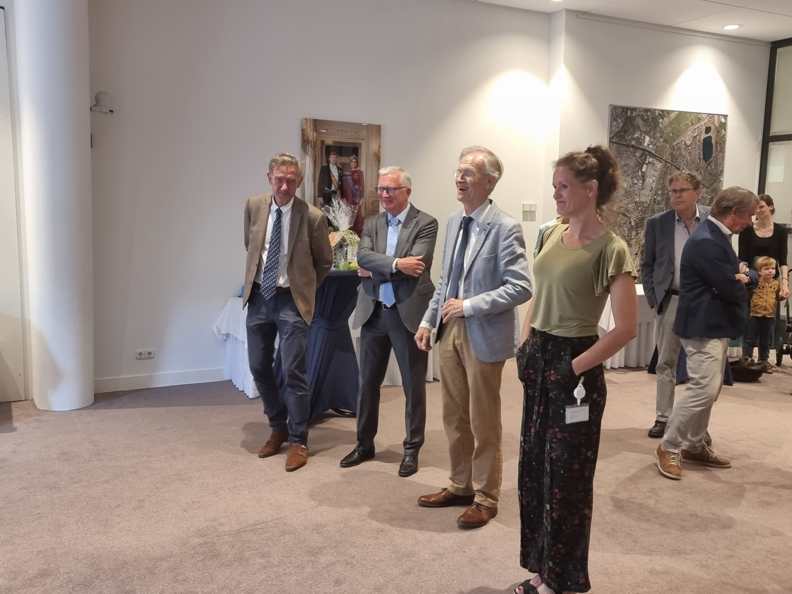 Mathijs Huizing (in het midden) tijdens de afscheidsreceptie.