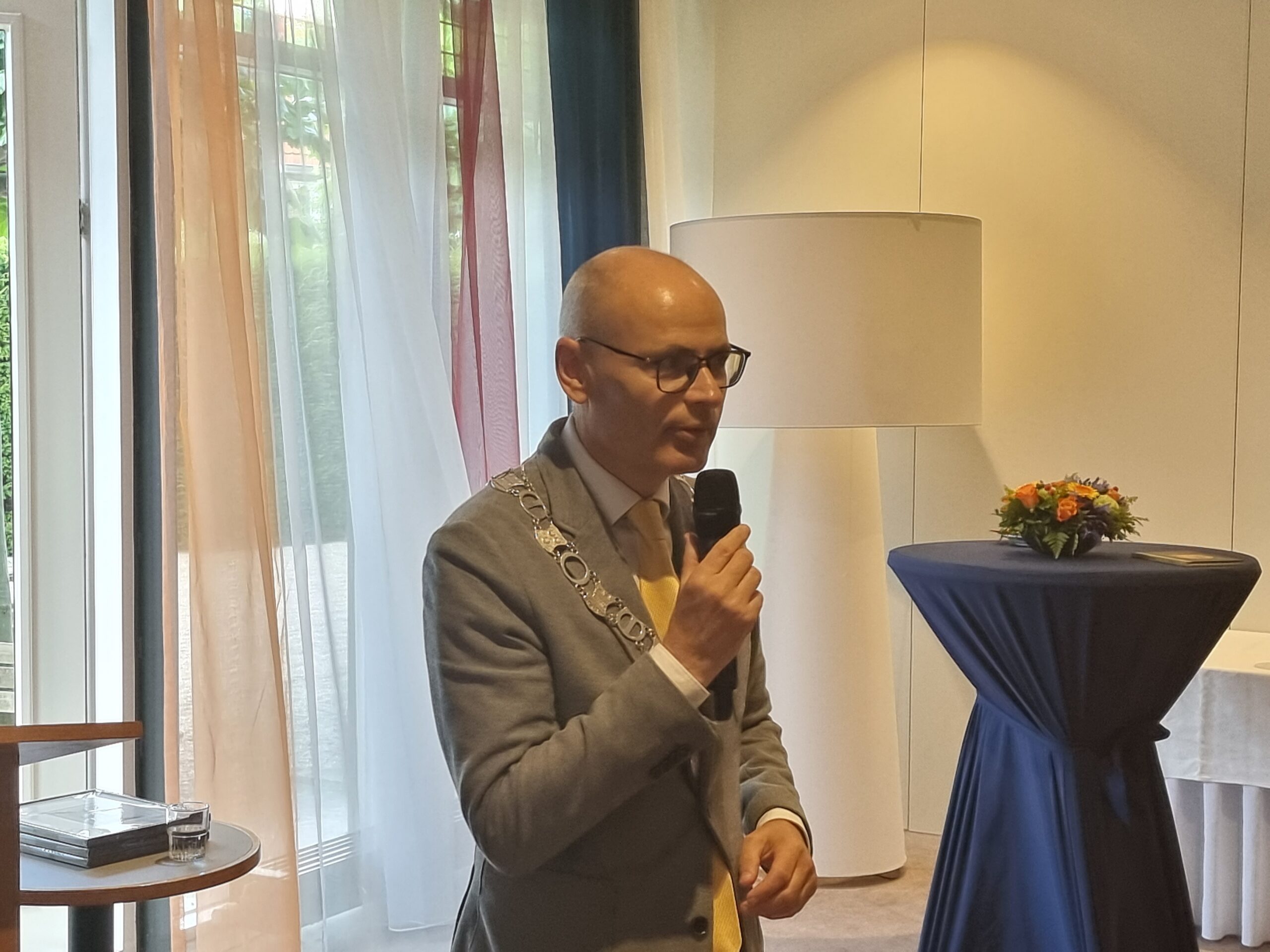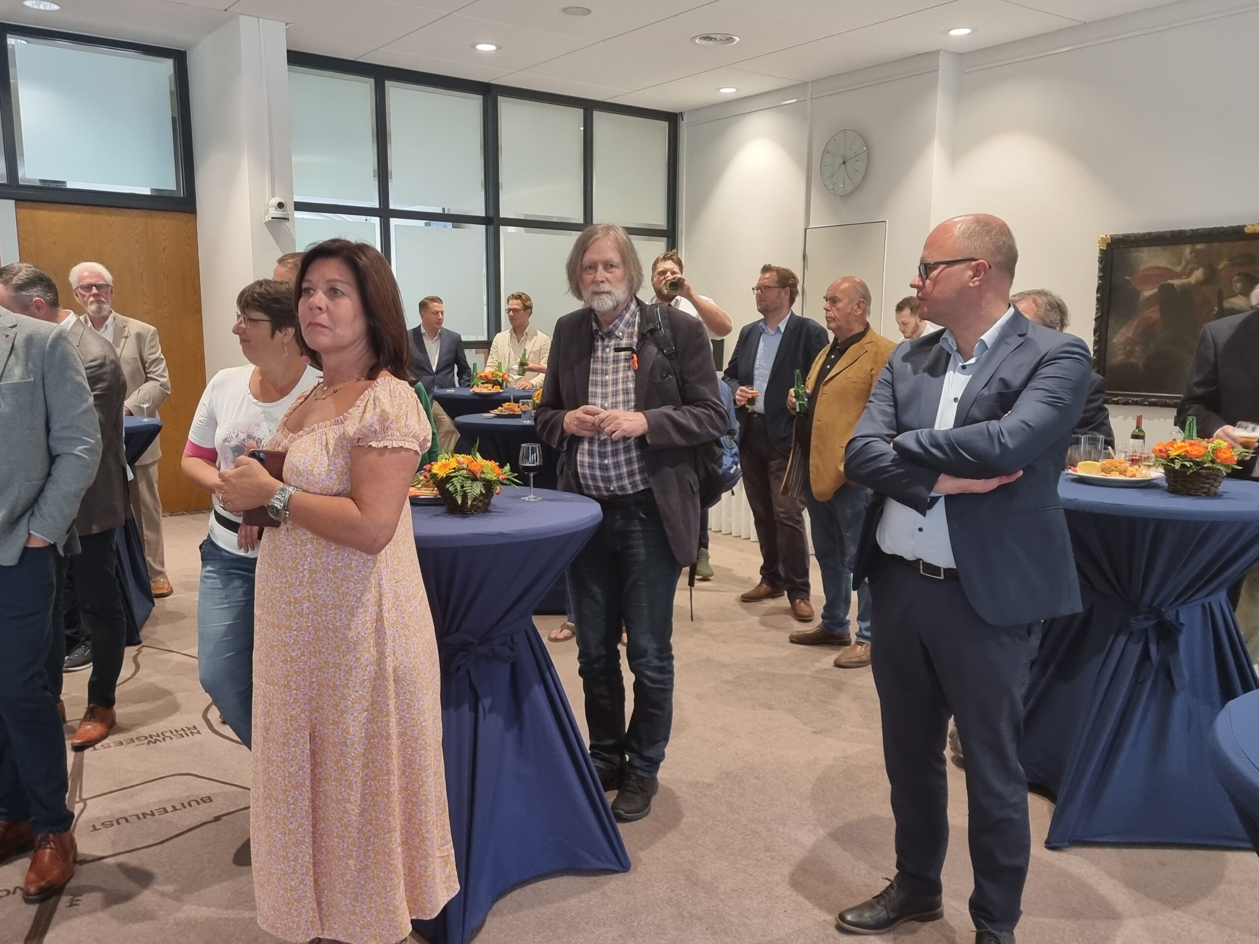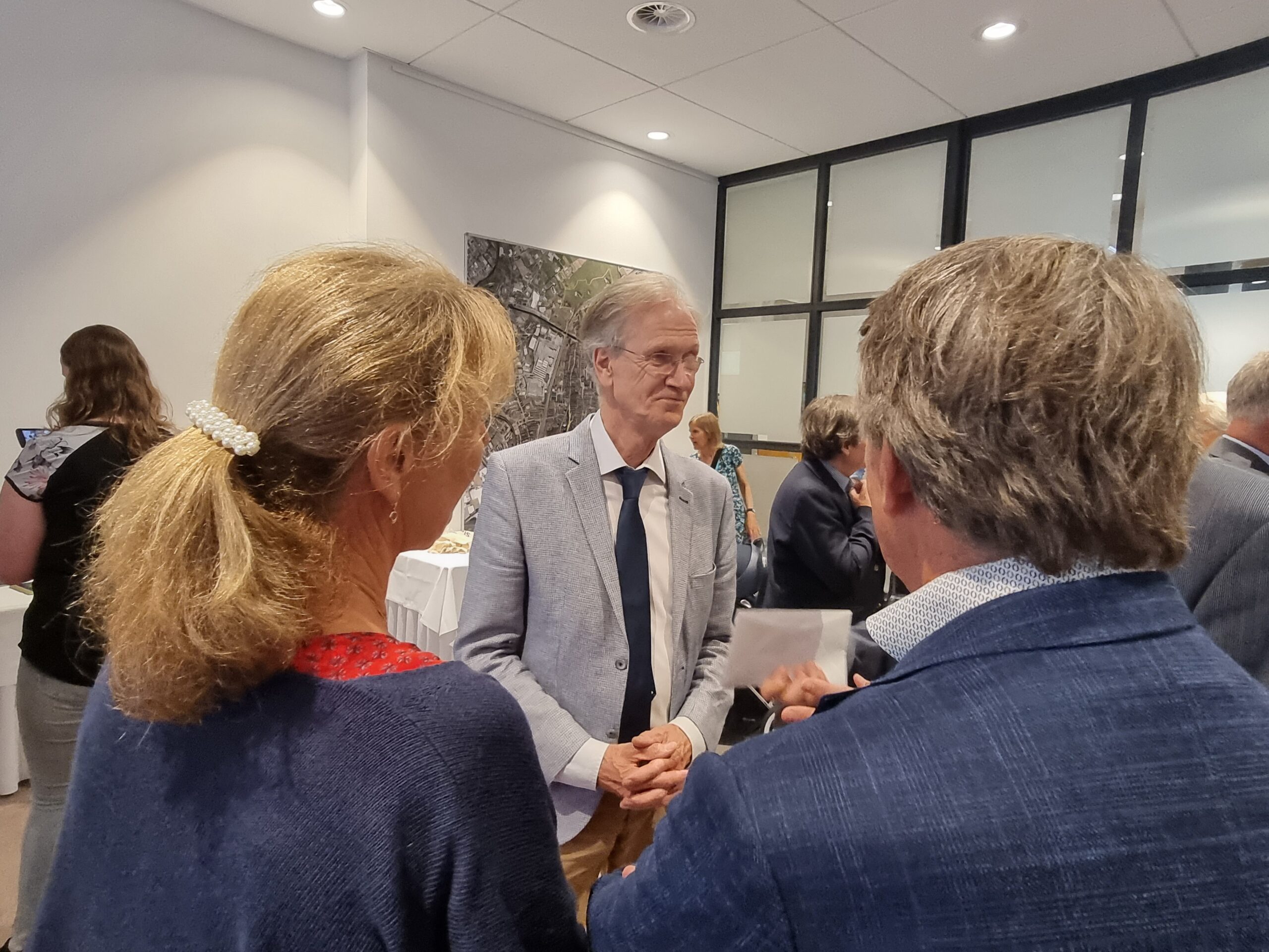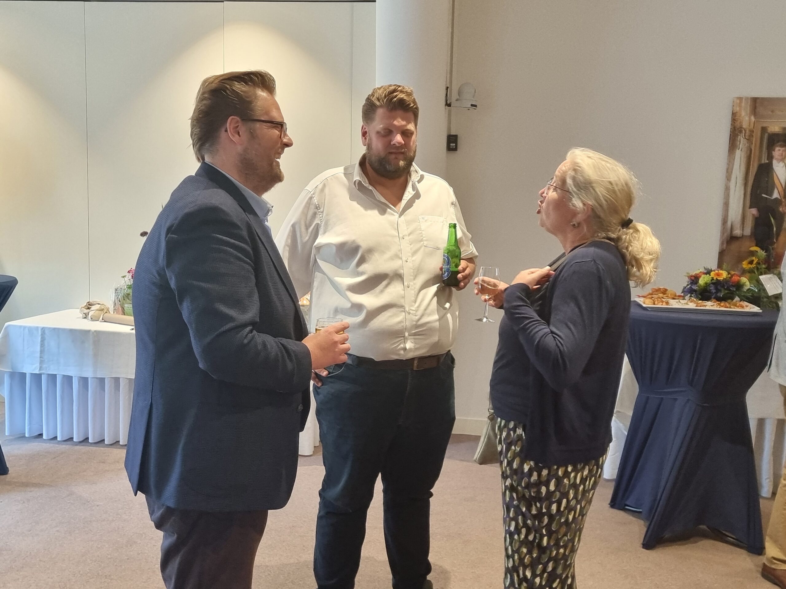 Chris de Waard maakte met de Sleutelstad-microfoon een rondje langs de drie vertrekkende wethouders.