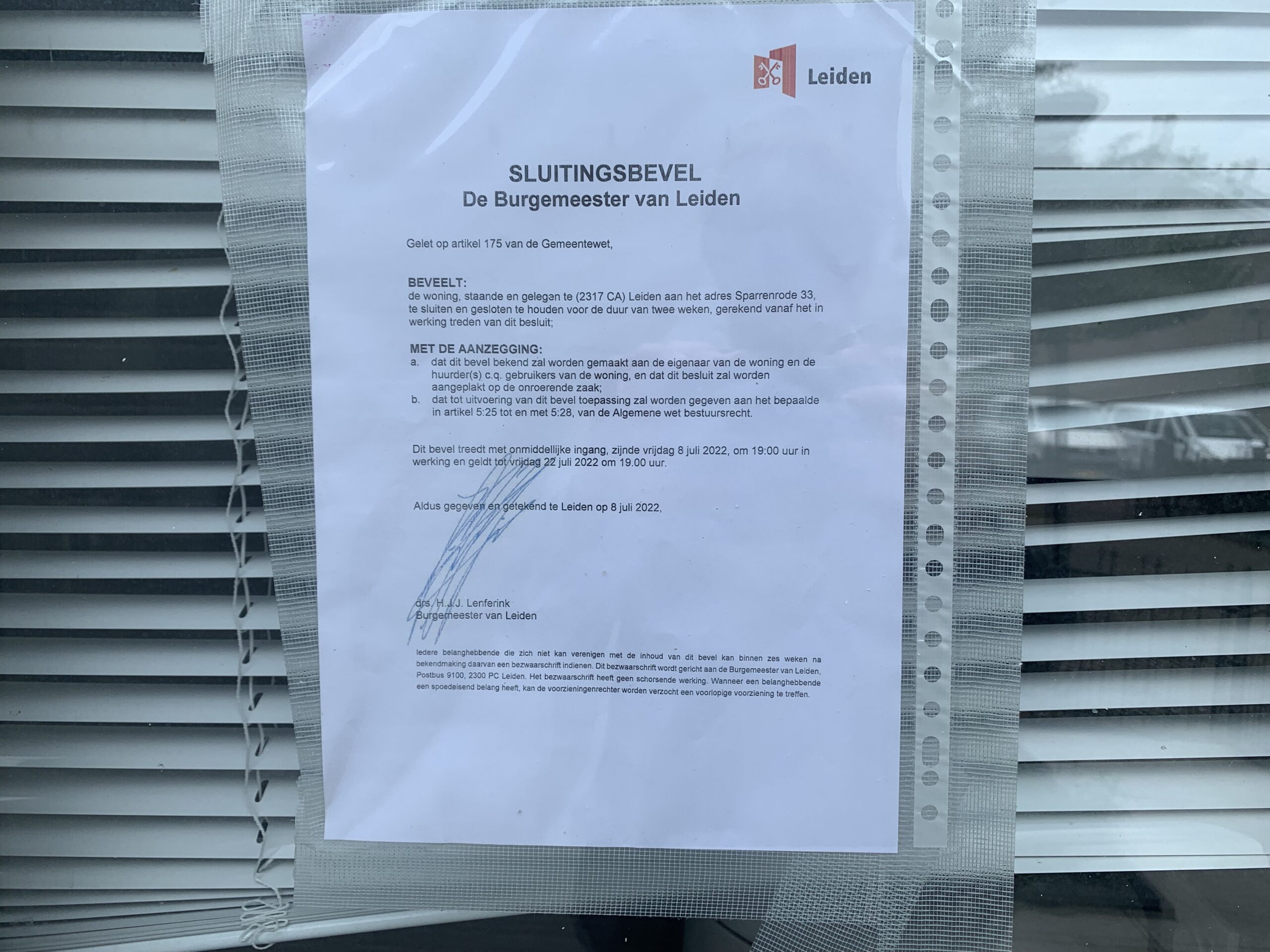 De sluiting van de woning aan de Sparrenrode is vrijdagavond ingegaan en geldt in ieder geval tot vrijdag 22 juli.