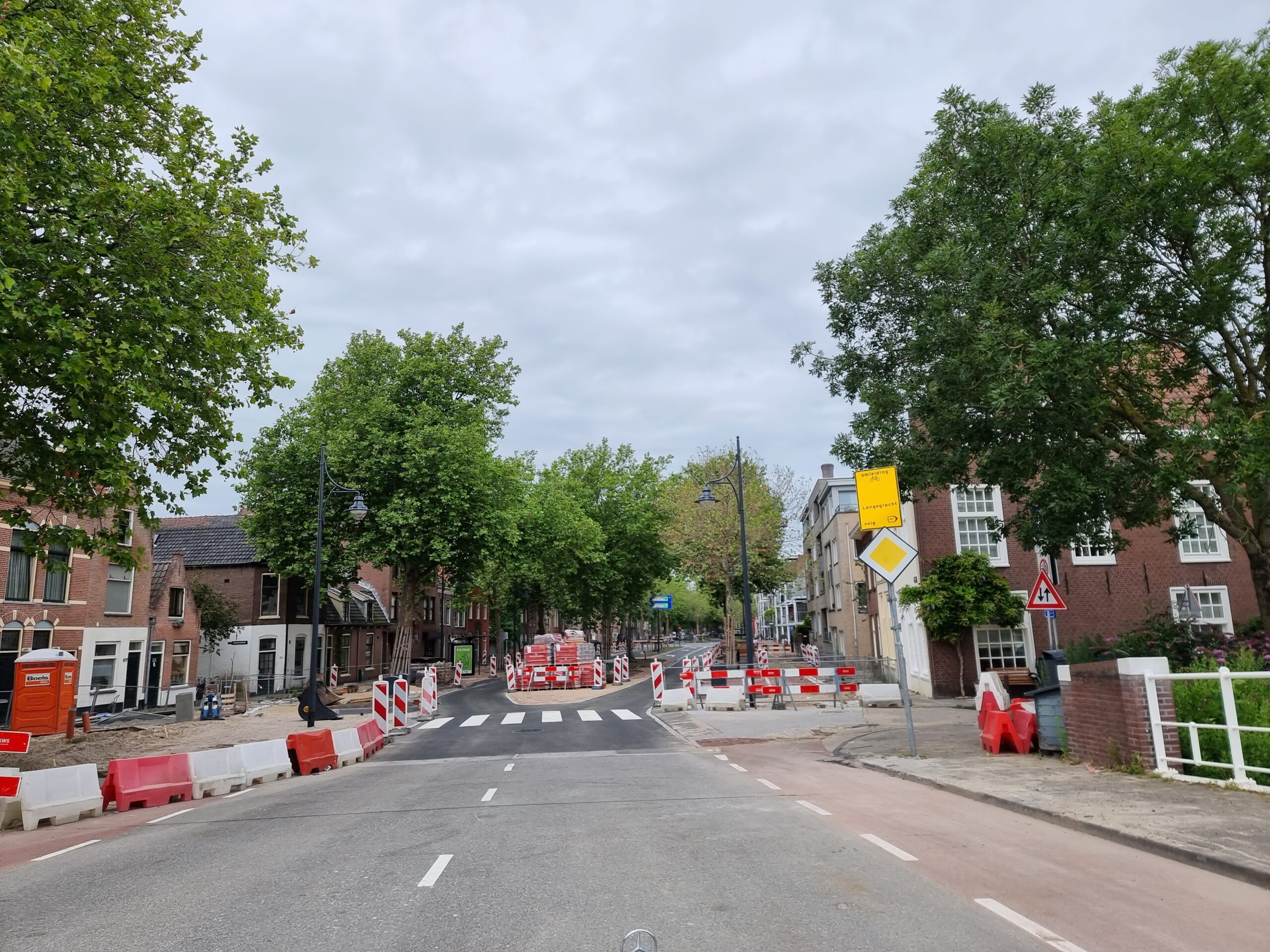 Doordat er vertraging is bij de levering van de klinkers die onder andere nodig zijn voor de stoepen, wordt daar de komende periode nog aan gewerkt. Naar verwachting is het straatwerk eind augustus helemaal klaar. Fietsers moeten hierdoor nog even om blijven fietsen.