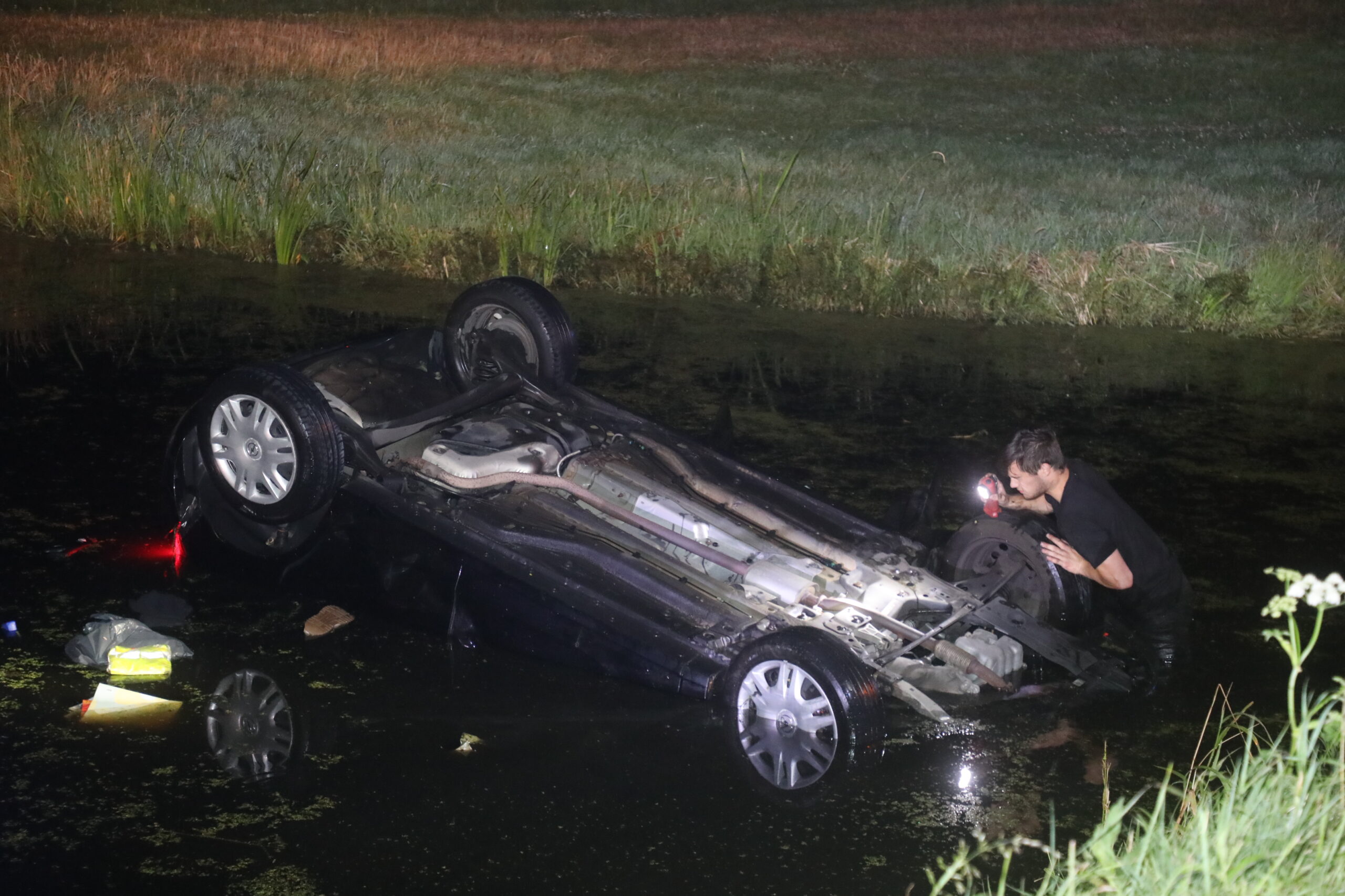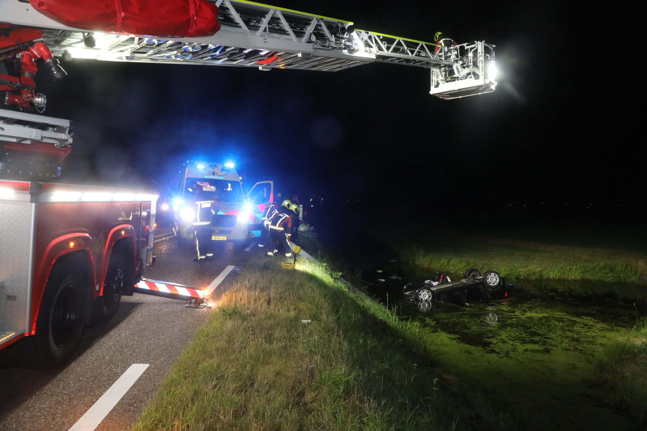 Een automobilist is in de nacht van vrijdag op zaterdag met zijn auto ondersteboven in een sloot beland langs de N445 tussen Leiderdorp en Oud-Ade. Dat gebeurde rond 1.15 uur. Gealarmeerde hulpdiensten rukten massaal uit voor het incident.