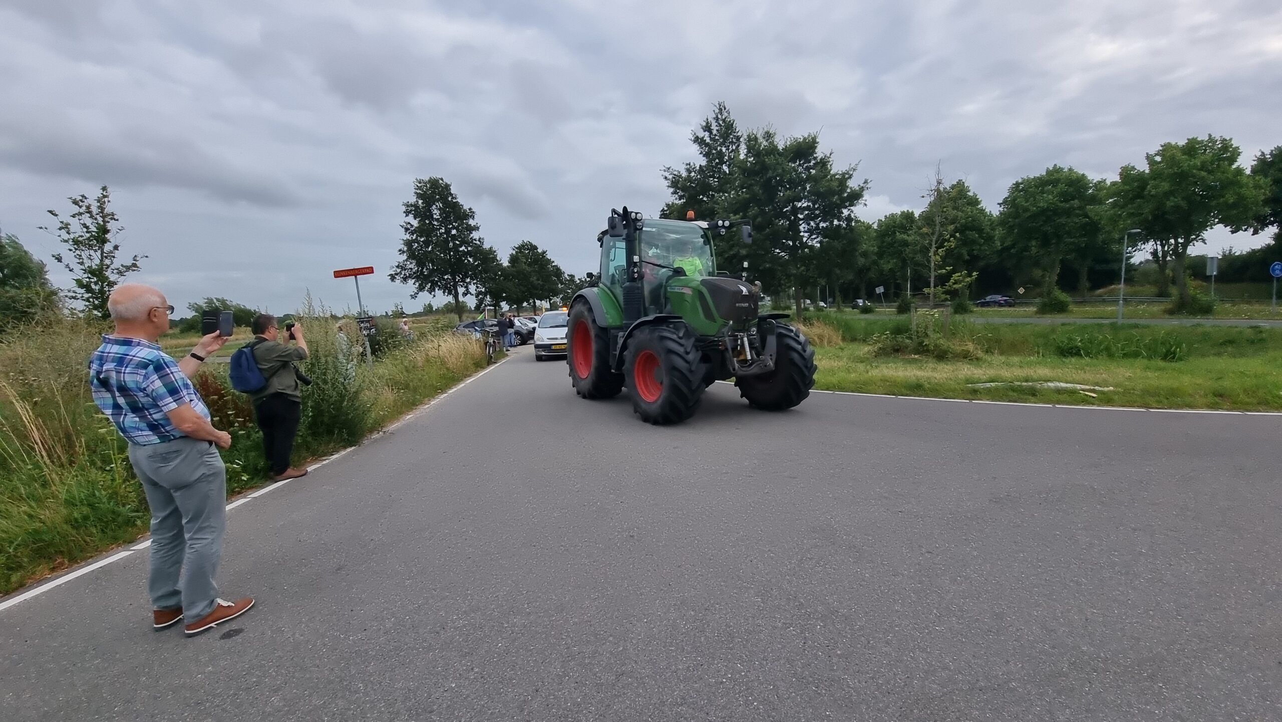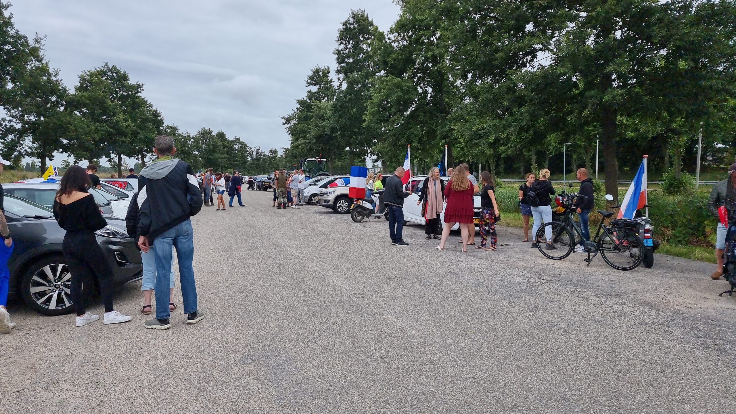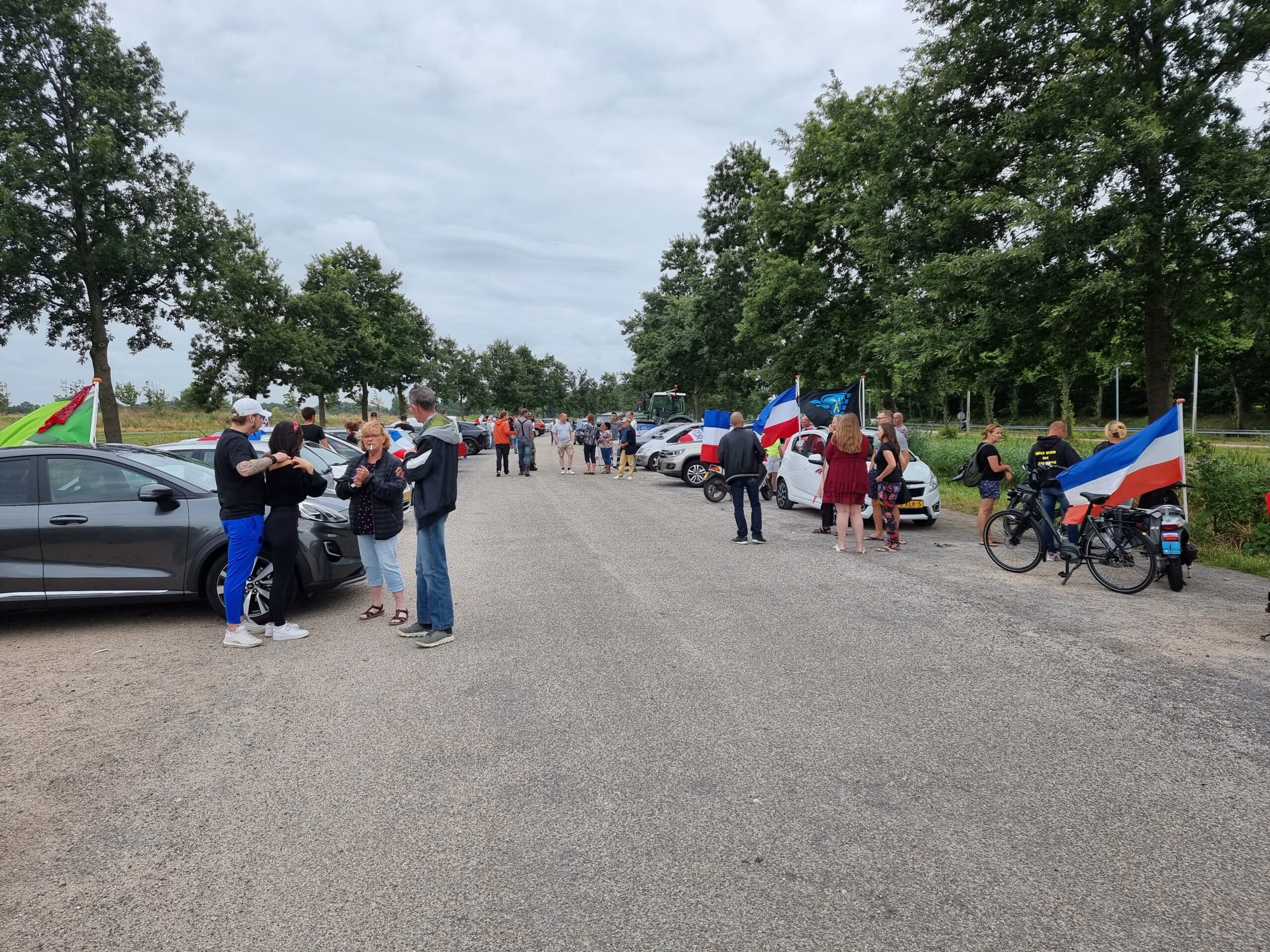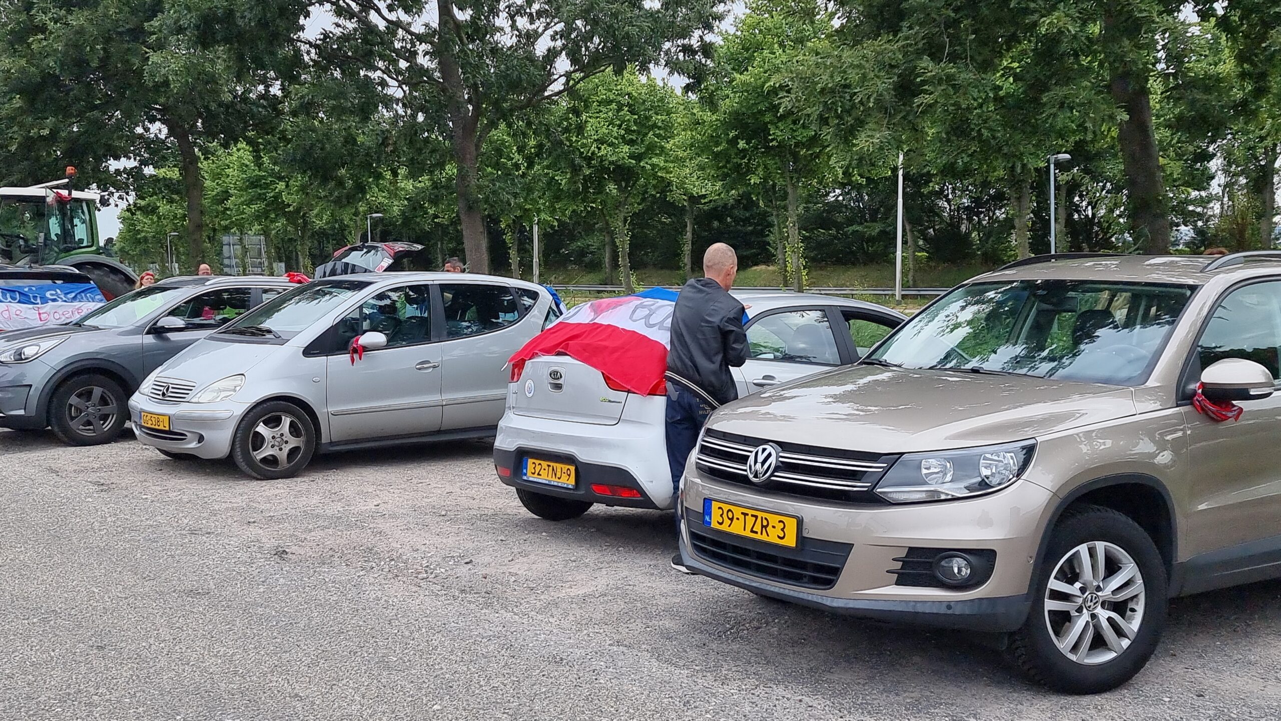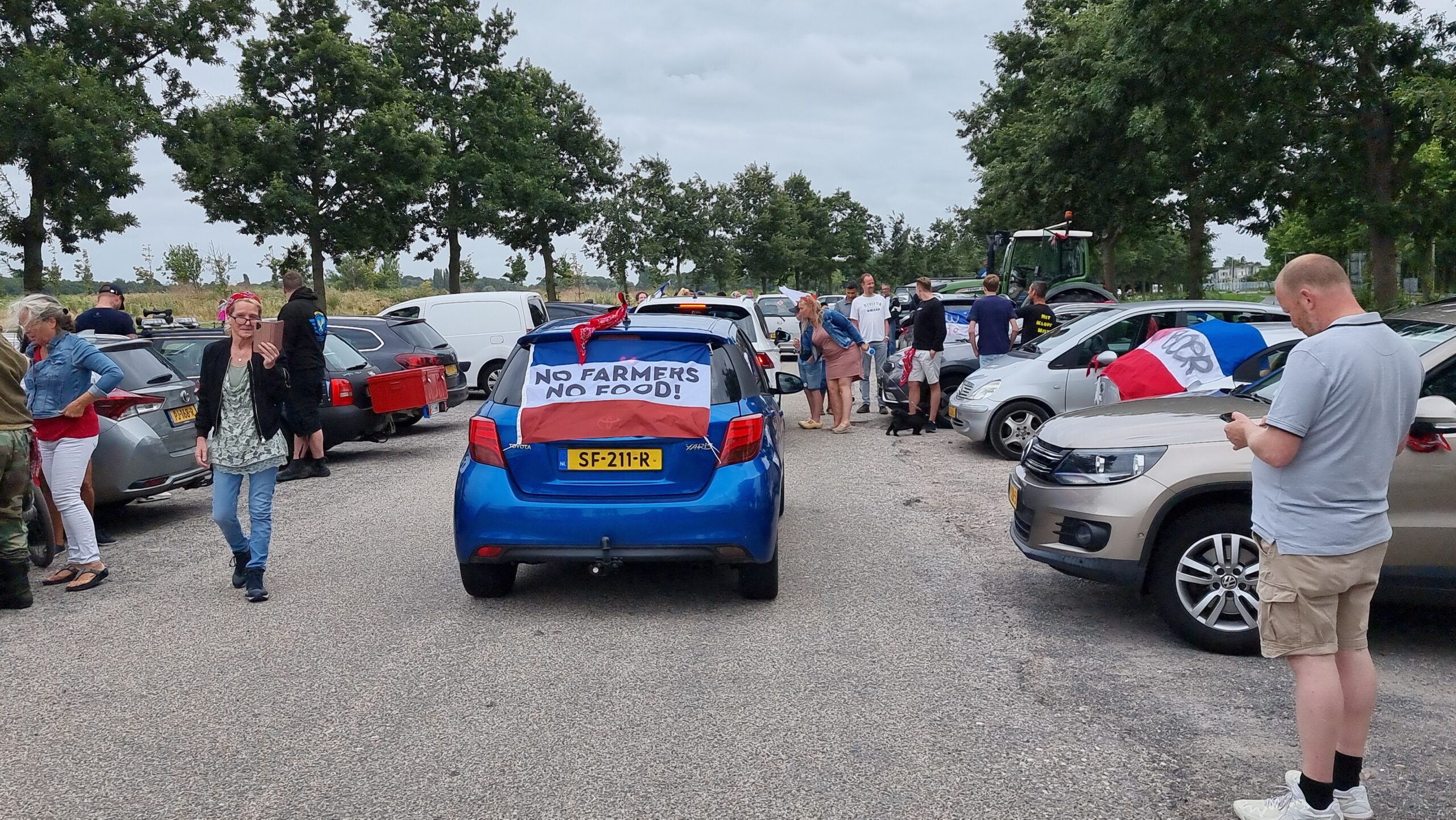 Bij de Klinkenbergerplas in Oegstgeest verzamelden zich maandag aan het begin van de avond enkele tientallen demonstranten die met hun actie de boeren een hart onder de riem wilden steken. “Maar ook de vissers en tuinders”, zegt een vrouw die uit een auto met omgekeerde vlag stapt. “En de bollenboeren, want dat zijn de volgende.”