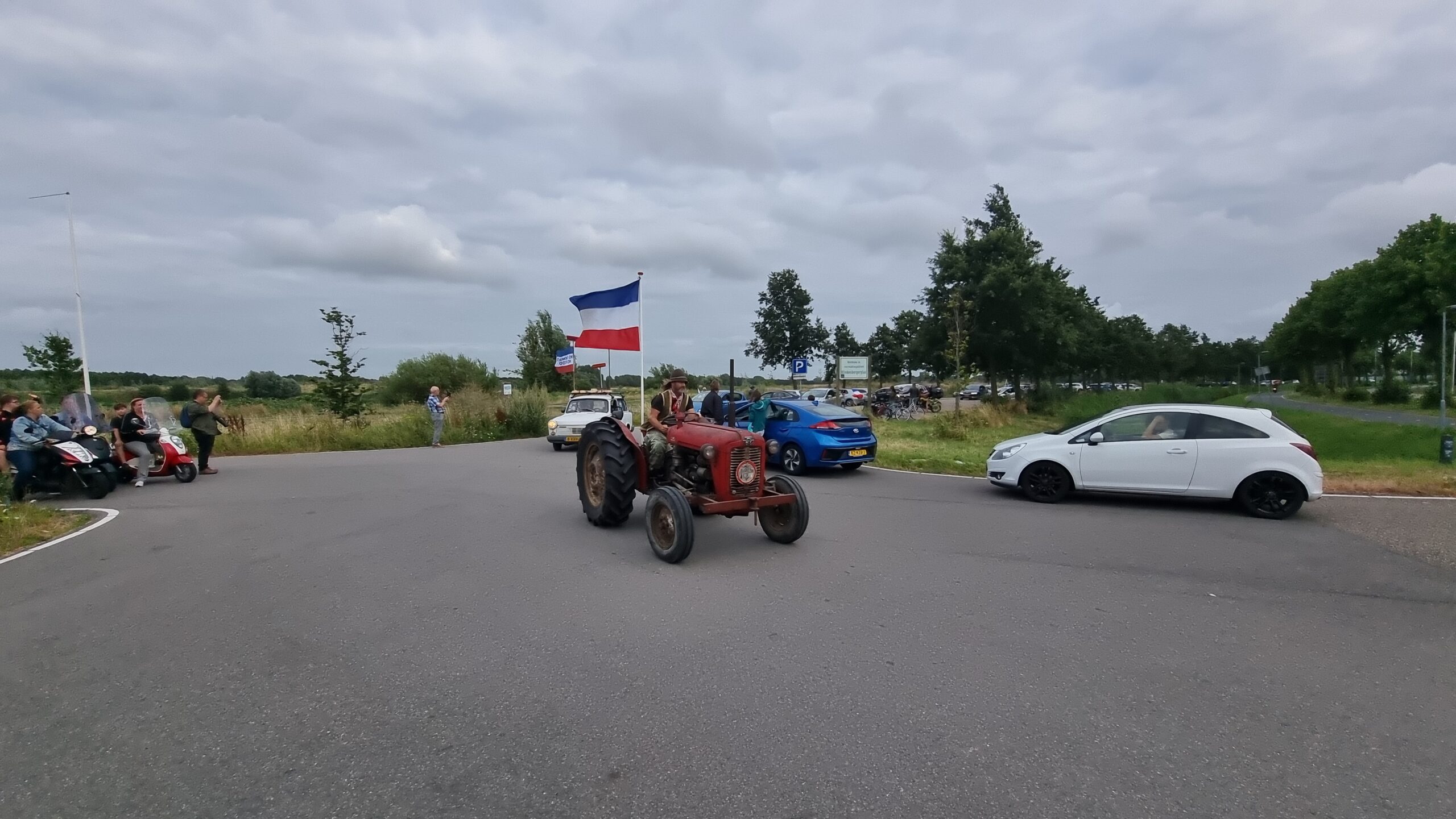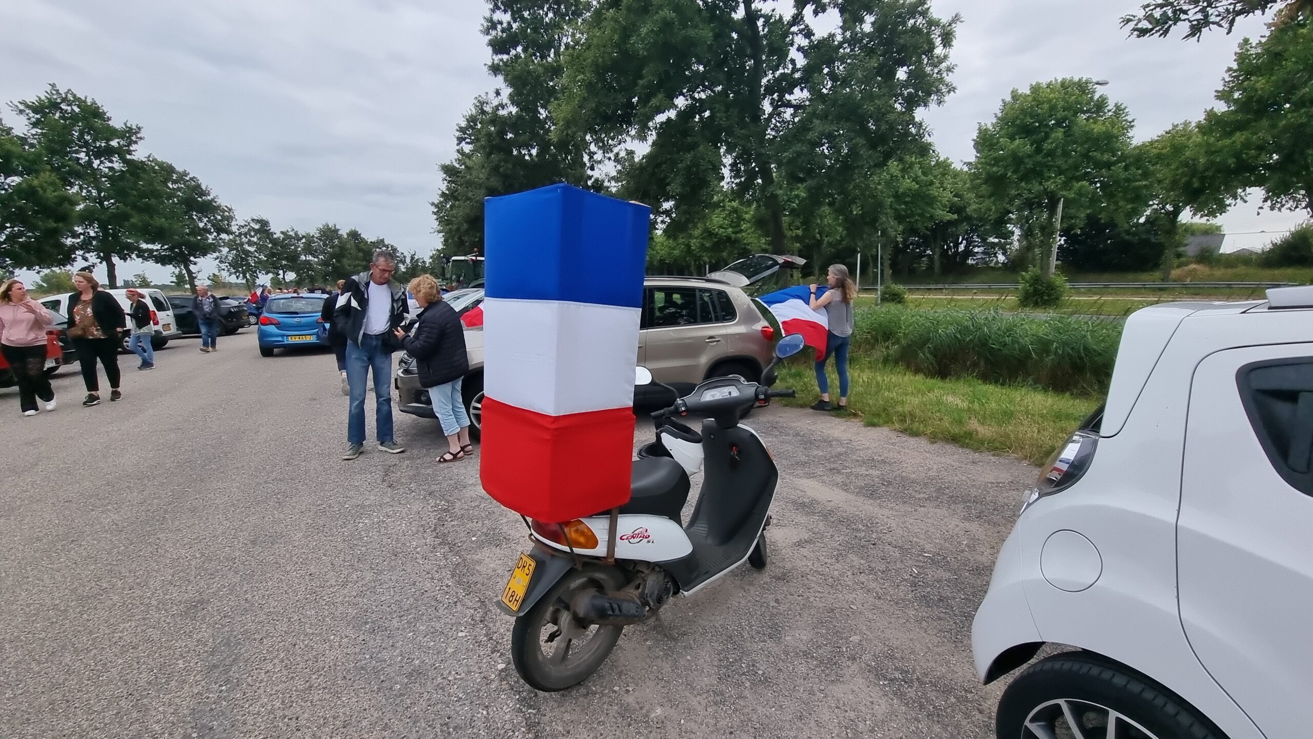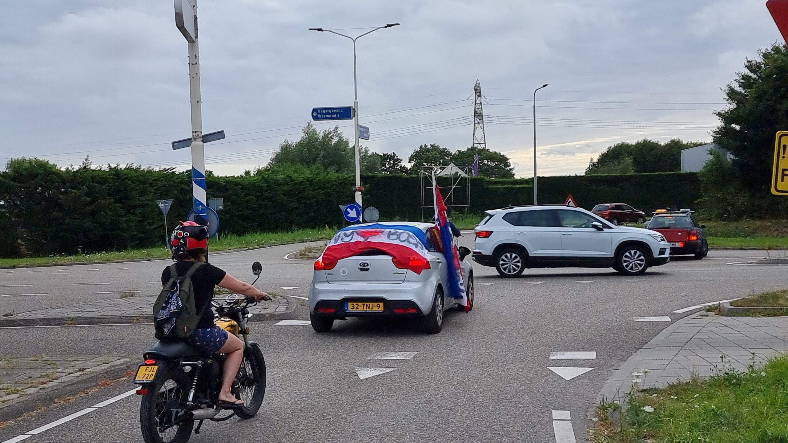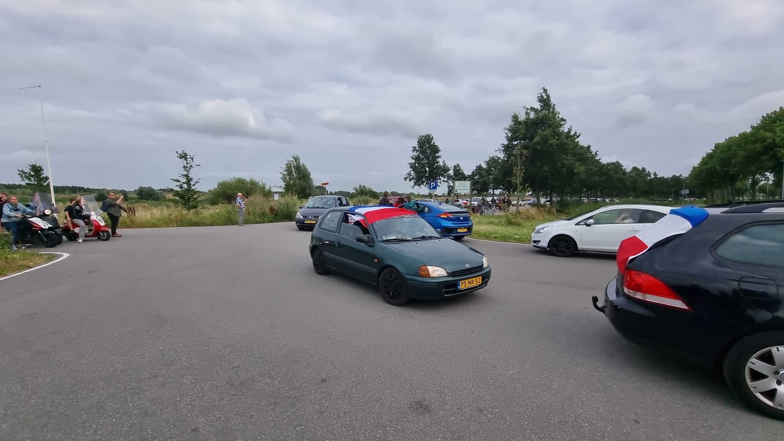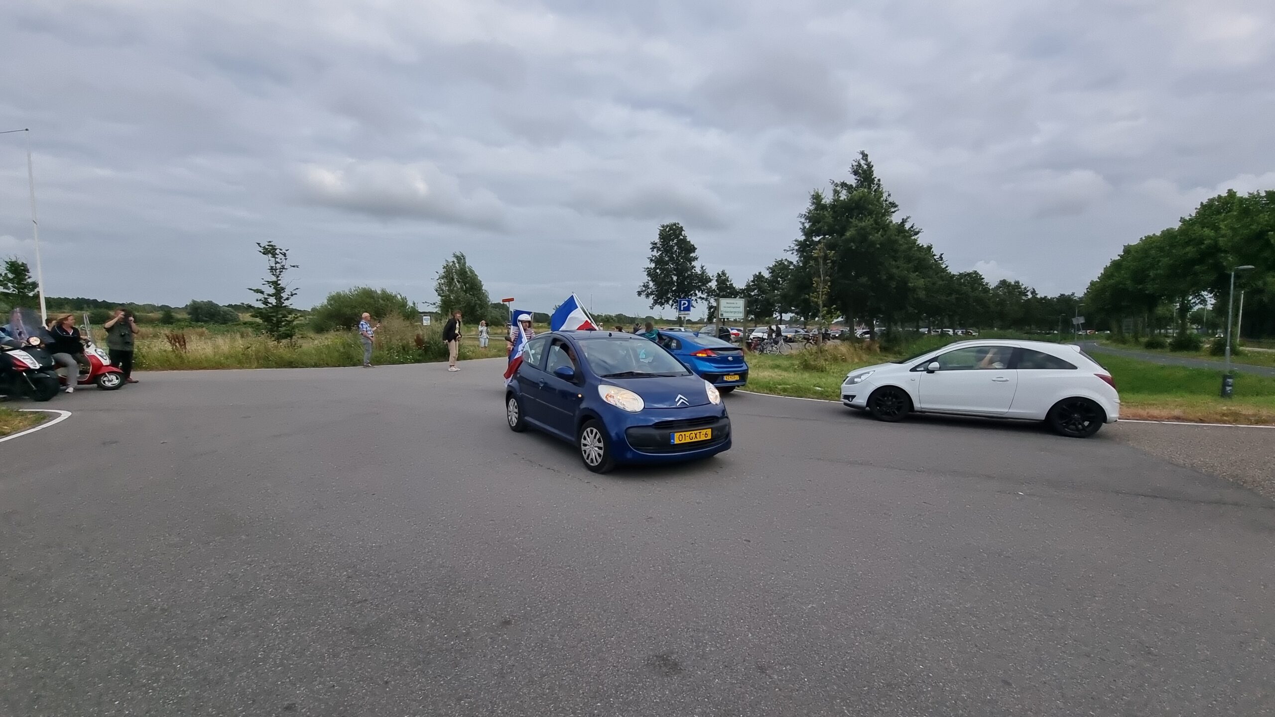 Bij de Klinkenbergerplas in Oegstgeest verzamelden zich maandag aan het begin van de avond enkele tientallen demonstranten die met hun actie de boeren een hart onder de riem wilden steken. “Maar ook de vissers en tuinders”, zegt een vrouw die uit een auto met omgekeerde vlag stapt. “En de bollenboeren, want dat zijn de volgende.”