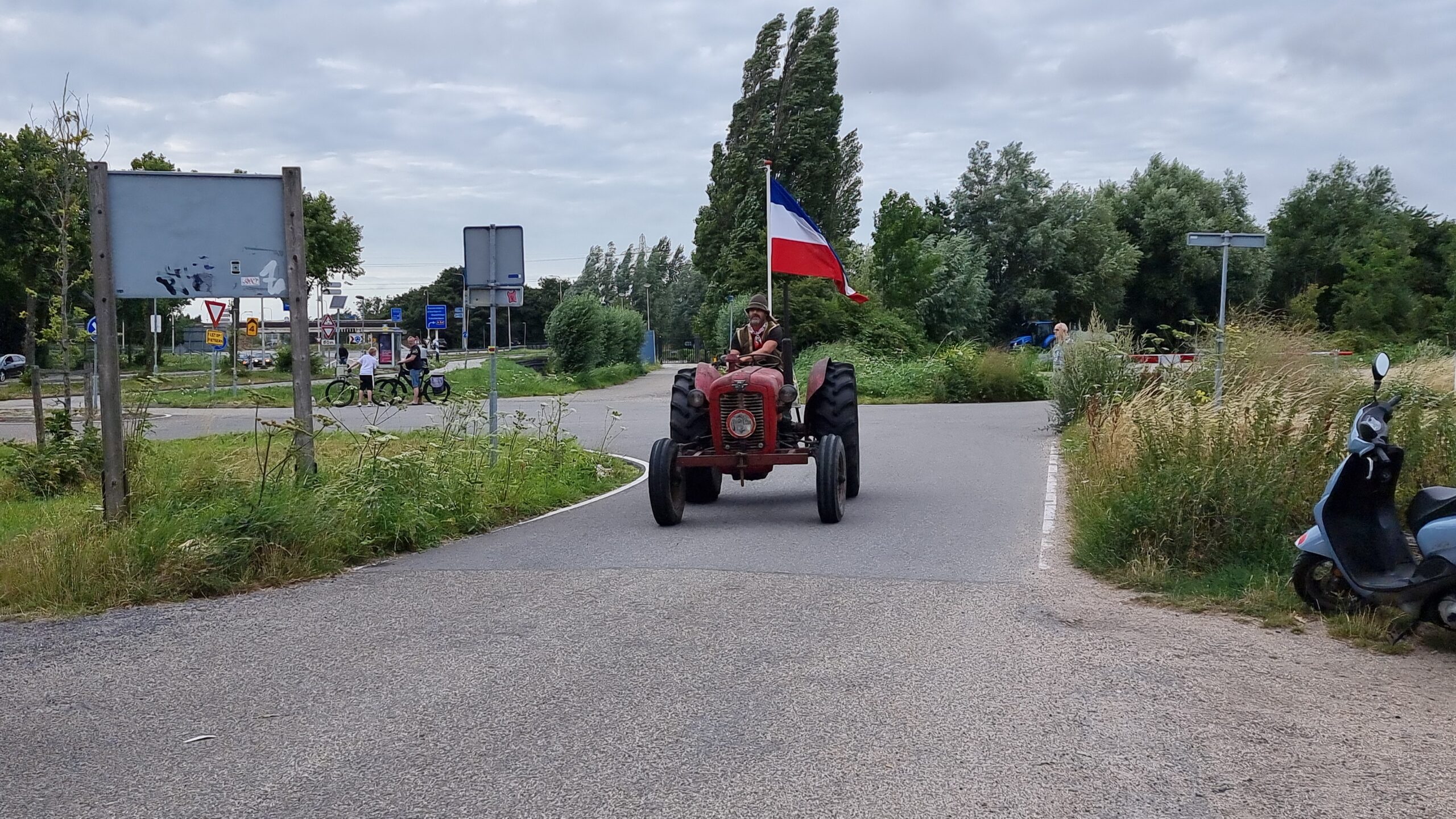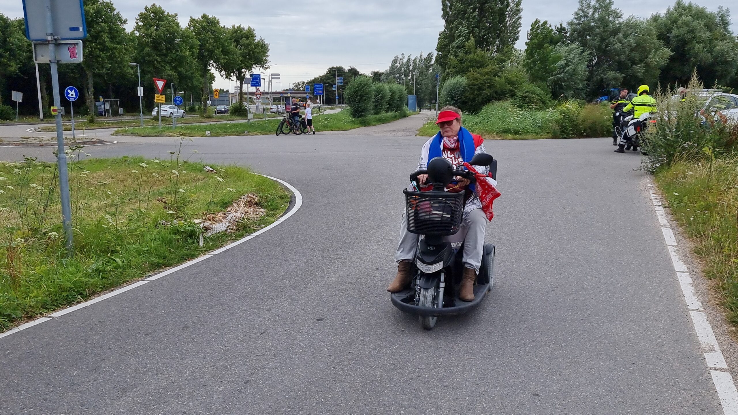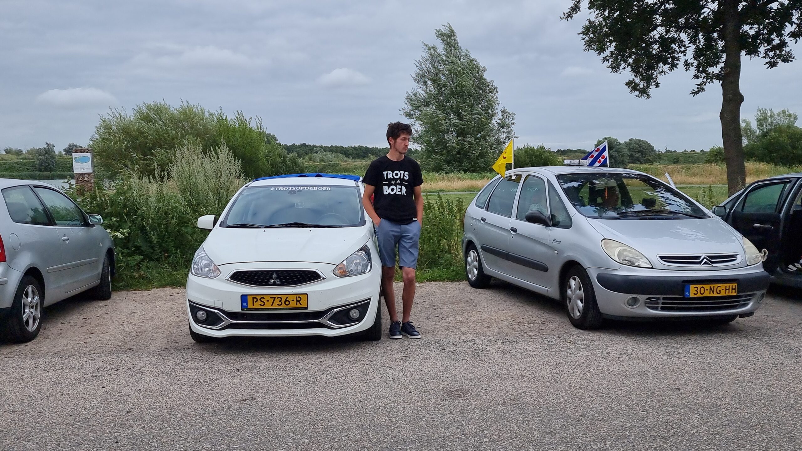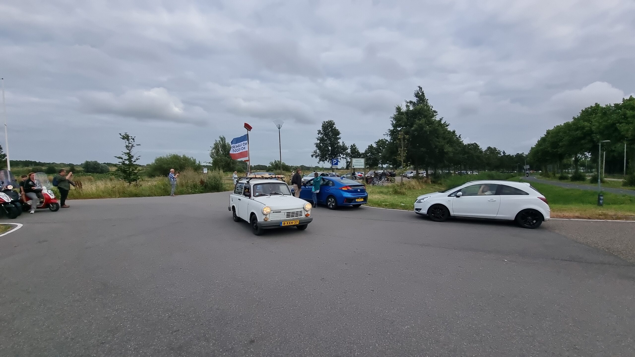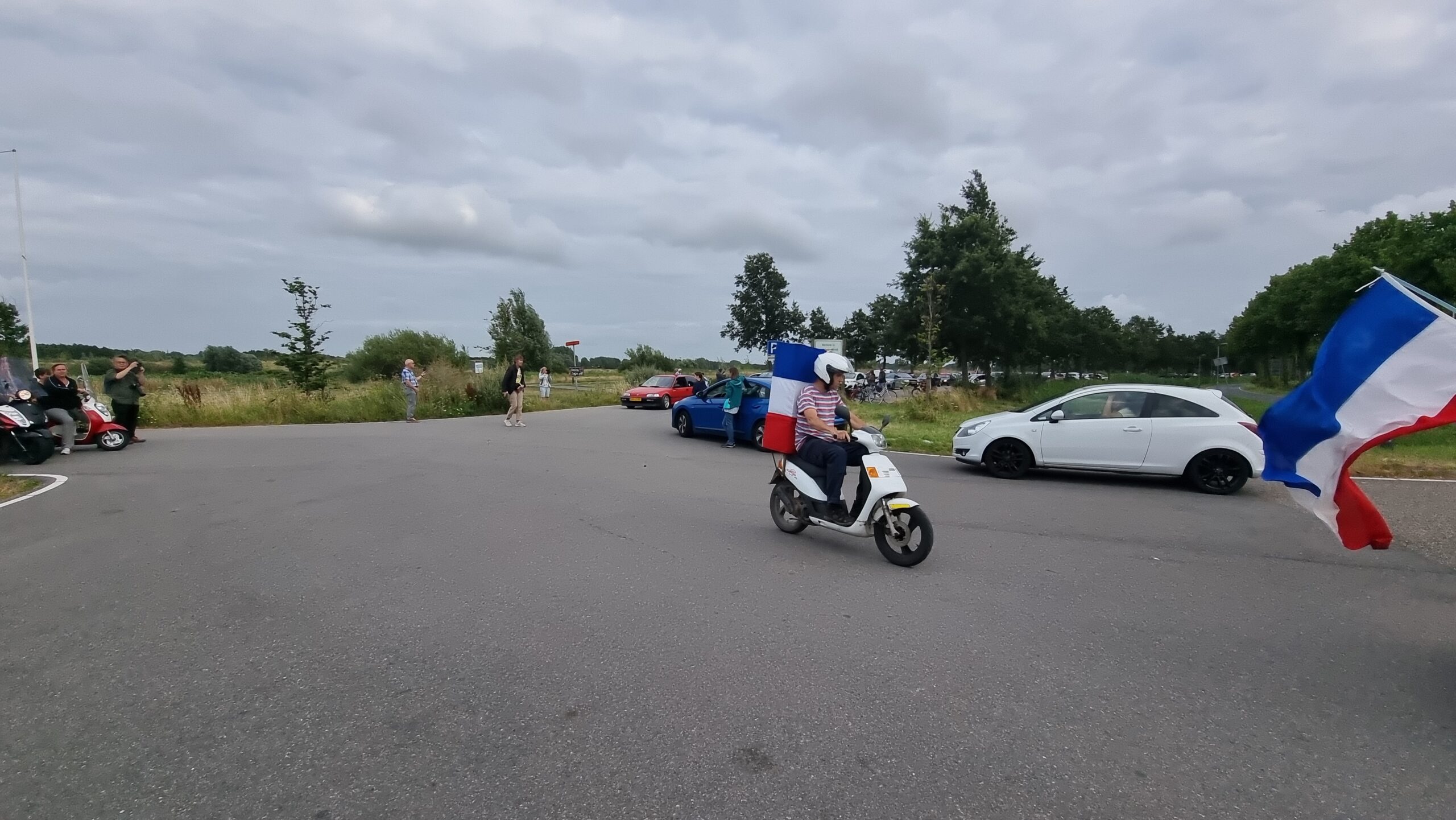 Bij de Klinkenbergerplas in Oegstgeest verzamelden zich maandag aan het begin van de avond enkele tientallen demonstranten die met hun actie de boeren een hart onder de riem wilden steken. “Maar ook de vissers en tuinders”, zegt een vrouw die uit een auto met omgekeerde vlag stapt. “En de bollenboeren, want dat zijn de volgende.”
