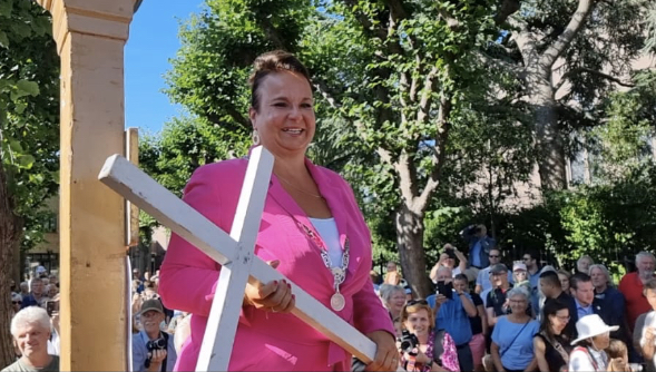 Burgemeester Nadine Stemerdink heeft vanochtend de paardendagen in Voorschoten officieel geopend. Ze plantte het marktkruis in de marktpaal op de Treubstraat waarna de festiviteiten rondom het edele dier van start gingen. Het weekend staat het centrum van ‘De parel aan de Vliet’ in het teken van paarden en pony’s.
