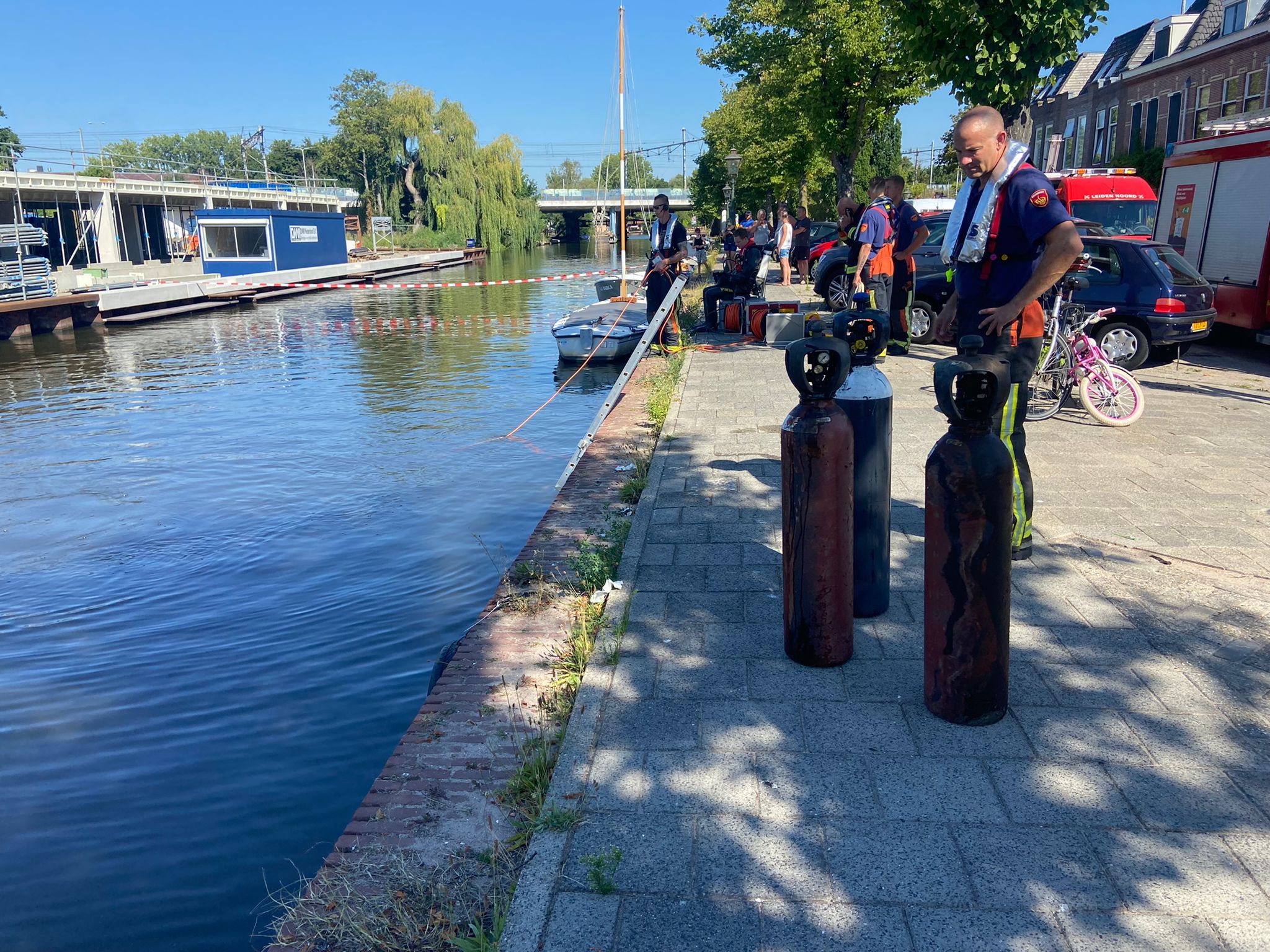 Duikers van de brandweer hebben vrijdagmiddag drie gasflessen uit het water langs de Haarlemmerweg in Leiden gehaald. Voorbijgangers zagen het water borrelen en roken een gaslucht. Zij belden daarop de brandweer.