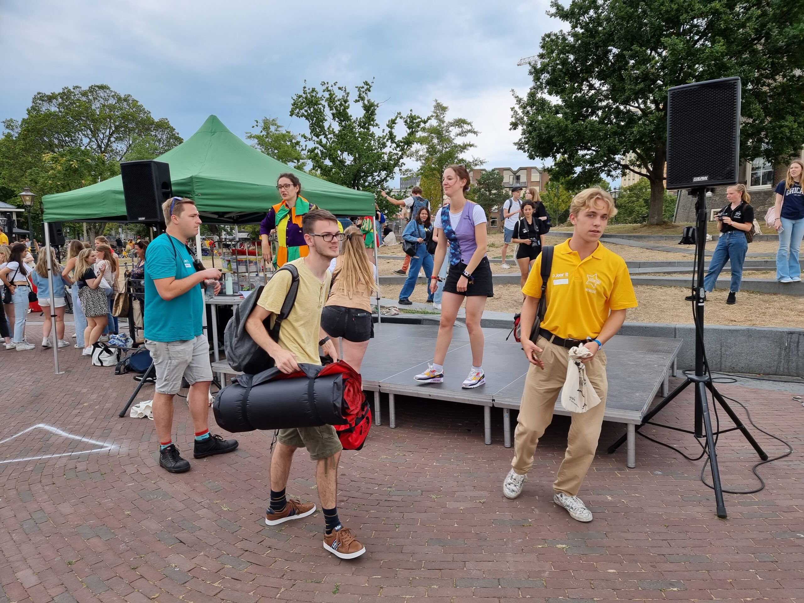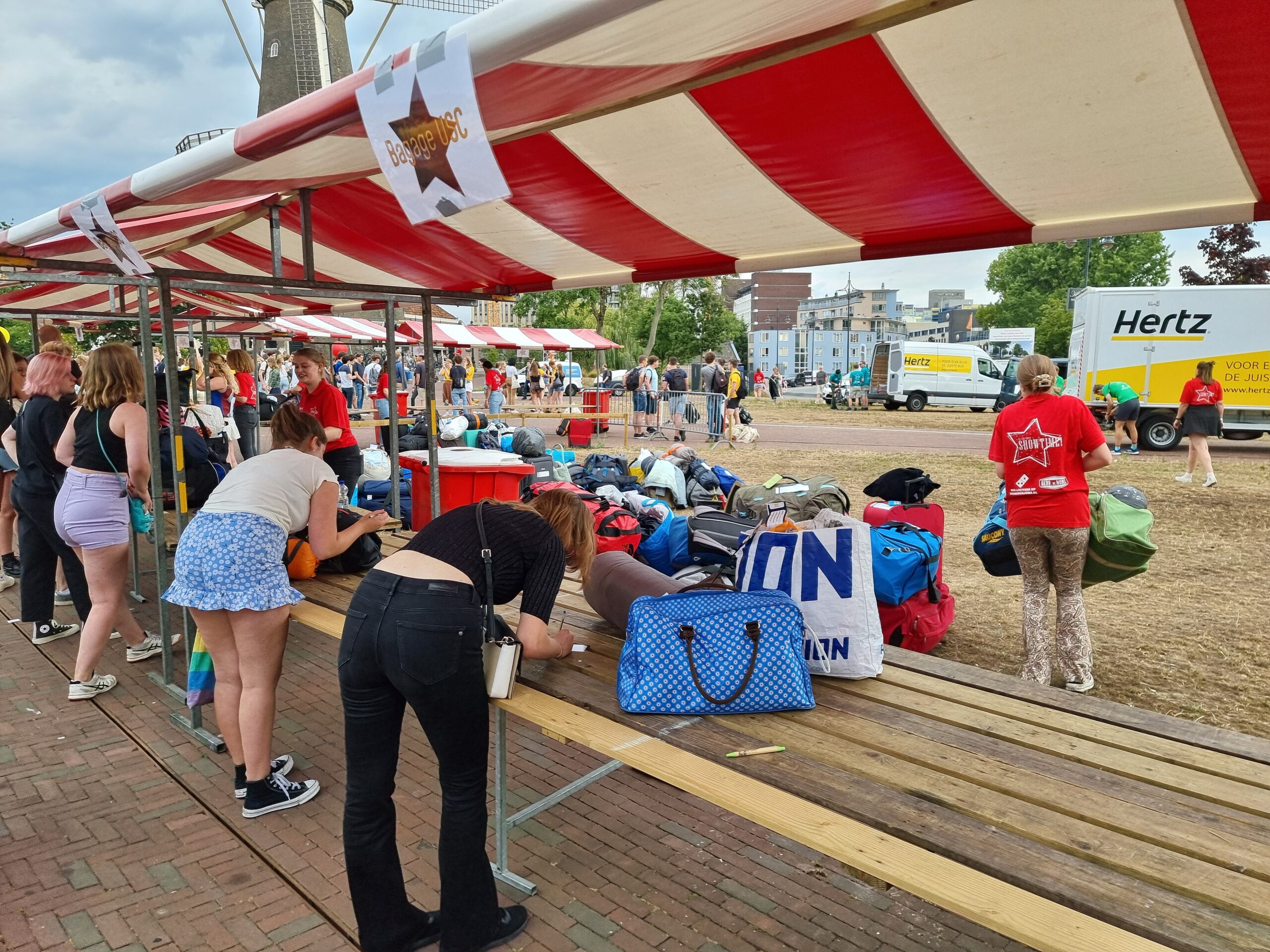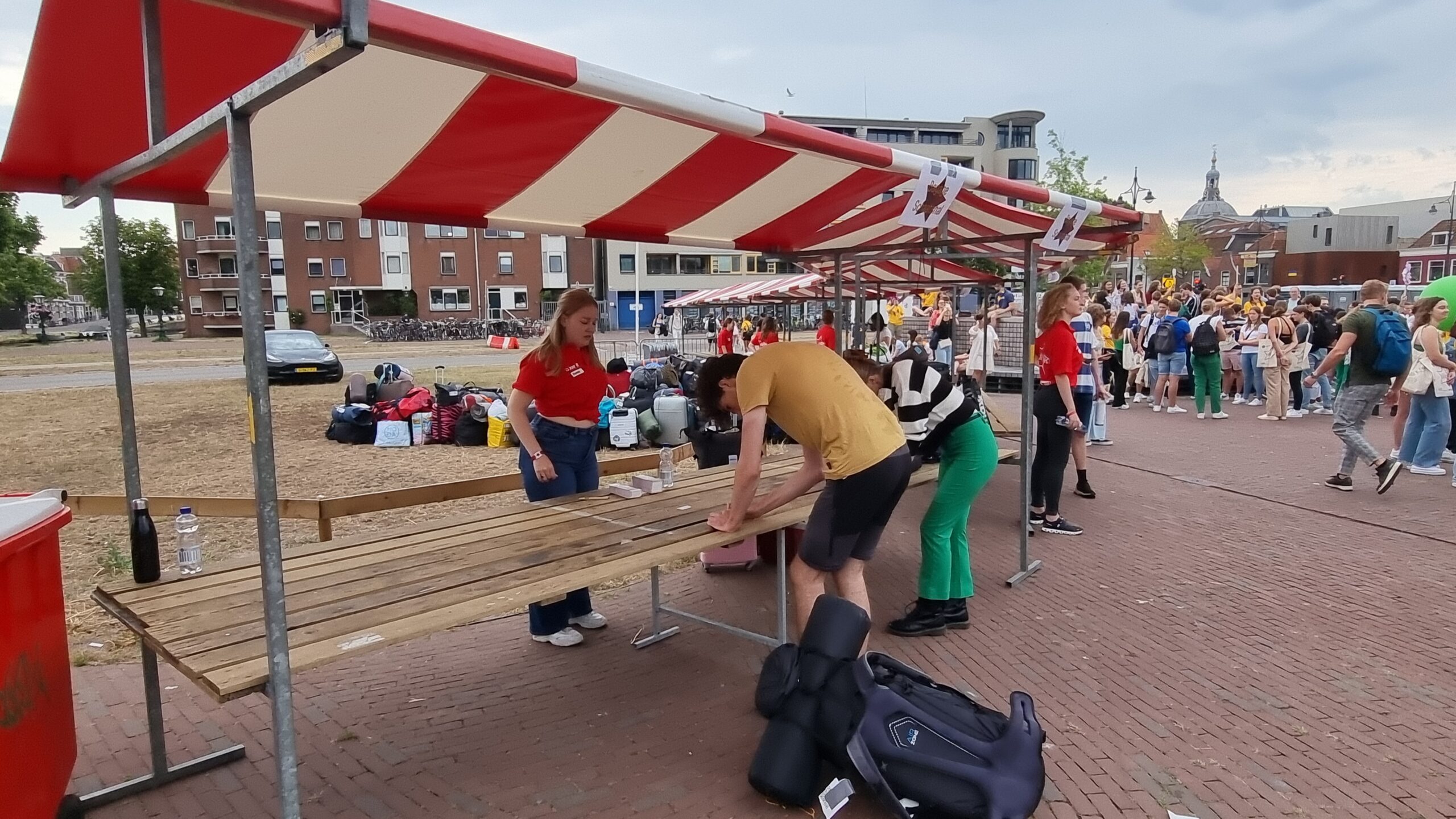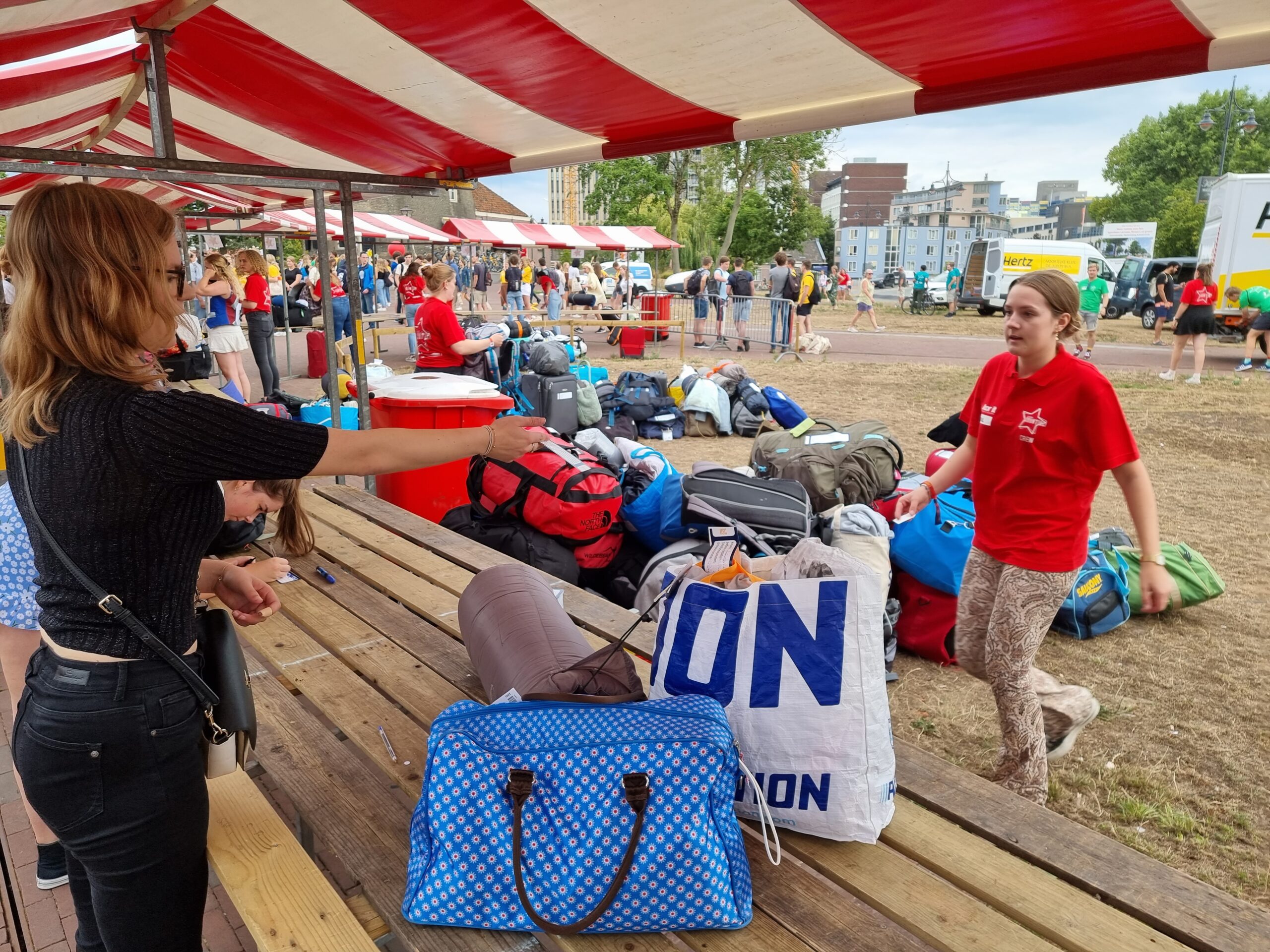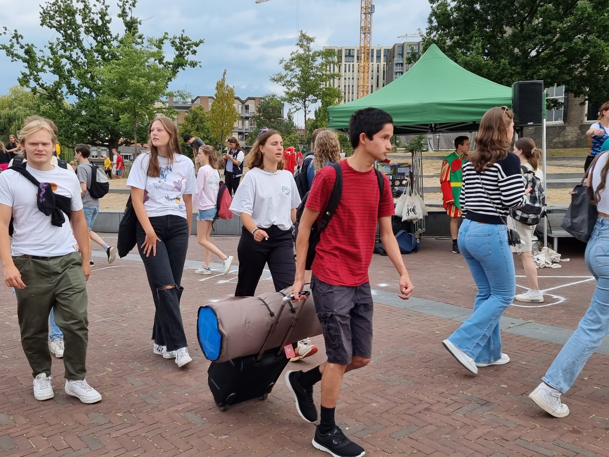 De hele ochtend komen studenten aan bij het plein. Vaak met rugzak of koffer, rechtstreeks van huis om in Leiden op kamers te gaan. Als ze tenminste het geluk hebben om al een kamer te hebben gevonden. De bagage wordt zoals elk jaar centraal ingezameld en naar de Schaatshal Leiden aan de Vondellaan en naar het Universitair Sportcentrum aan de Einsteinweg gebracht. Daar overnachten de deelnemers aan de 53e EL CID-week de komende dagen namelijk.