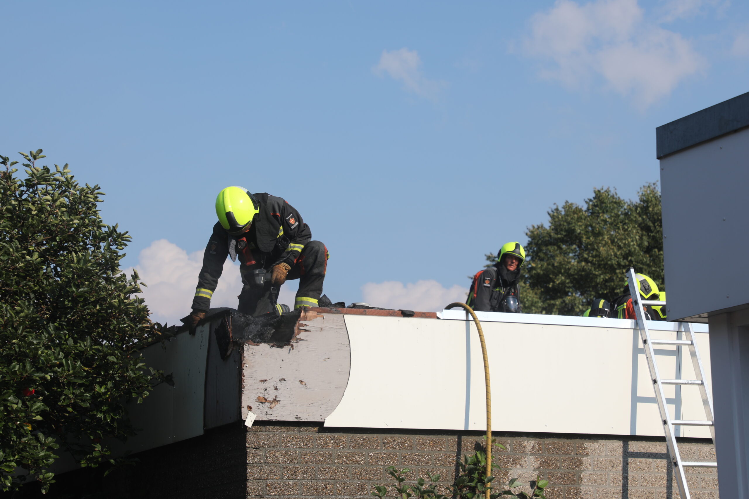 De brandweer heeft de blusactie overgenomen en de situatie onder controle gebracht. Het dak liep door de brand flinke schade op. De oorzaak van de brand is niet bekend.