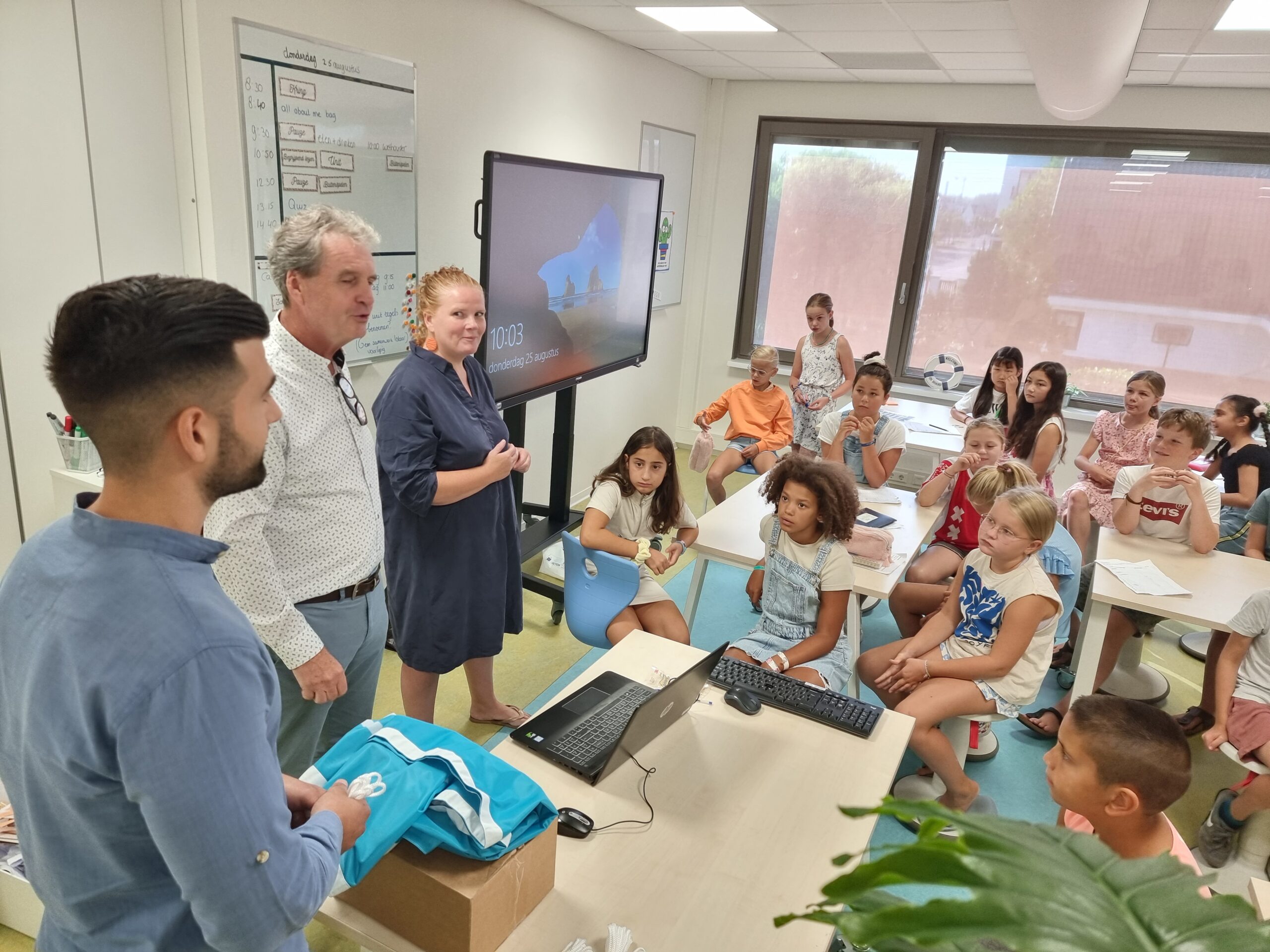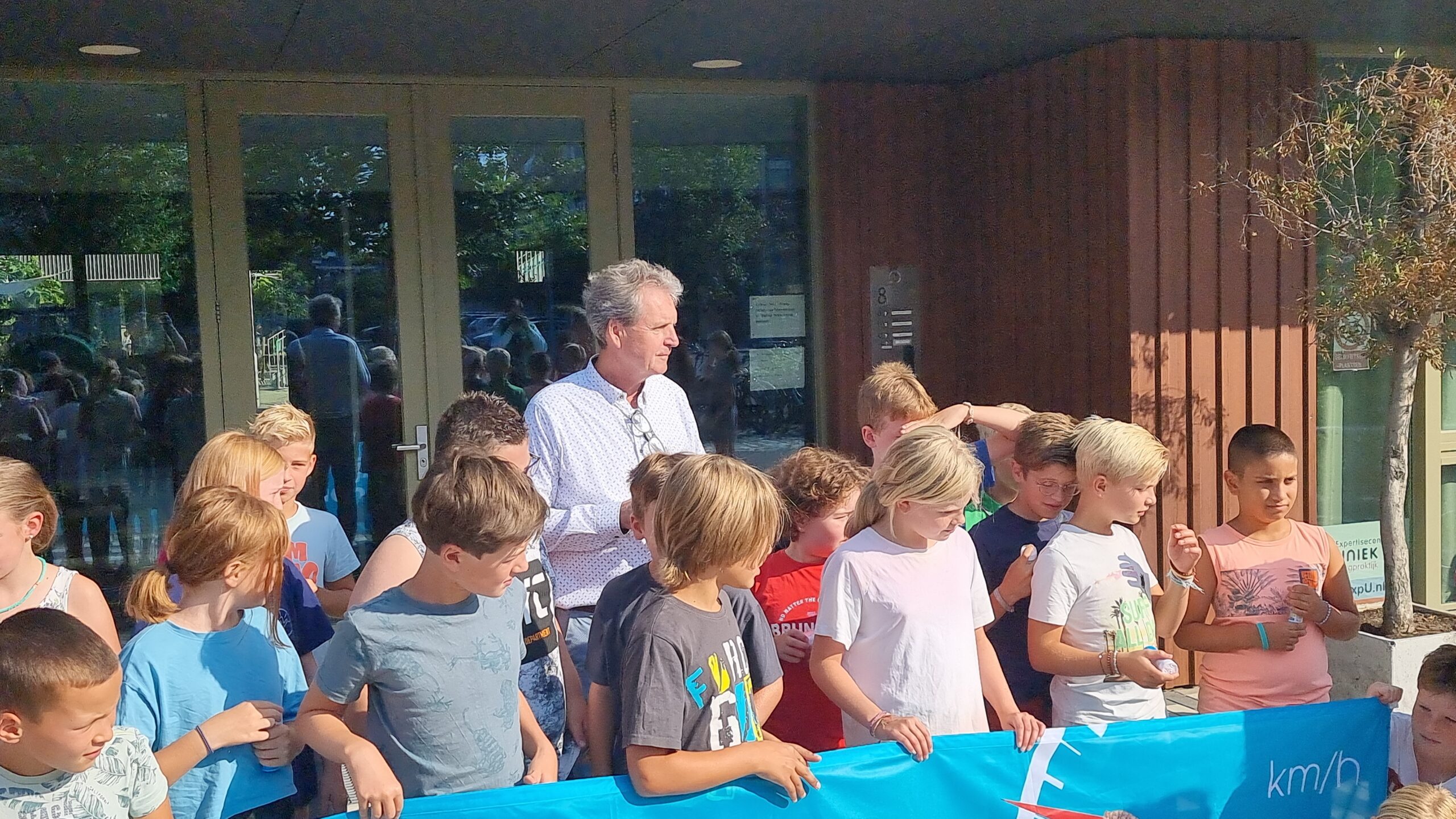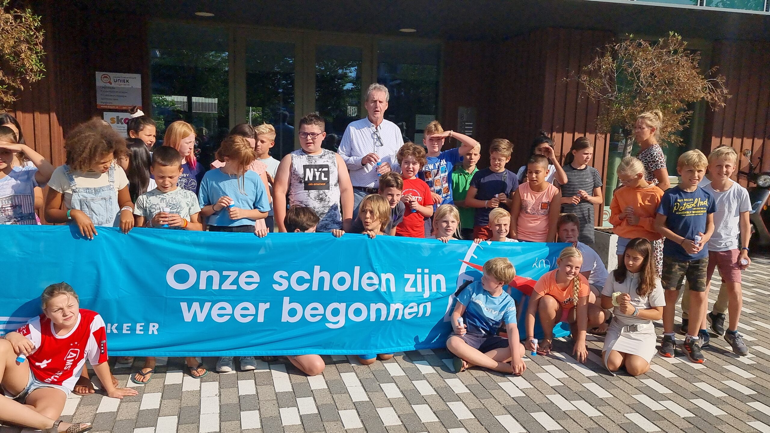 In het kader van de Veilig Verkeer Nederland campagne ‘de scholen zijn weer begonnen’ brengen overal in de regio onderwijswethouders een bezoekje aan een lokale basisschool. In Oegstgeest ging wethouder Dick de Groot vanmorgen langs bij basisschool Het Dok in de wijk Nieuw Rhijngeest.