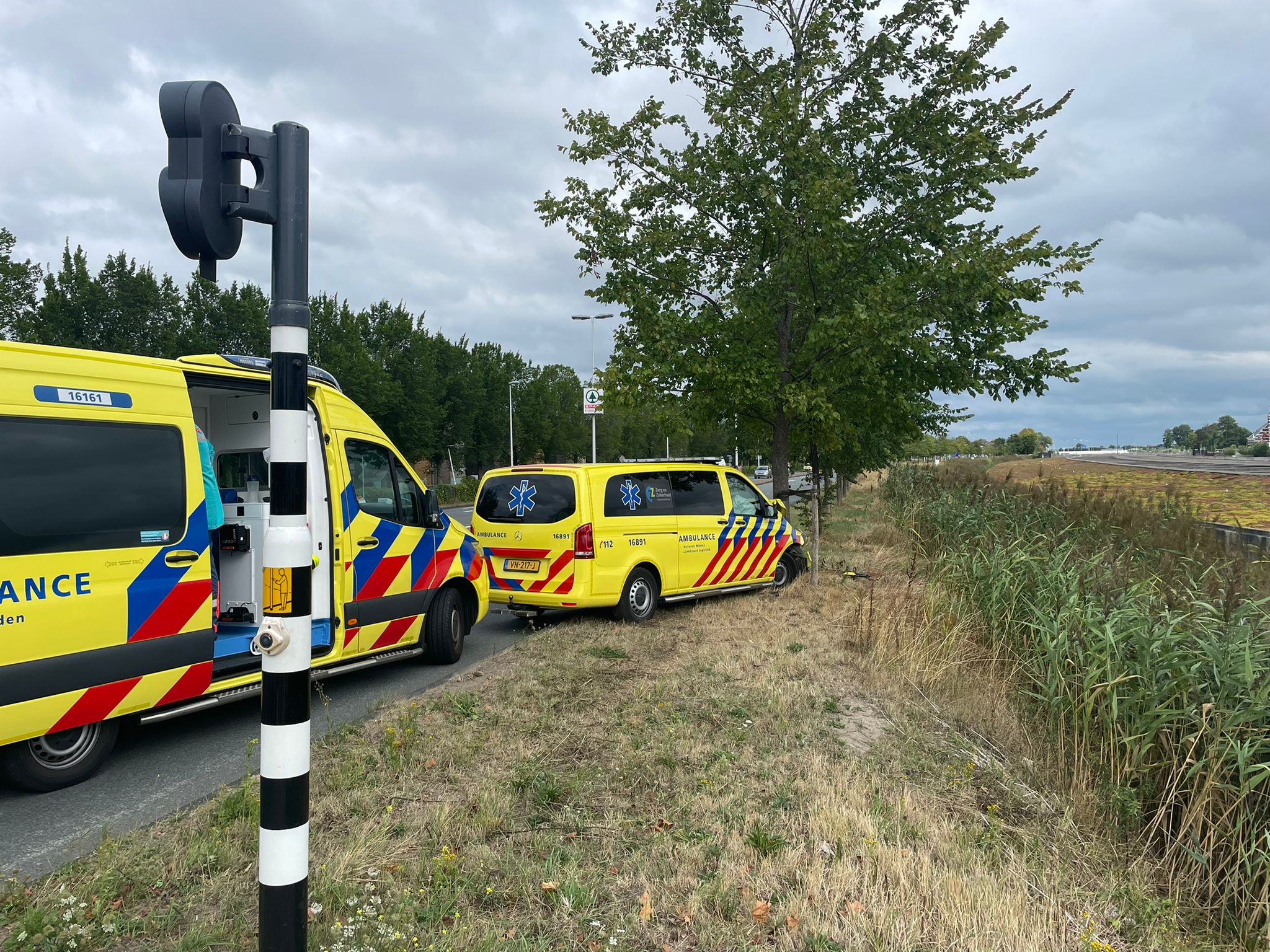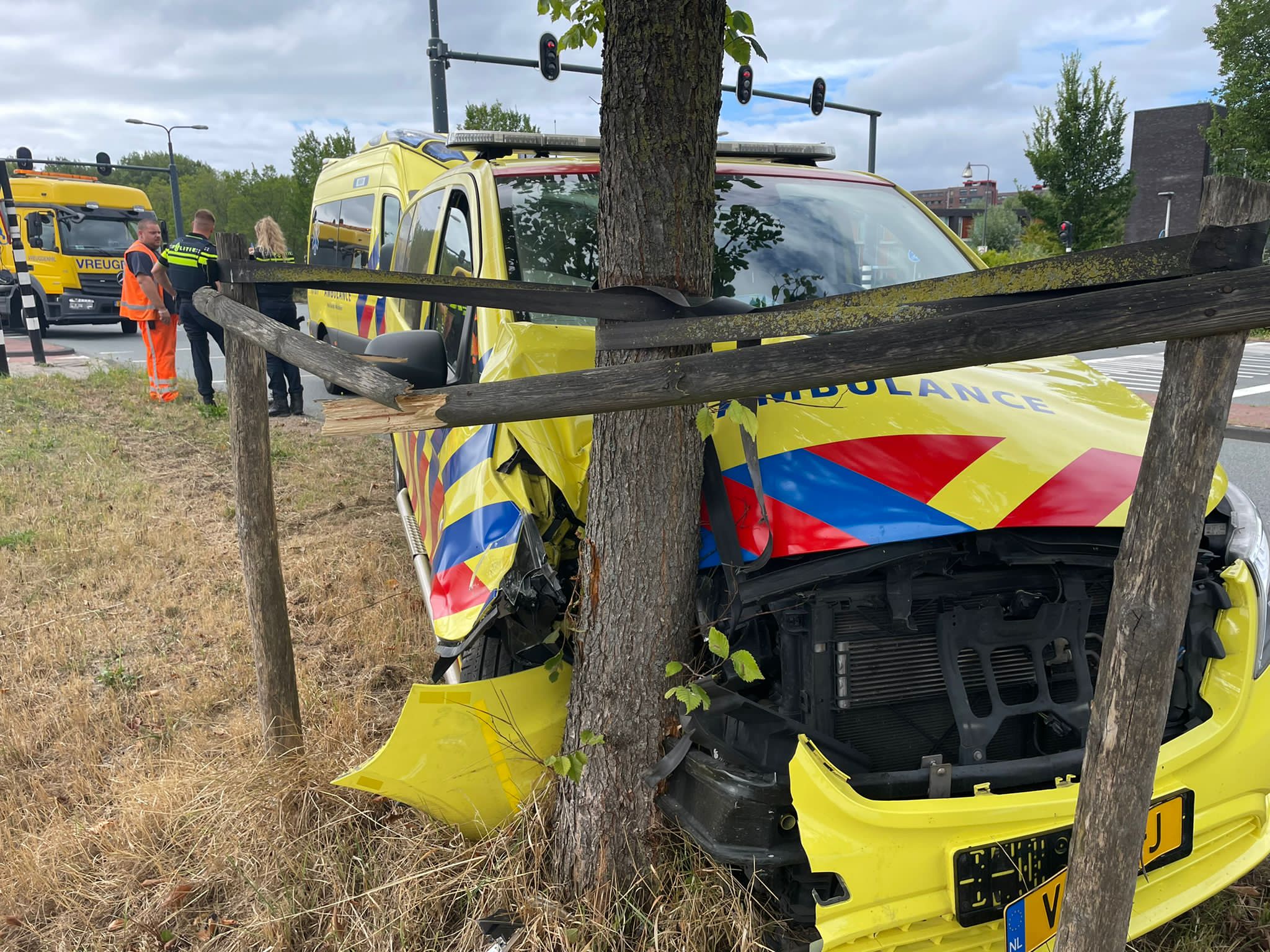 Voertuig van de ambulancedienst is vrijdagmiddag rond 14.45 uur op de Willem van der Madeweg in Leiden tegen een boom gebotst. Het voertuig is daarbij zwaar beschadigd geraakt. De bestuurder bleef ongedeerd.