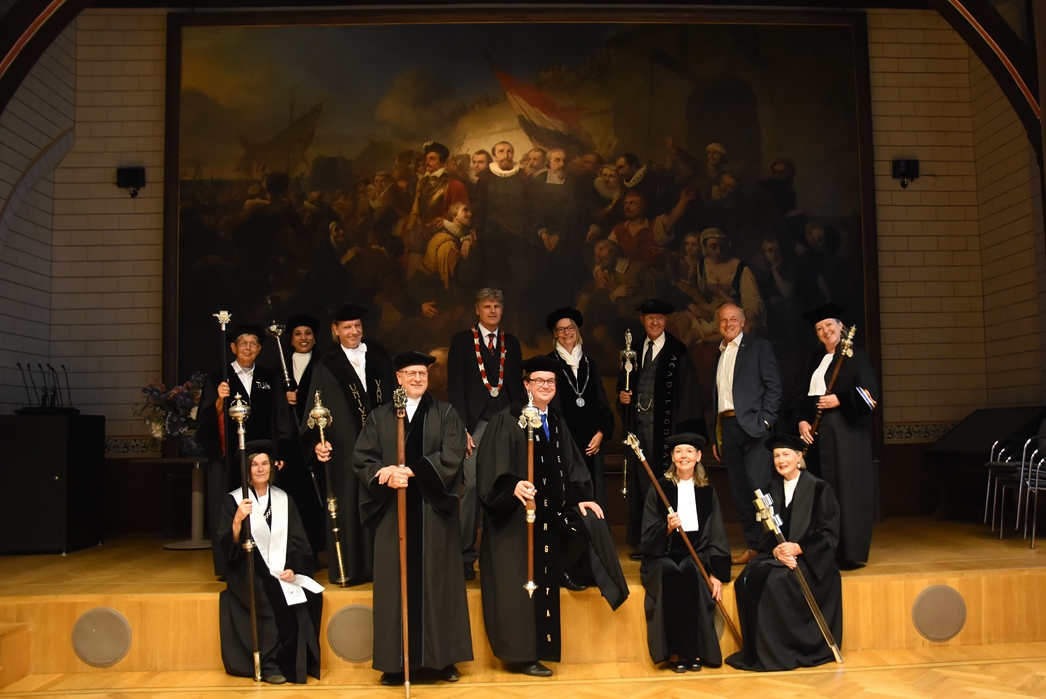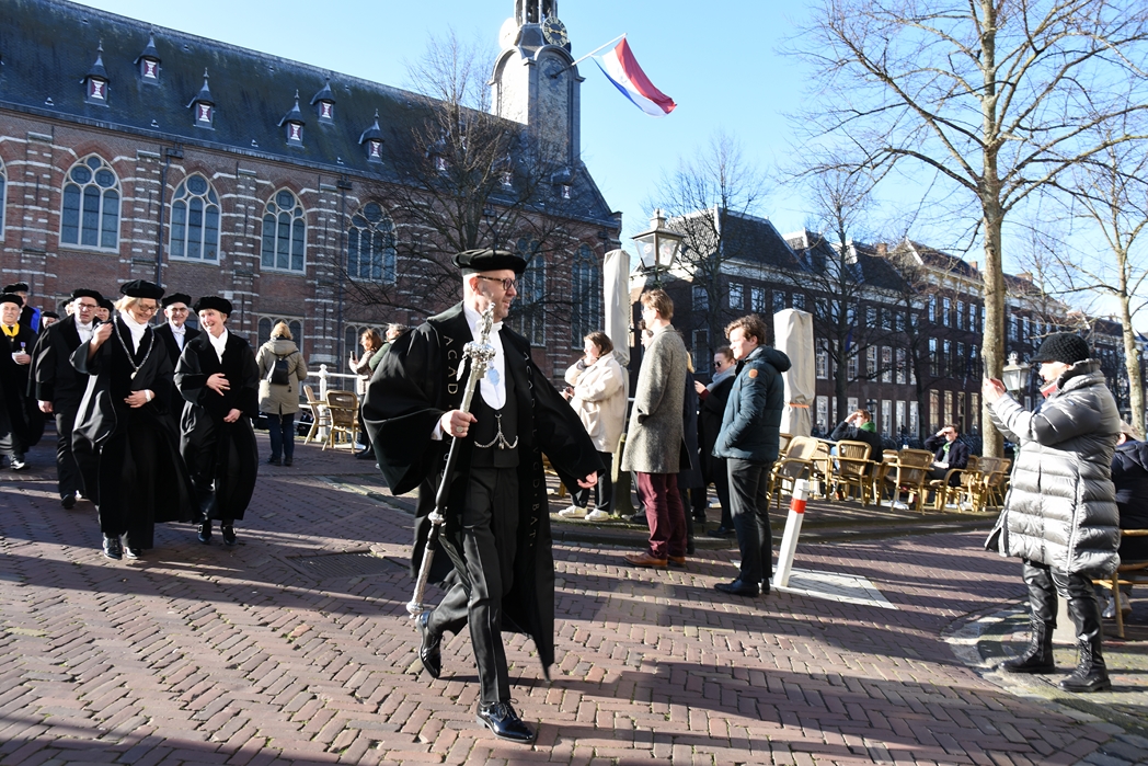 De pedellen gingen lunchen in de oude universiteitsbibliotheek. Voorzitter Kamps kon daar niet bij zijn. Hij moest naar Groningen, waar vandaag het Gronings Ontzet wordt gevierd. Hij hoefde zich in elk geval niet meer om te kleden.