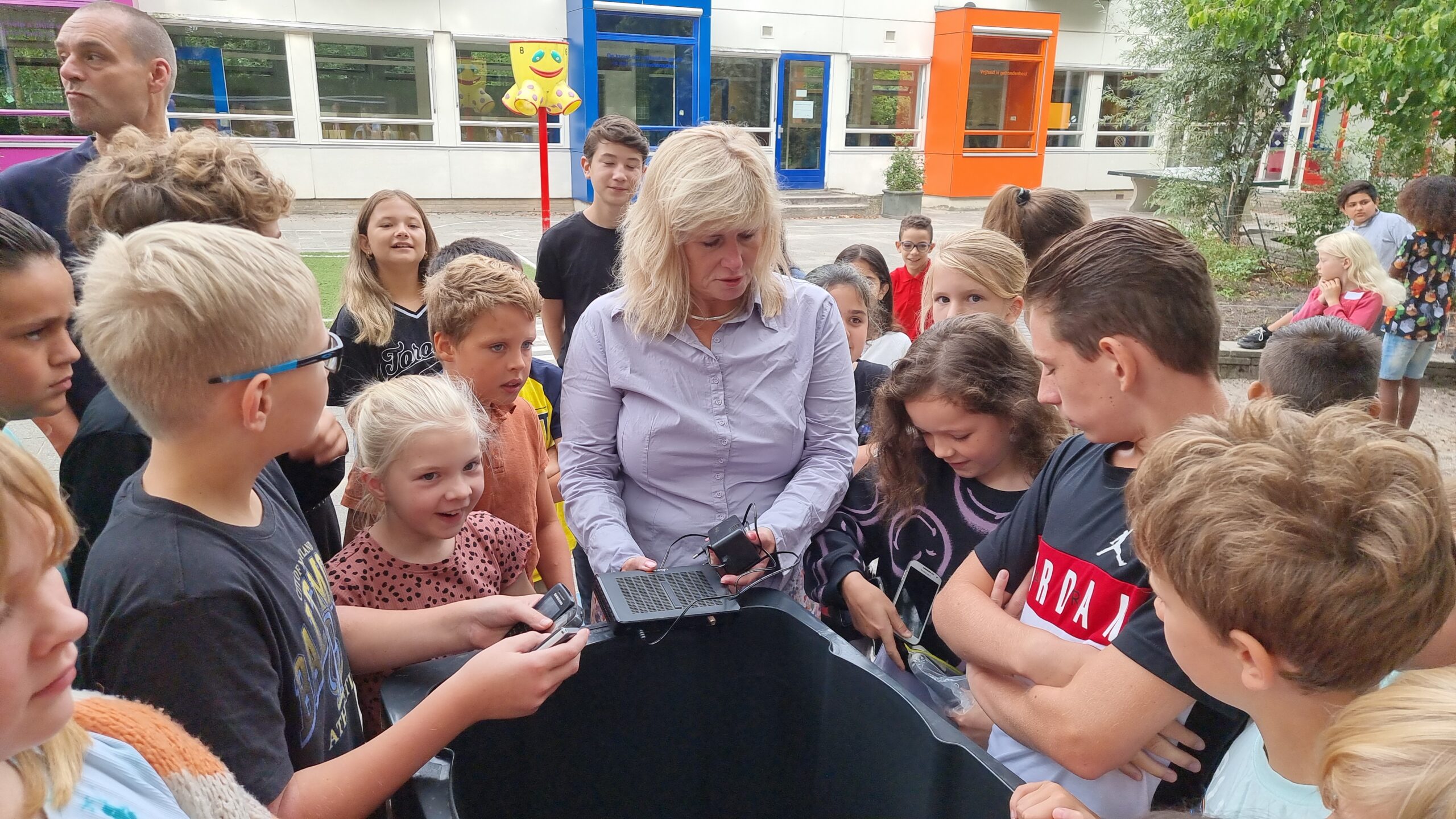 Wethouder Yvonne van Delft (Energie, Werk en Inkomen en Cultuur) gaf het startsein aan de leerlingen van groep 7 die vandaag ook les in recycling kregen. Zo hoorden ze bijvoorbeeld hoeveel verschillende grondstoffen er nodig zijn voor een mobiele telefoon (tientallen) en ook hoeveel kilo er nodig is voor de productie van één mobieltje. Slechts de helft van alle apparaten met een stekker wordt nu gerecycled. Als dat niet verandert, raken grondstoffen uitgeput.