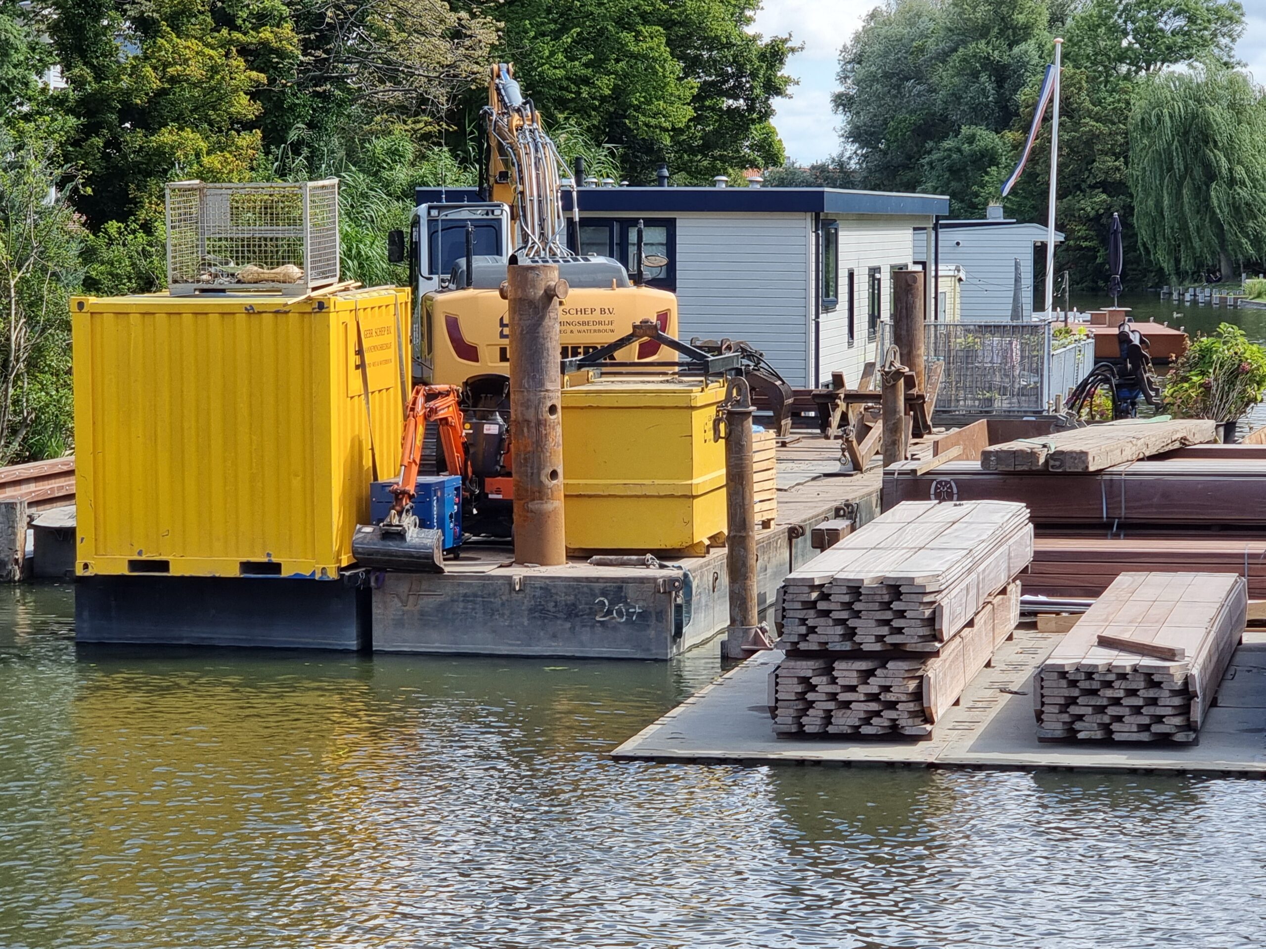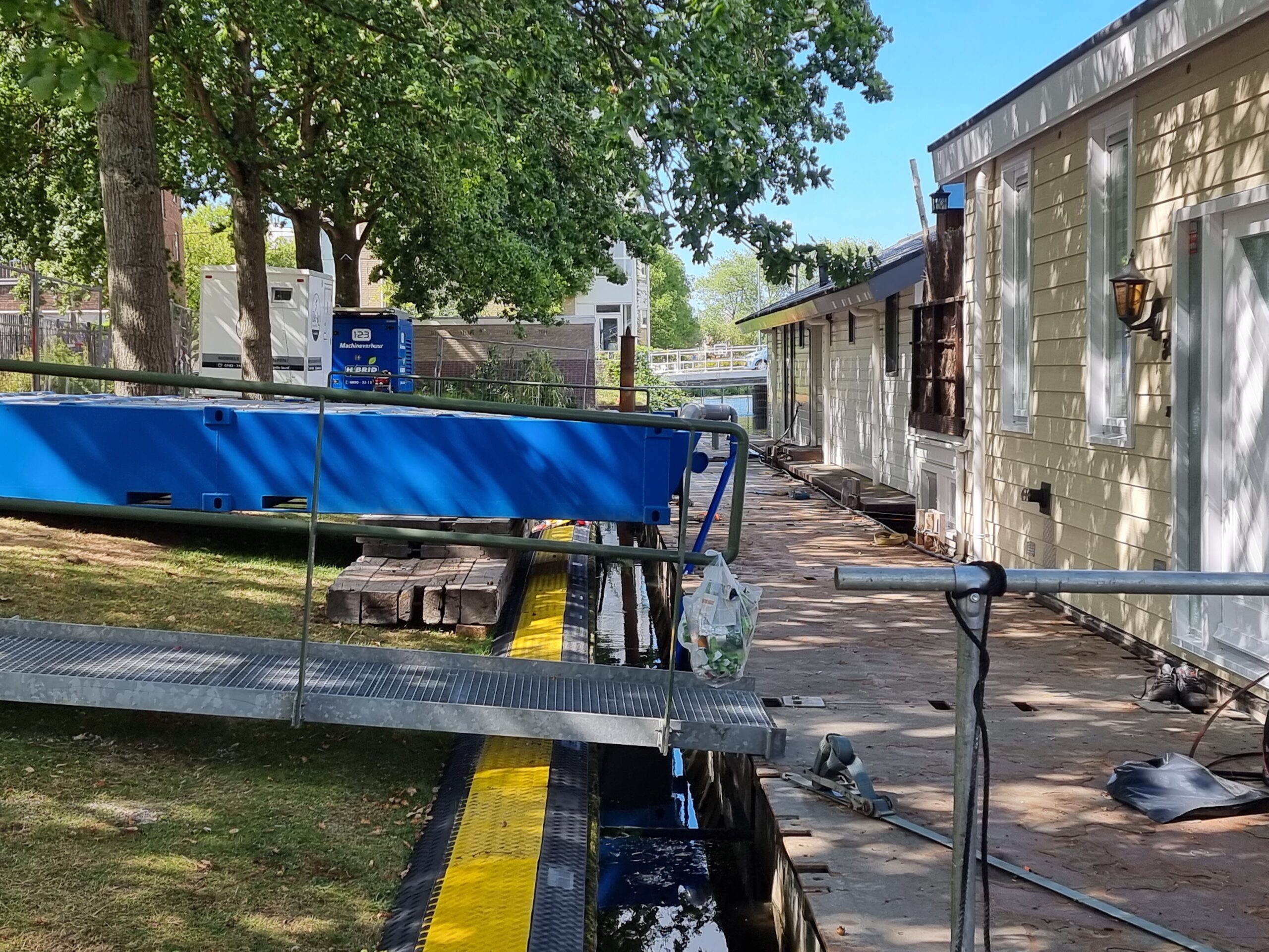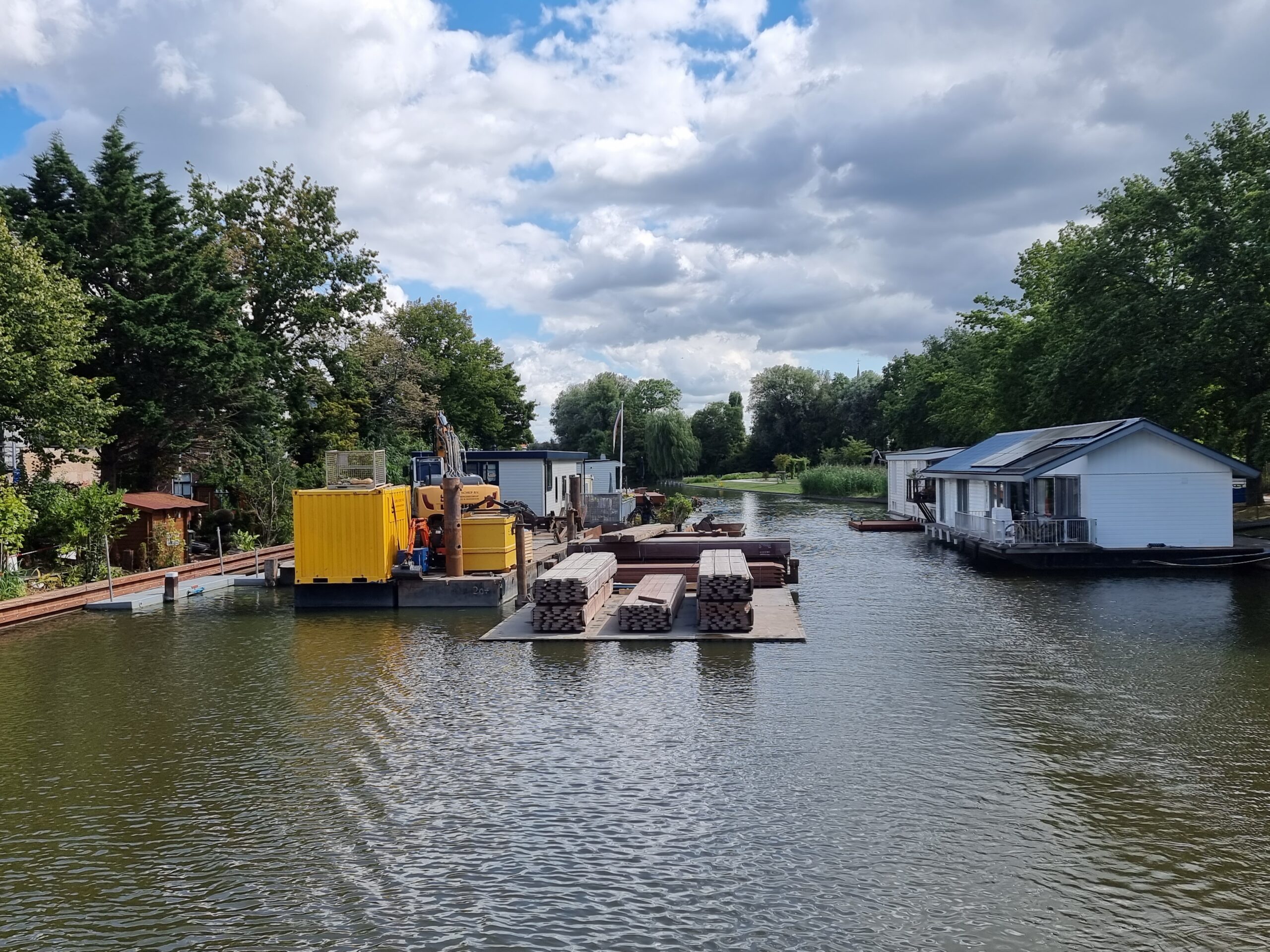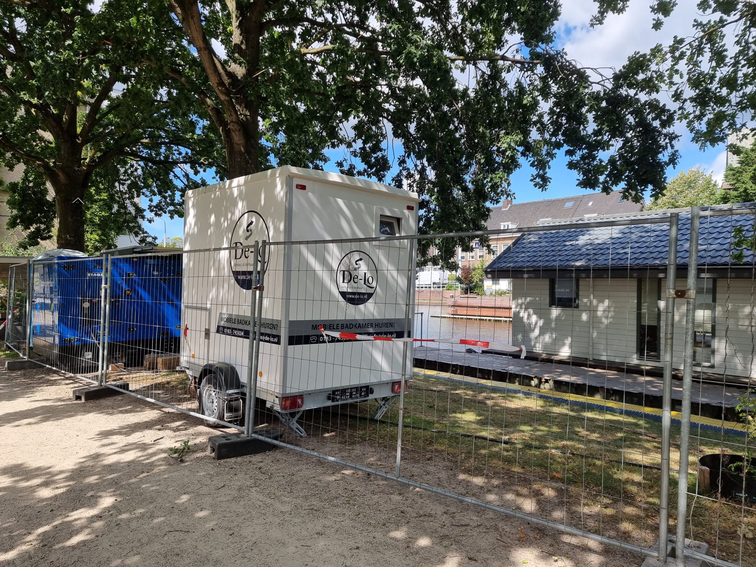 Die operatie heeft nogal wat voeten in de aarde, want de woonschepen moeten daarvoor worden losgekoppeld van de nutsvoorzieningen. In het park zijn tijdelijke voorzieningen neergezet. Een enorme watertank bijvoorbeeld en een mobiele douchecabine.