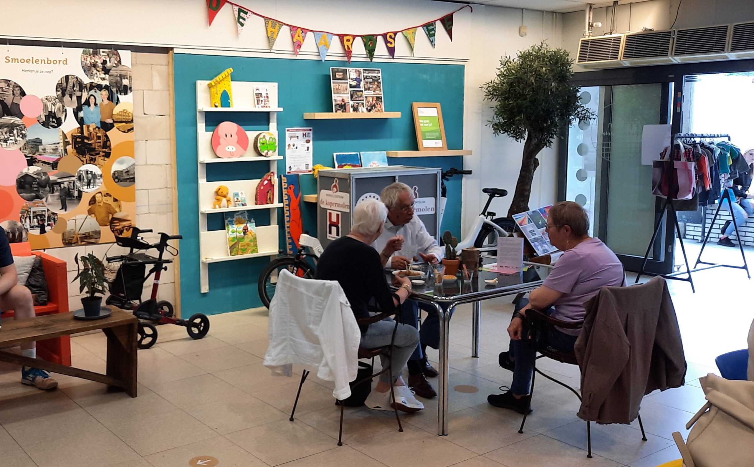 De aanwezige buurtbewoners zijn blij met de opening van het café. “Ik vind het een leuk initiatief”, zegt René, die met Puck en Ineke aan een tafel zit. “Ik hoop dat het blijft en niet al na een jaar stopt.” Puck vindt de vele zitplekken erg fijn: “Het is een mooie plek waar je gewoon naar binnen kunt en kunt gaan zitten. Zeker als je ouder bent, in de buurt woont en niet meer zo makkelijk loopt. De bakker in het winkelcentrum heeft vanwege personeelsgebrek helaas geen lunchplek meer en de slager heeft alleen maar staantafels, dus het is een fijne plek om te ontmoeten.” “En het is erg gezellig met de medewerkers.”, zegt Ineke. “Ze zijn lief en aardig.”