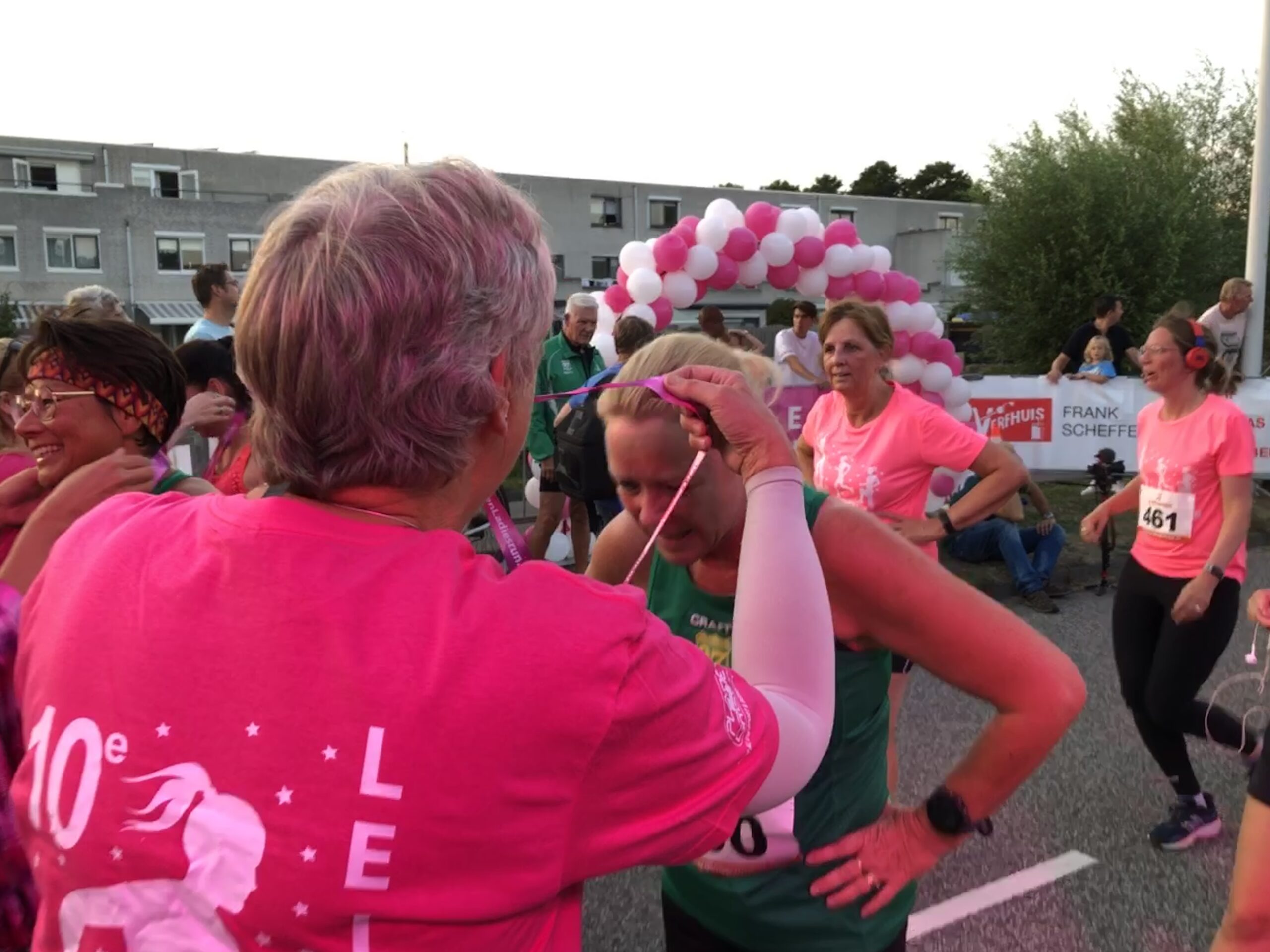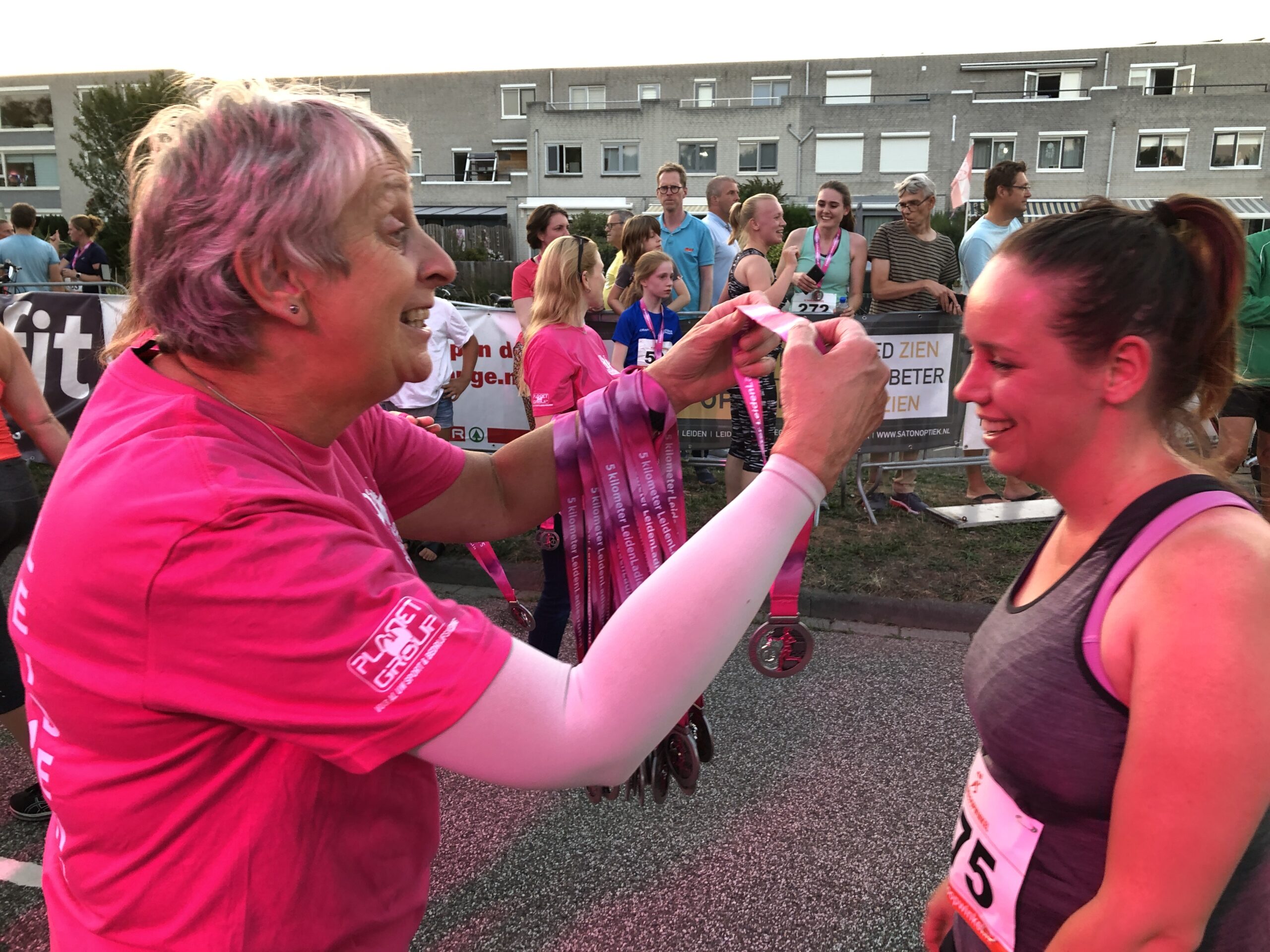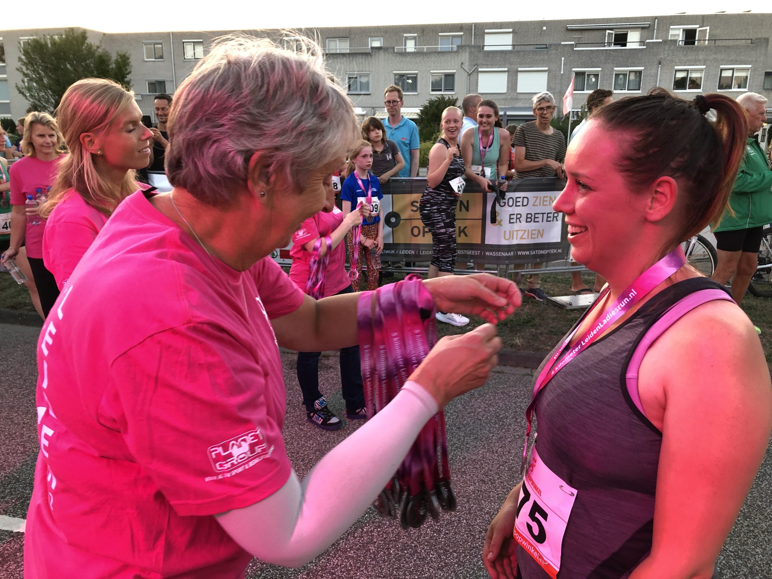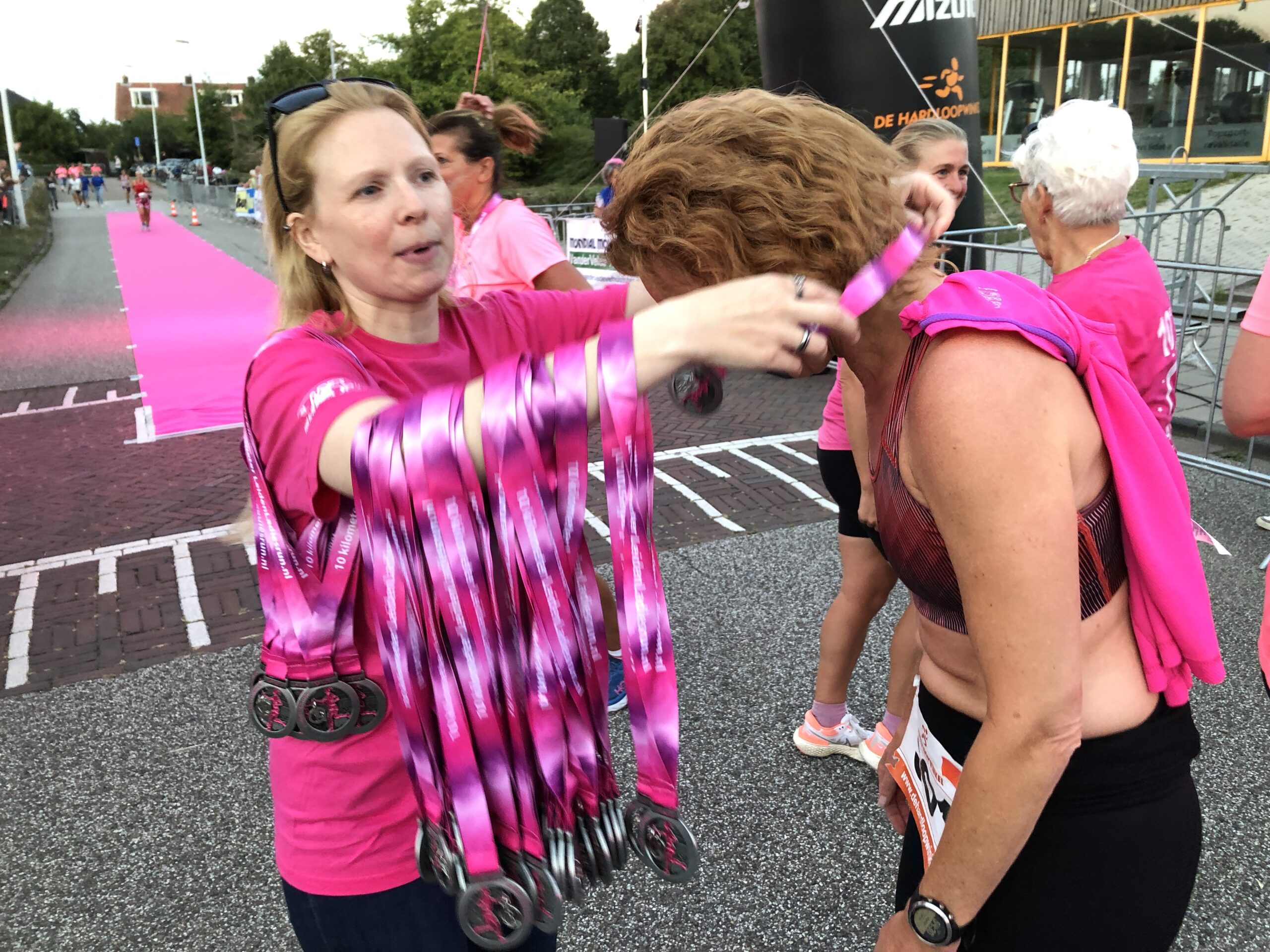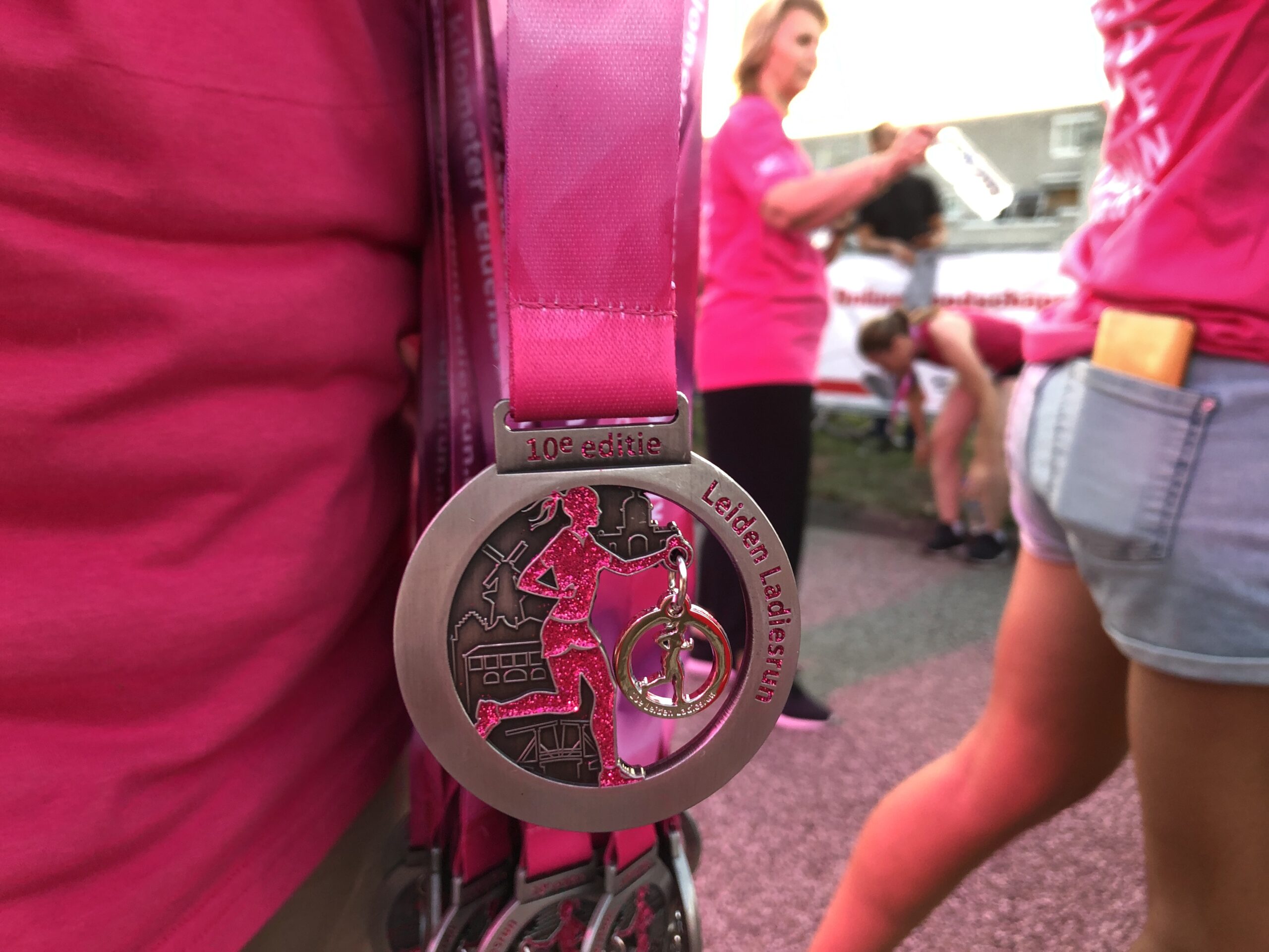 De medaille die voor iedere loopster bij de finish klaarlag, heeft iets speciaals. “We proberen hem ieder jaar bijzonder te maken. Maar omdat het dit jaar de tiende keer is, gingen we nog een stapje verder”, vertelt organisator Carla Meskers. Een deel van de medaille kun je loshalen. Dit hangertje kan aan een ketting of armband worden vastgemaakt. “Uniek. En zonder nikkel, dus je krijgt er geen uitslag van.”
