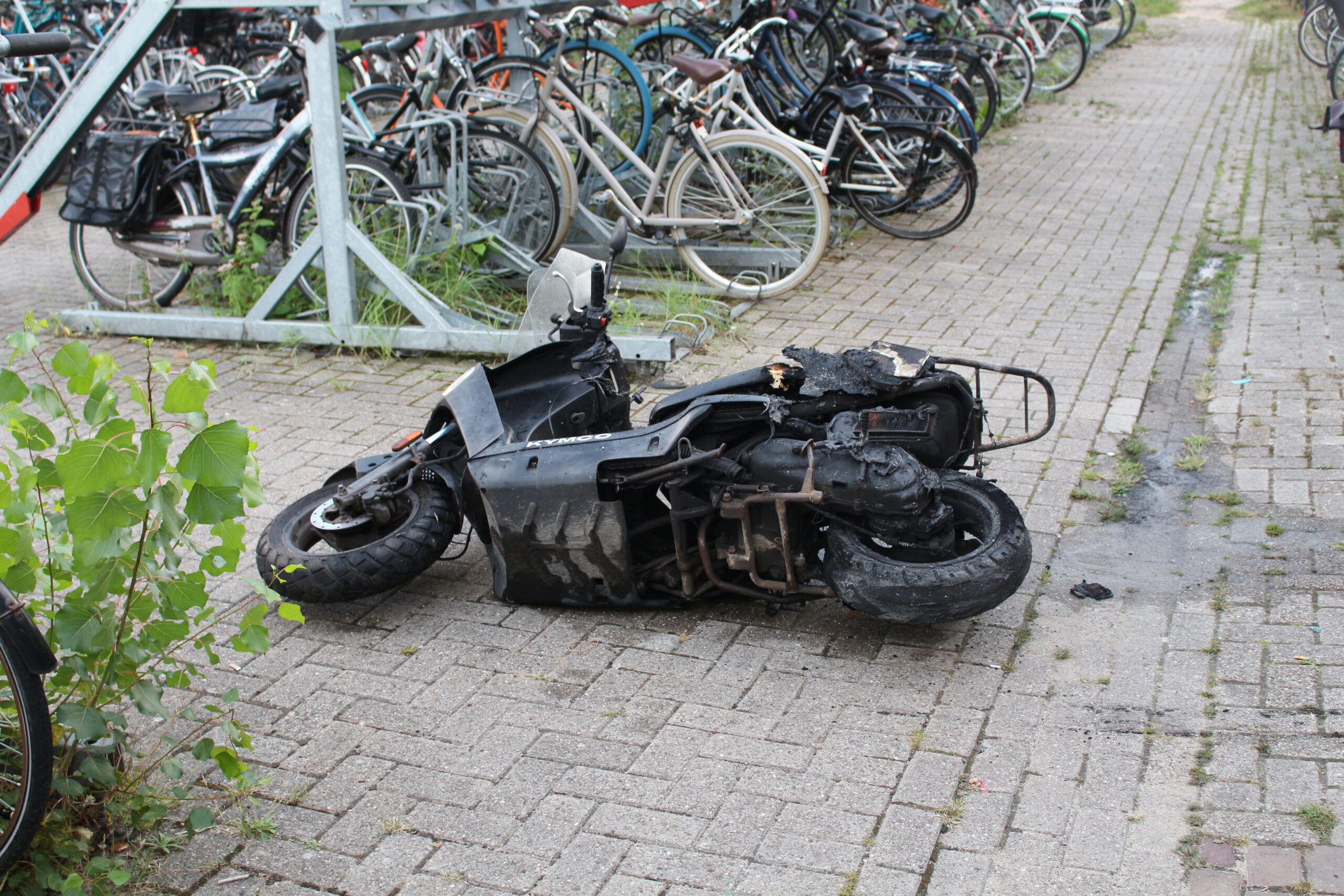 De brandweer heeft de brandende scooter geblust. Die raakte zwaar beschadigd.