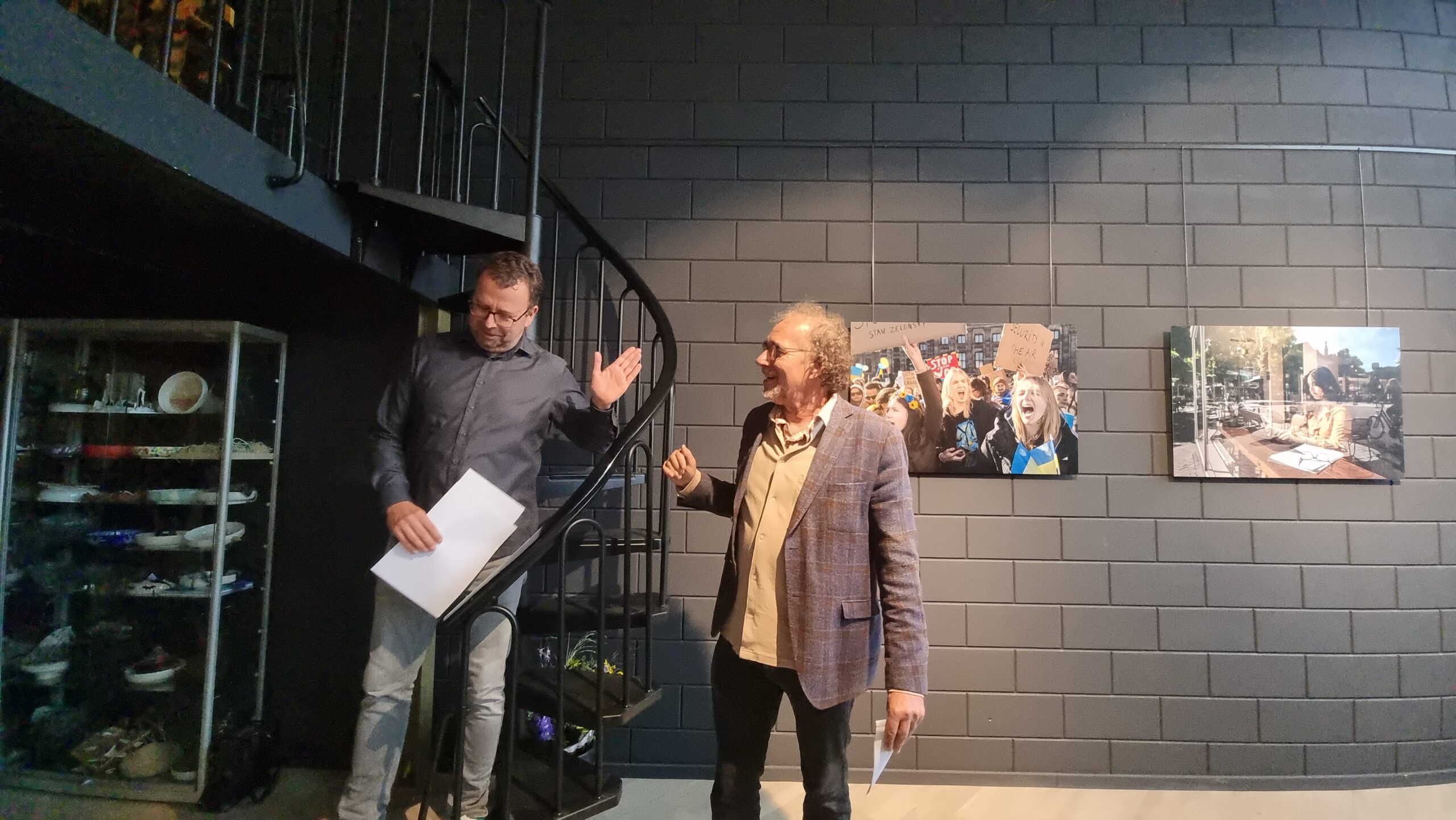 Koen Suidgeest is geen Stadsfotograaf Leiden meer. Zijn jaar eindigde zondagmiddag in Galerie Yomooka aan de Haagweg 4 waar cultuurwethouder Yvonne van Delft zijn opvolgers bekend maakte. Dat zijn 36, of 37, dat werd niet helemaal duidelijk, studenten die aan de Universiteit Leiden de masteropleiding Journalistiek en Nieuwe Media volgen.