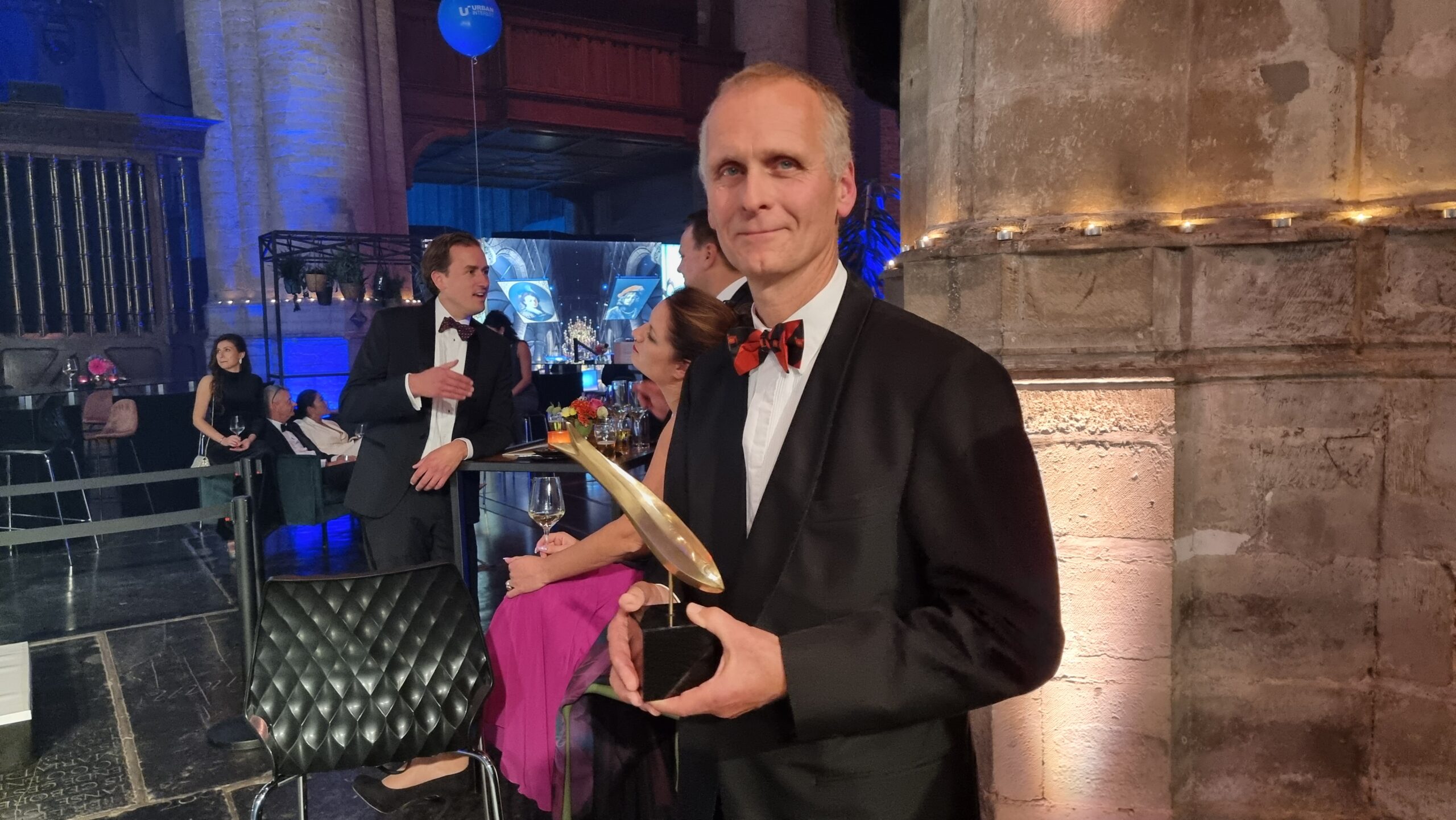 Chris de Waard sprak na de uitreiking met Nynke Ligtenberg over de prijs en de betekenis van het bedrijf Janssen voor Leiden.