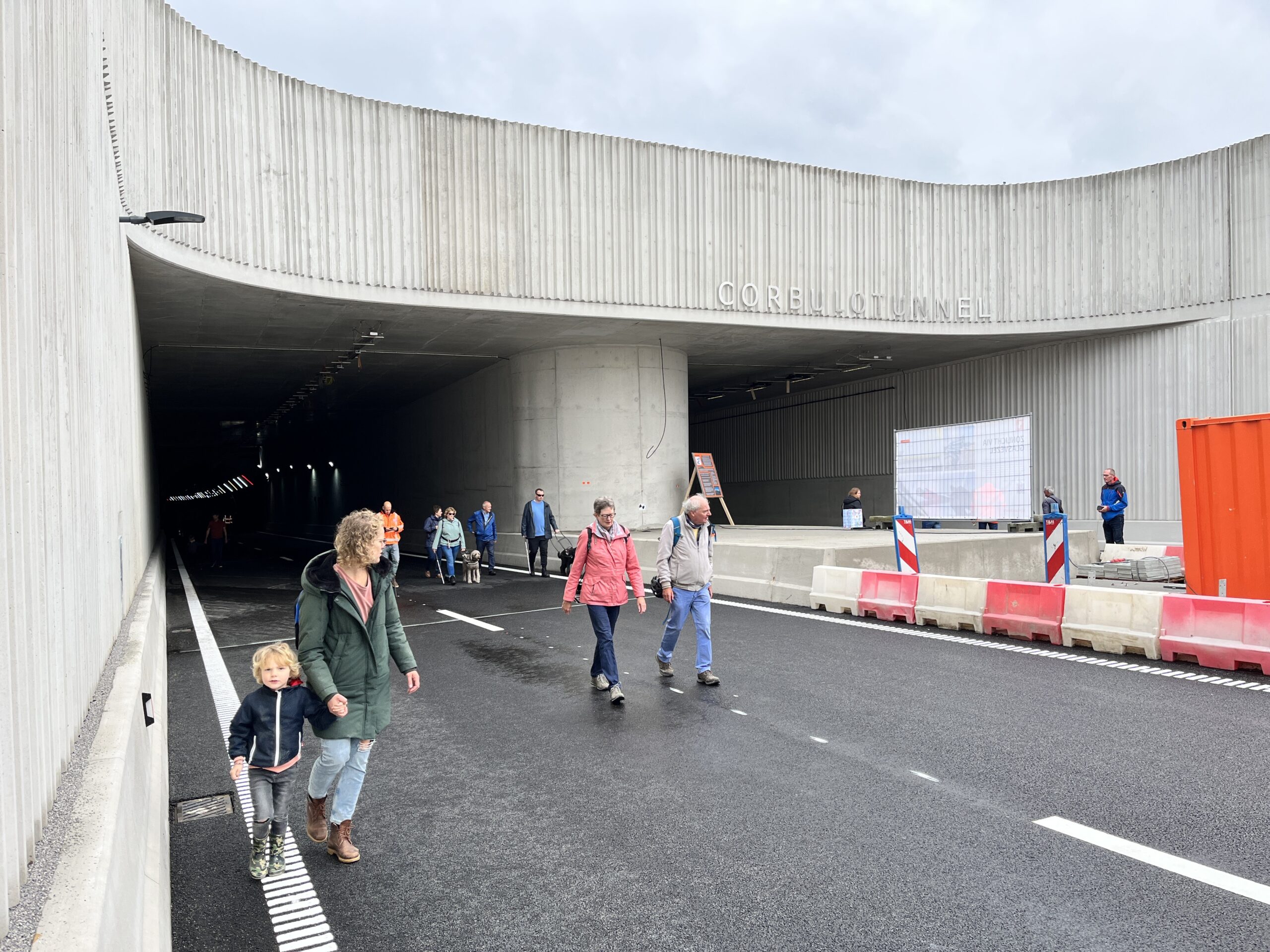 “We kampen net als veel andere organisaties met problemen bij het leveren van materialen. We wachten bijvoorbeeld nog steeds op camera’s”, gaat de woordvoerder verder. Toch was de sfeer bij de open dag positief. “Mensen vinden het bijzonder om hier te mogen lopen, nog voordat de auto’s hier over een aantal jaar doorheen rijden.”