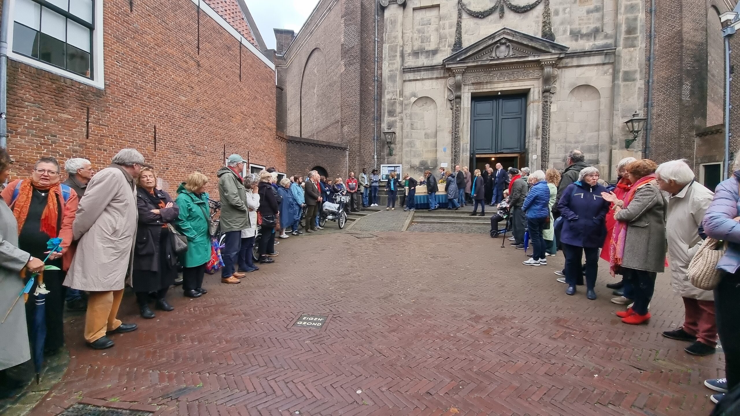 Na afloop van de bijeenkomst werd buiten de kerk een erehaag gevormd.