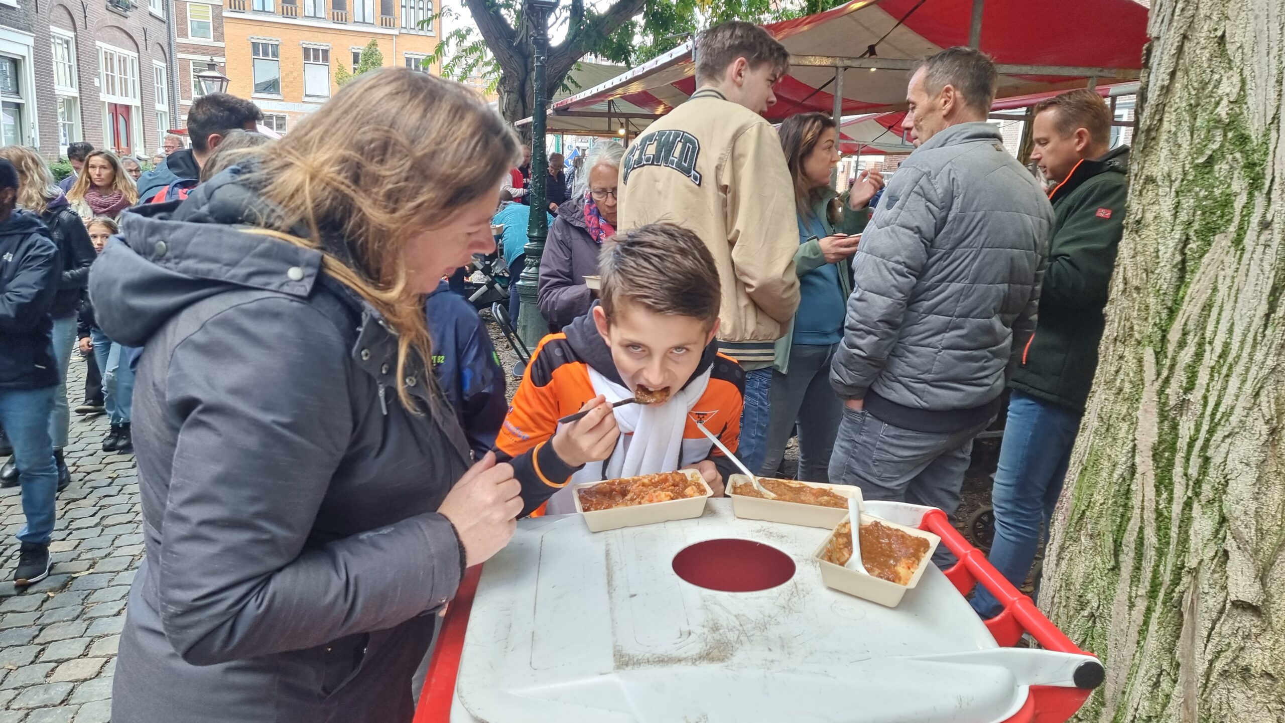 3 October Vereeniging Rik Kamps proeft zowel de vegatarische als de tradionele hutspot.