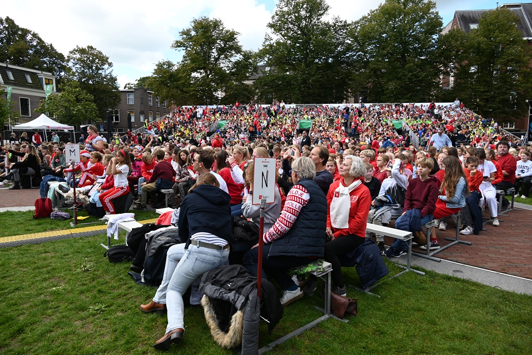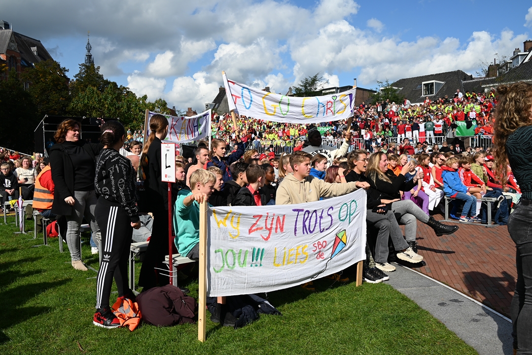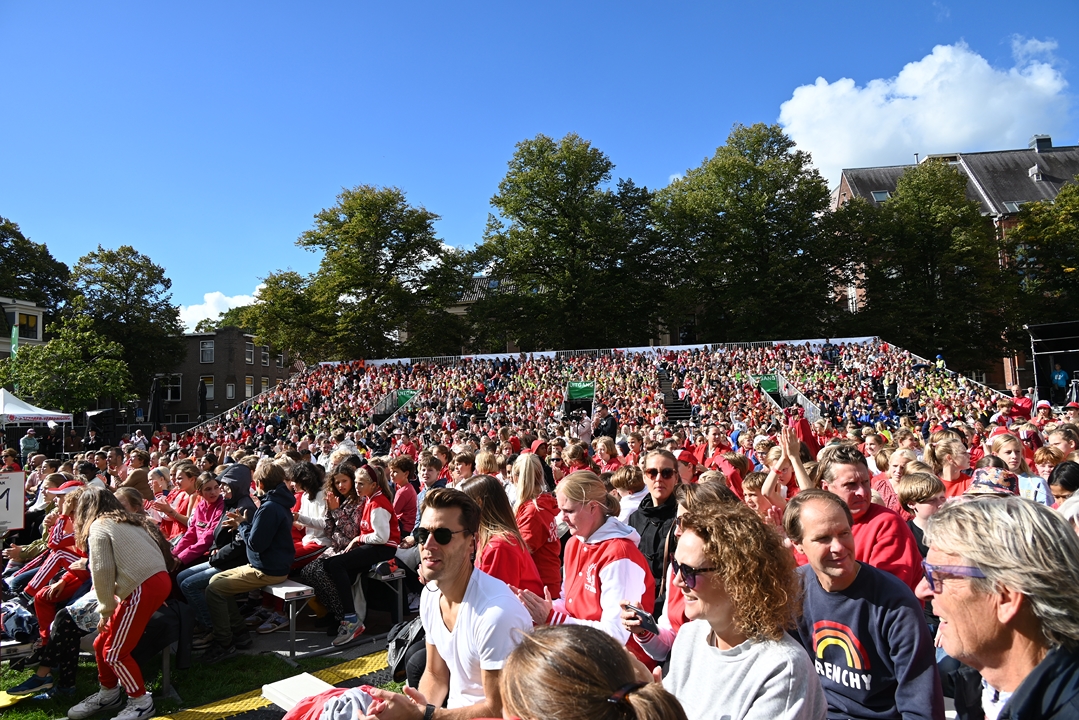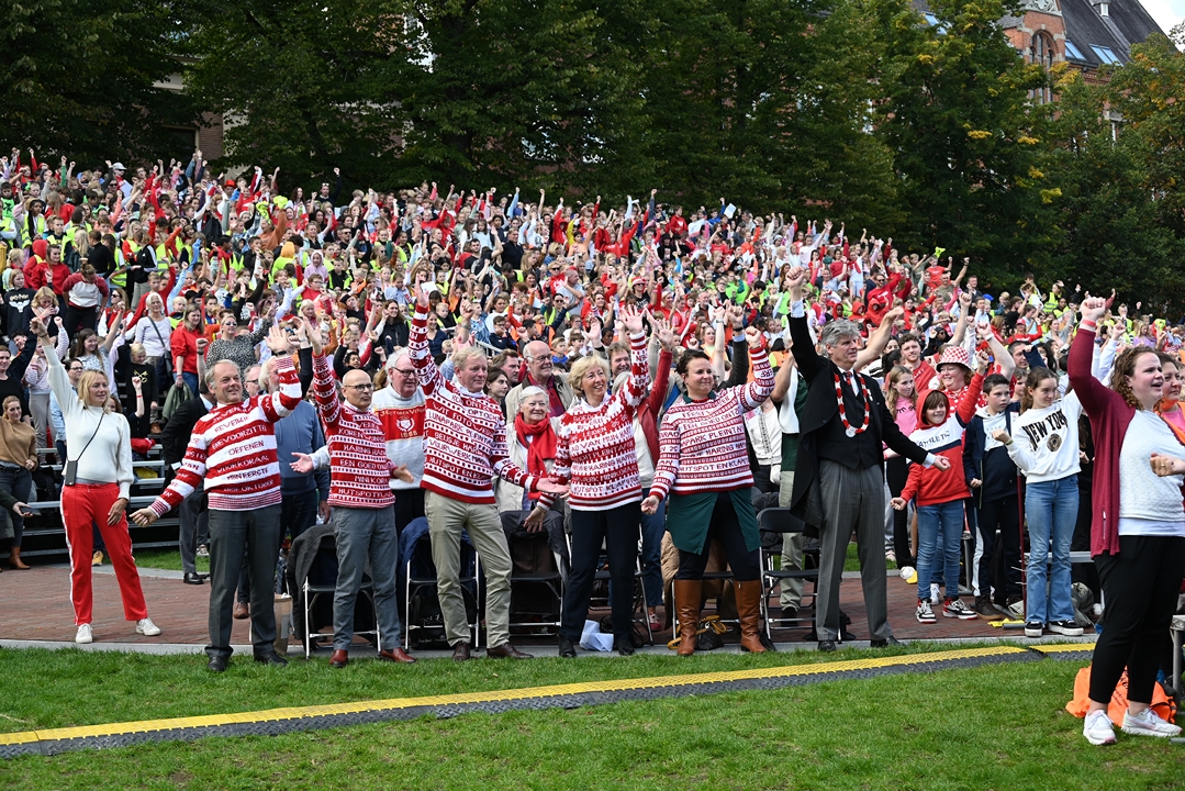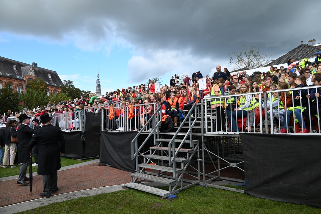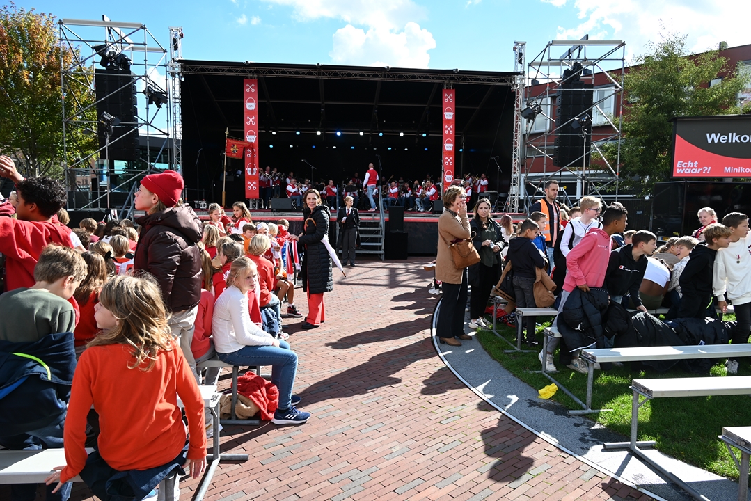 Nieuwe liedjes, geen burgemeester Pieter van der Werf en geen Jochem Myjer. Minikoraal 2022 liet een vernieuwingsslag zien. Voor de ruim drieduizend kinderen op het Garenmarktplein leek het allemaal niet veel uit te maken. Wel jammer dat Jochem er niet zelf was, maar zijn lied werd als vanouds luidkeels meegezongen.