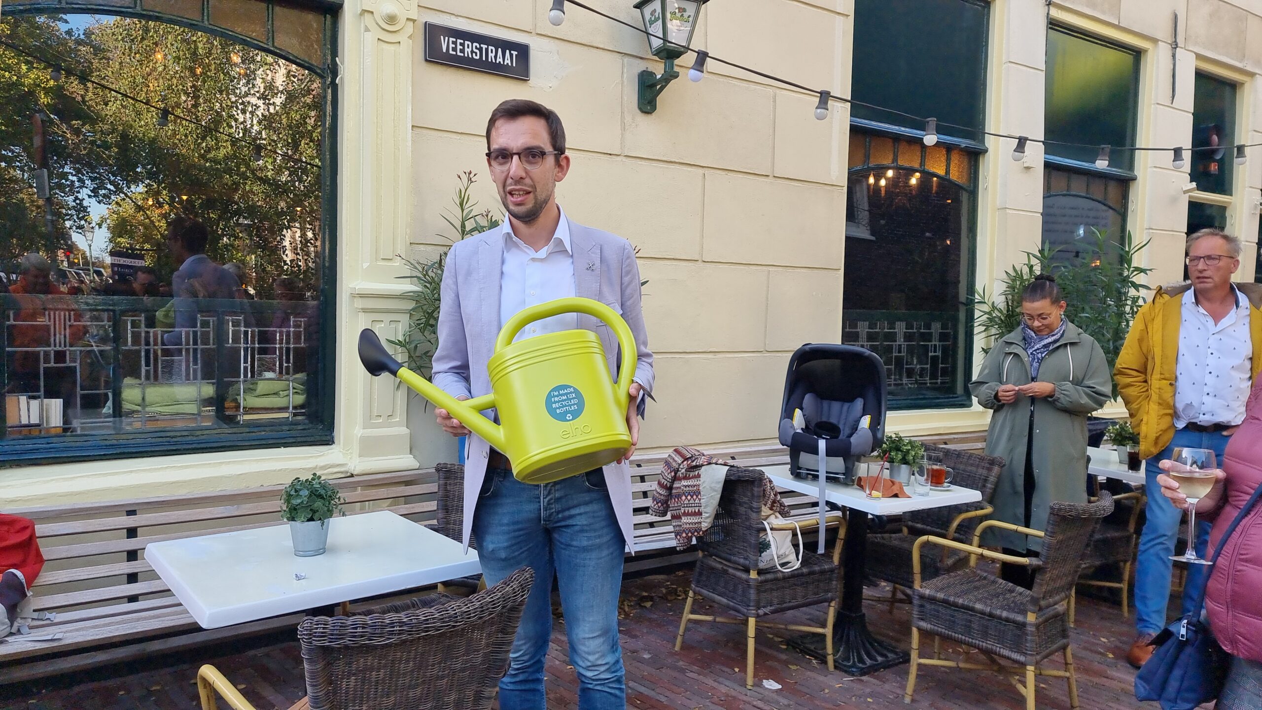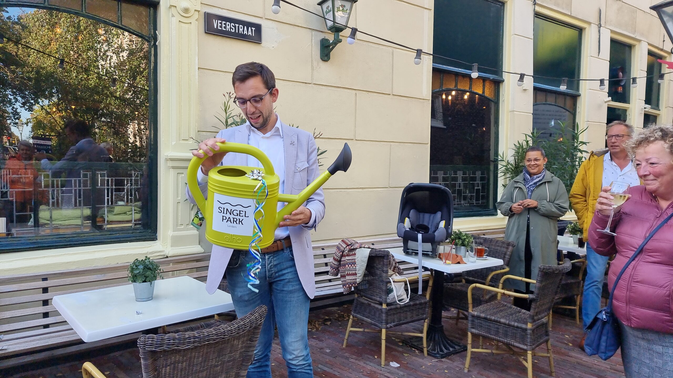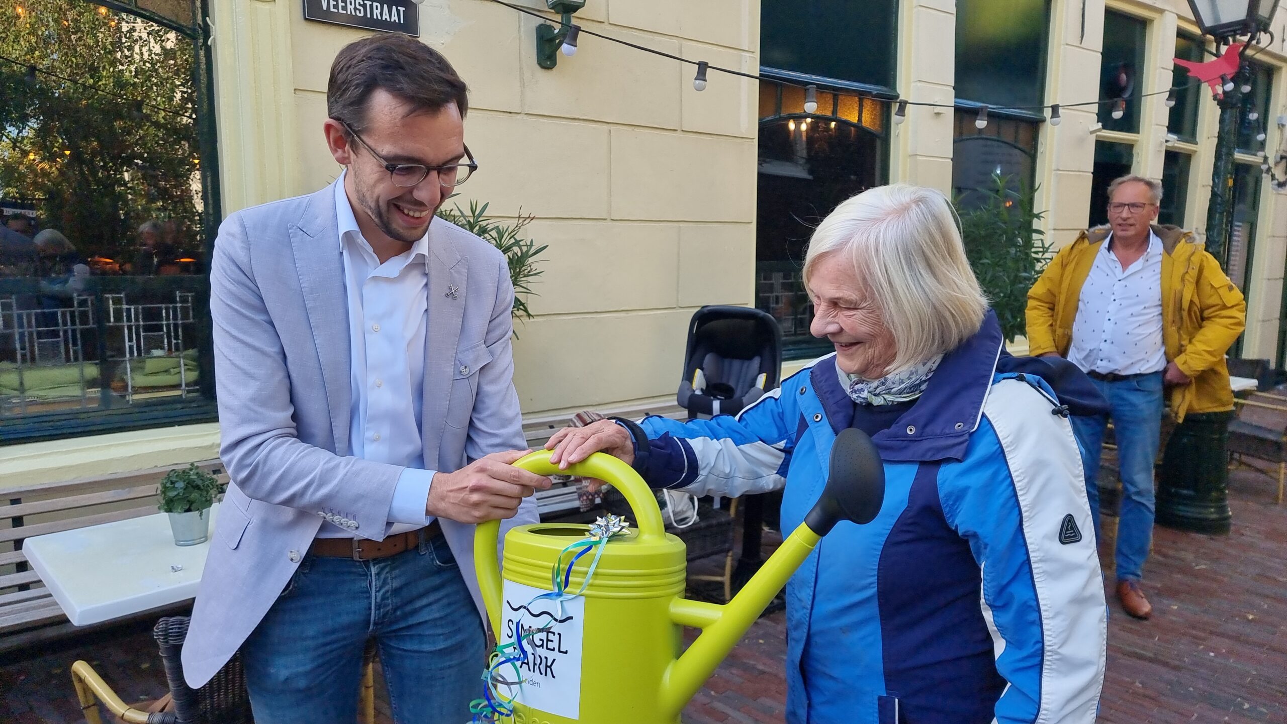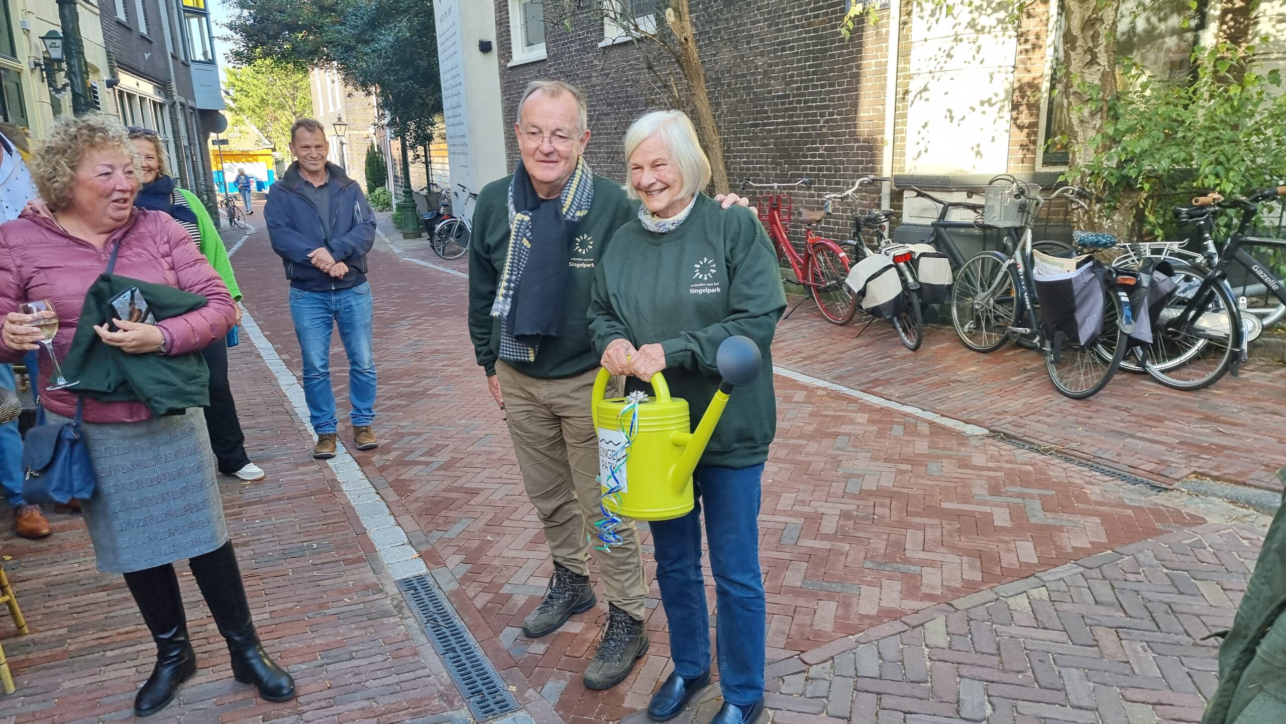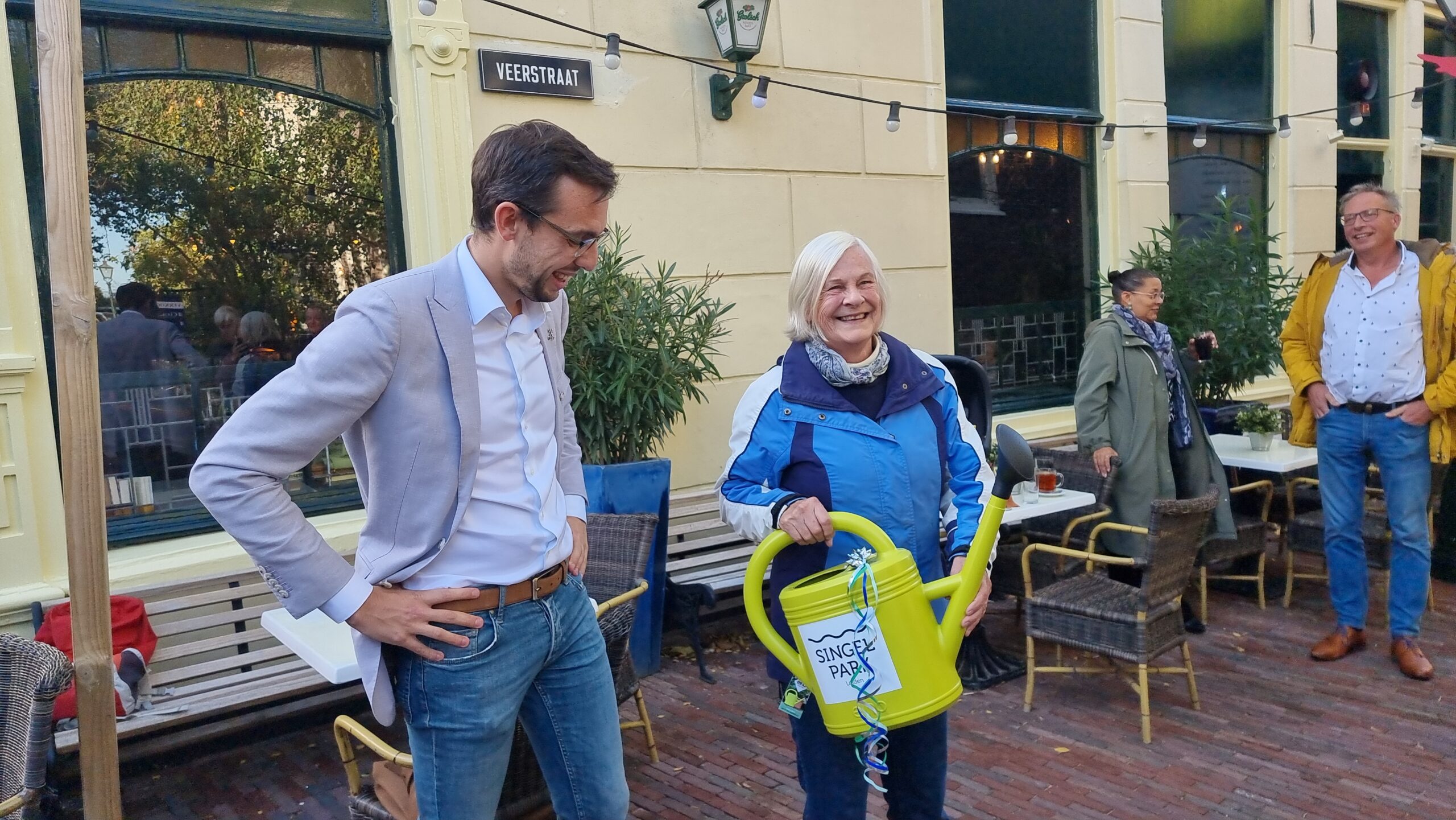 Ook Carolien is opgetogen. Ze woont in de Veerstraat en kreeg niet alleen als eerste buurtbewoner een Singelparktrui en een gieter van gerecycled materiaal, maar van de gemeente ook al planten en bloembakken om de straat op te fleuren. En die straat werd ook nog eens helemaal opnieuw bestraat en ligt er weer prima bij.