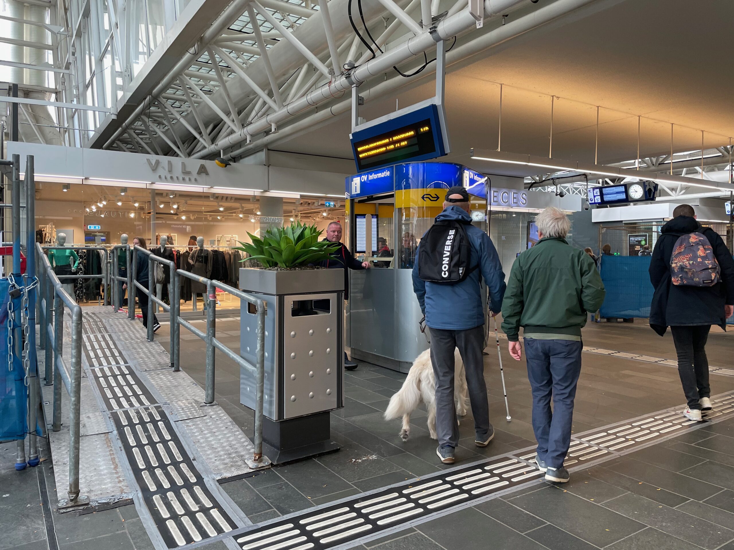 Niet iedereen heeft deze zaterdagochtend tijd. Vooral mensen die naar het station toe lopen, hebben haast om hun trein te halen. Anderen zijn wel bereid tot een gesprek. De witte stok kennen ze wel, maar van deze dag op 15 oktober hebben de meesten nog nooit gehoord. “Wel goed dat er aandacht voor is”, zegt een vrouw, die verder het idee heeft dat het stationsplein aardig in orde is. “Volgens mij kun je hier nog niet vallen al zou je het willen.” Dat overkwam een paar minuten daarvoor overigens wel een man met een rollator.