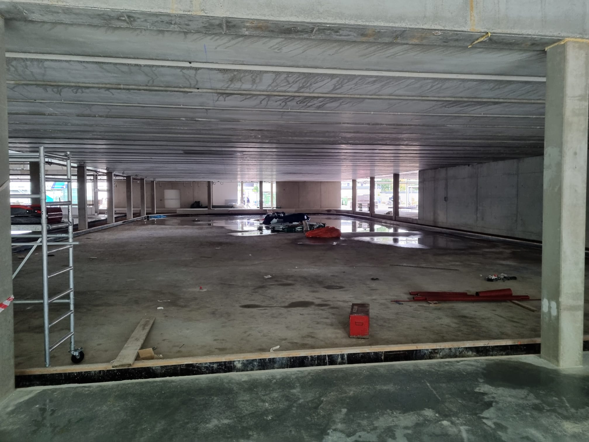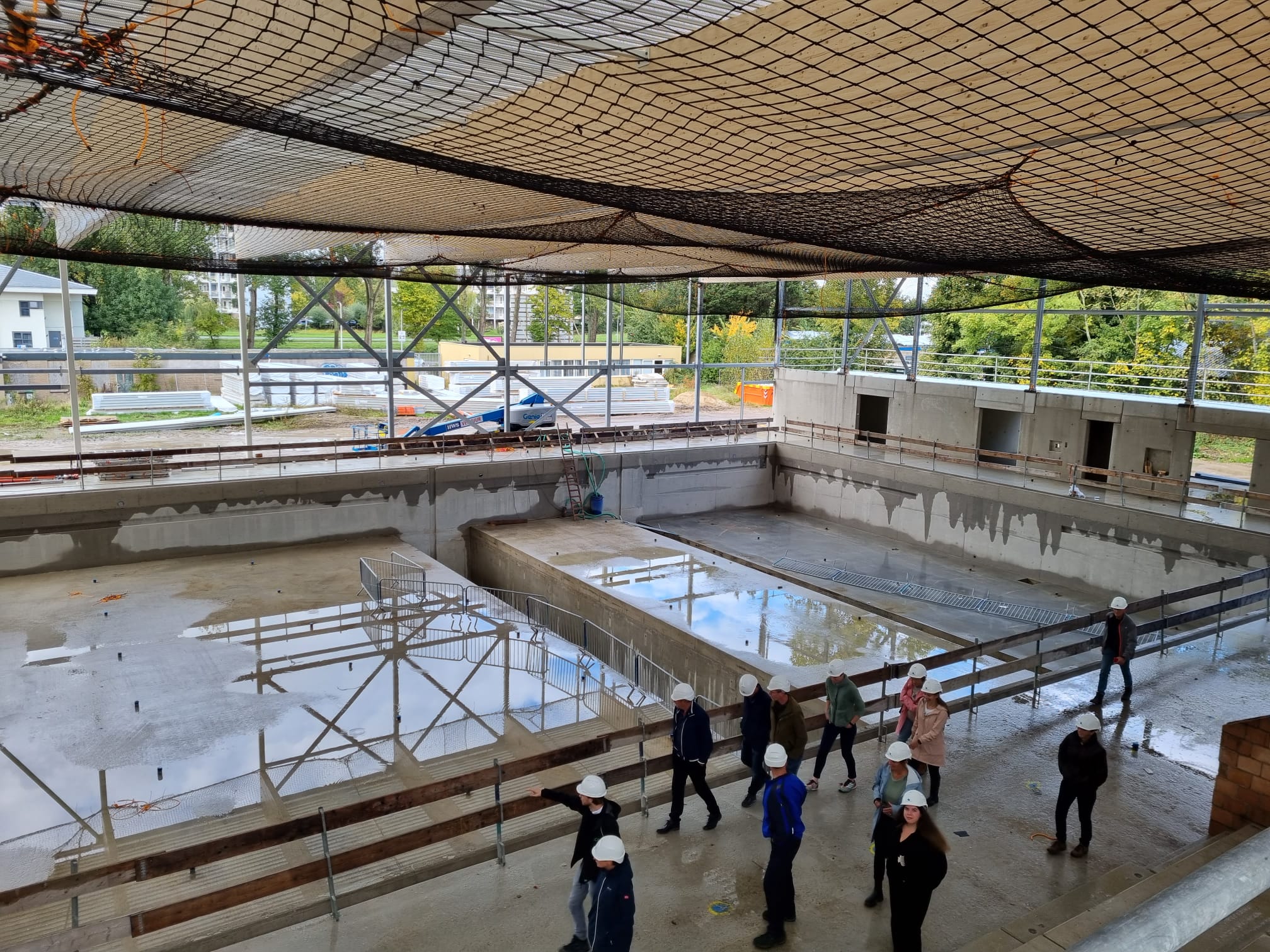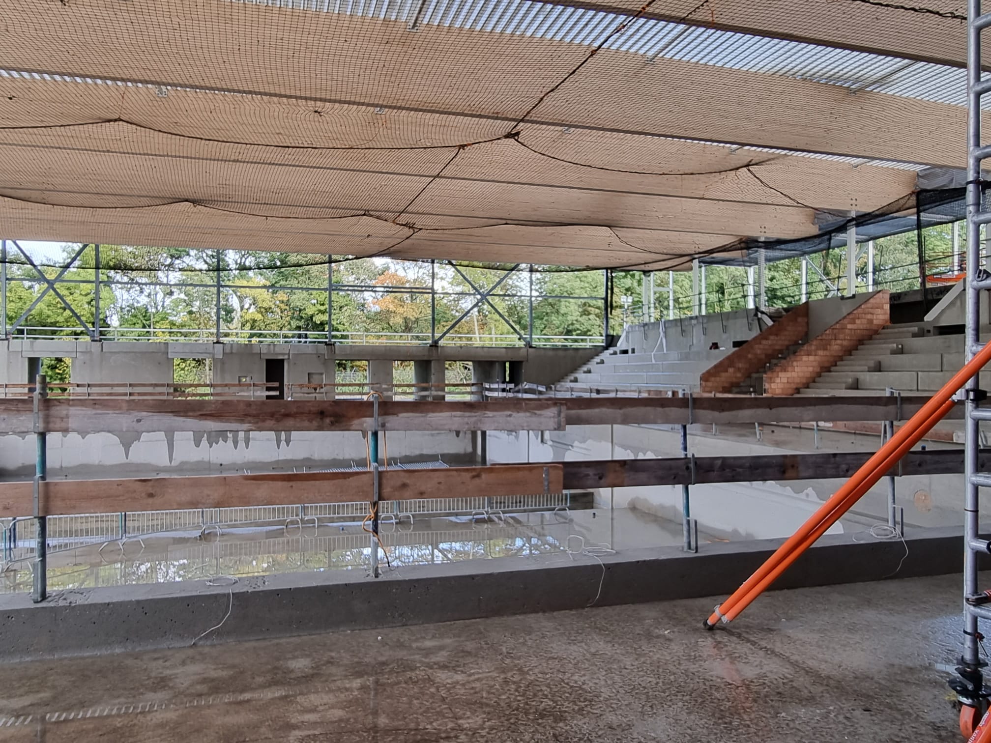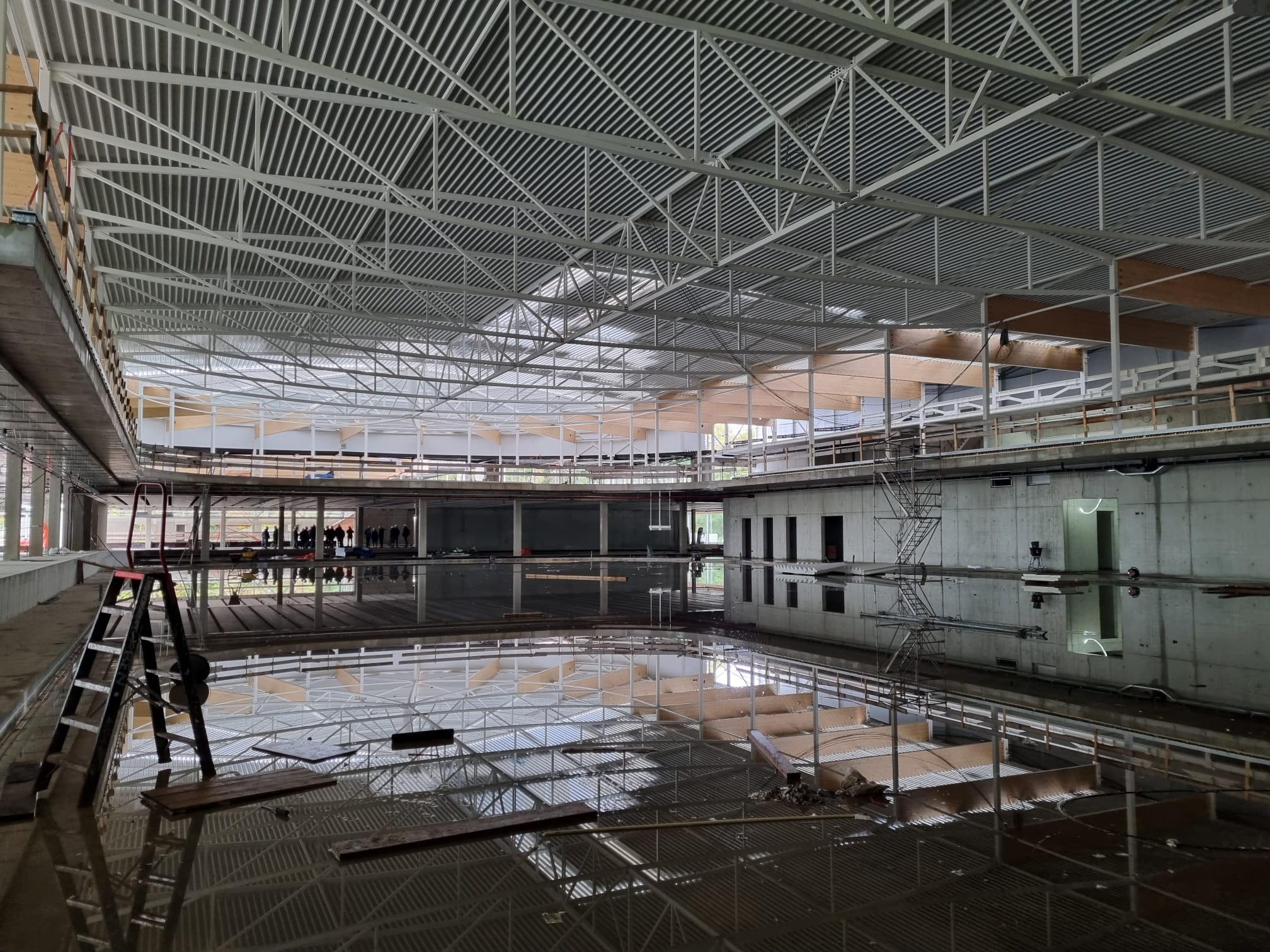 Gemeente en toekomstige gebruikers van het nieuwe binnenzwembad annex schaatshal De Vliet in het gelijknamige sportpark aan de Voorschoterweg hebben het hoogste punt van het nieuwe sportcomplex gevierd.