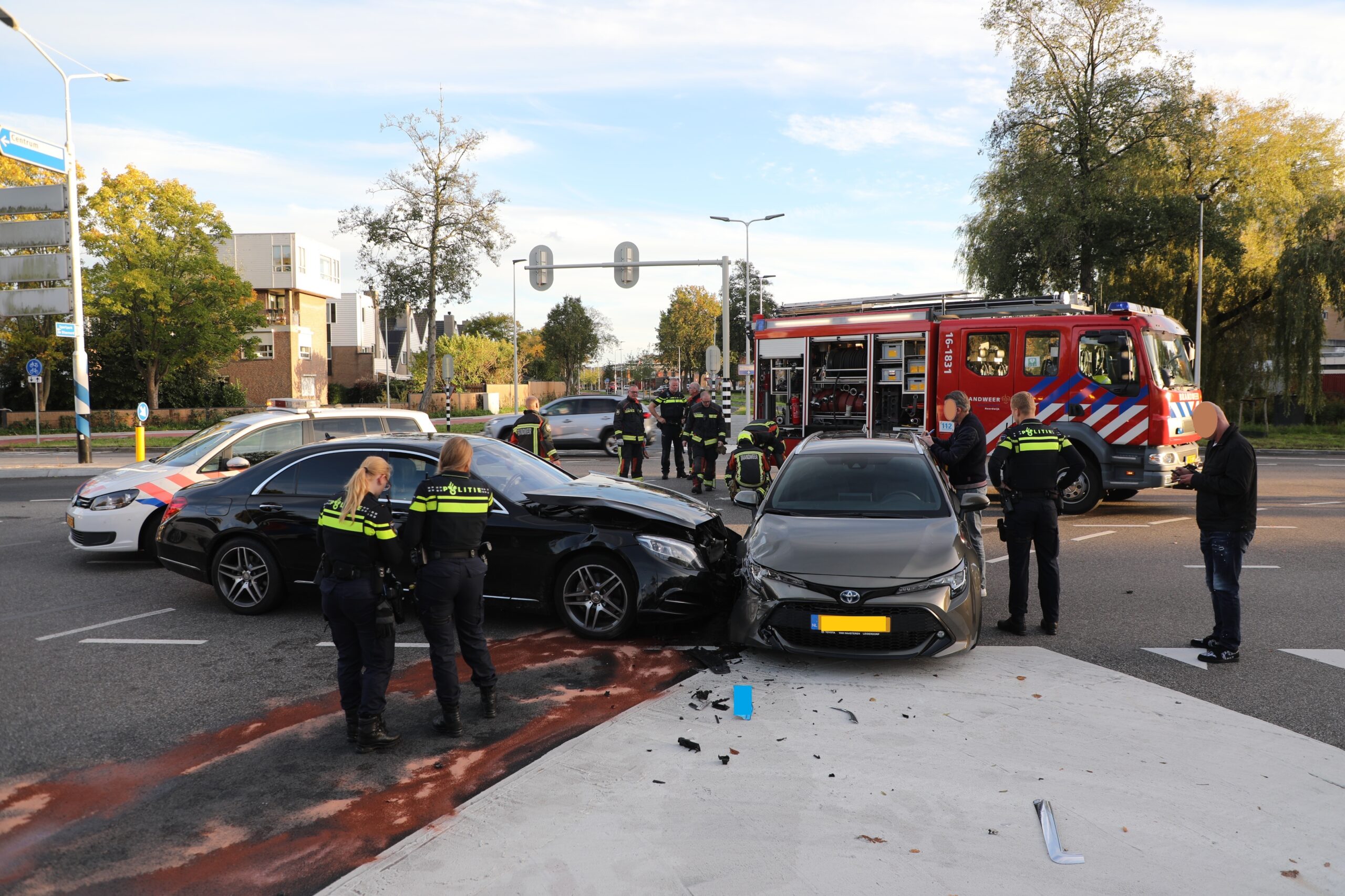 Een personenauto en taxi zijn zaterdag aan het einde van de middag tegen elkaar gebotst op de kruising van het Engelendaal met de Persant Snoepweg in Leiderdorp. Niemand raakte gewond, maar beide voertuigen werden weggesleept door een berger. De bestuurder van de Toyota zal extra hebben gebaald: het voertuig was slechts één dag oud.