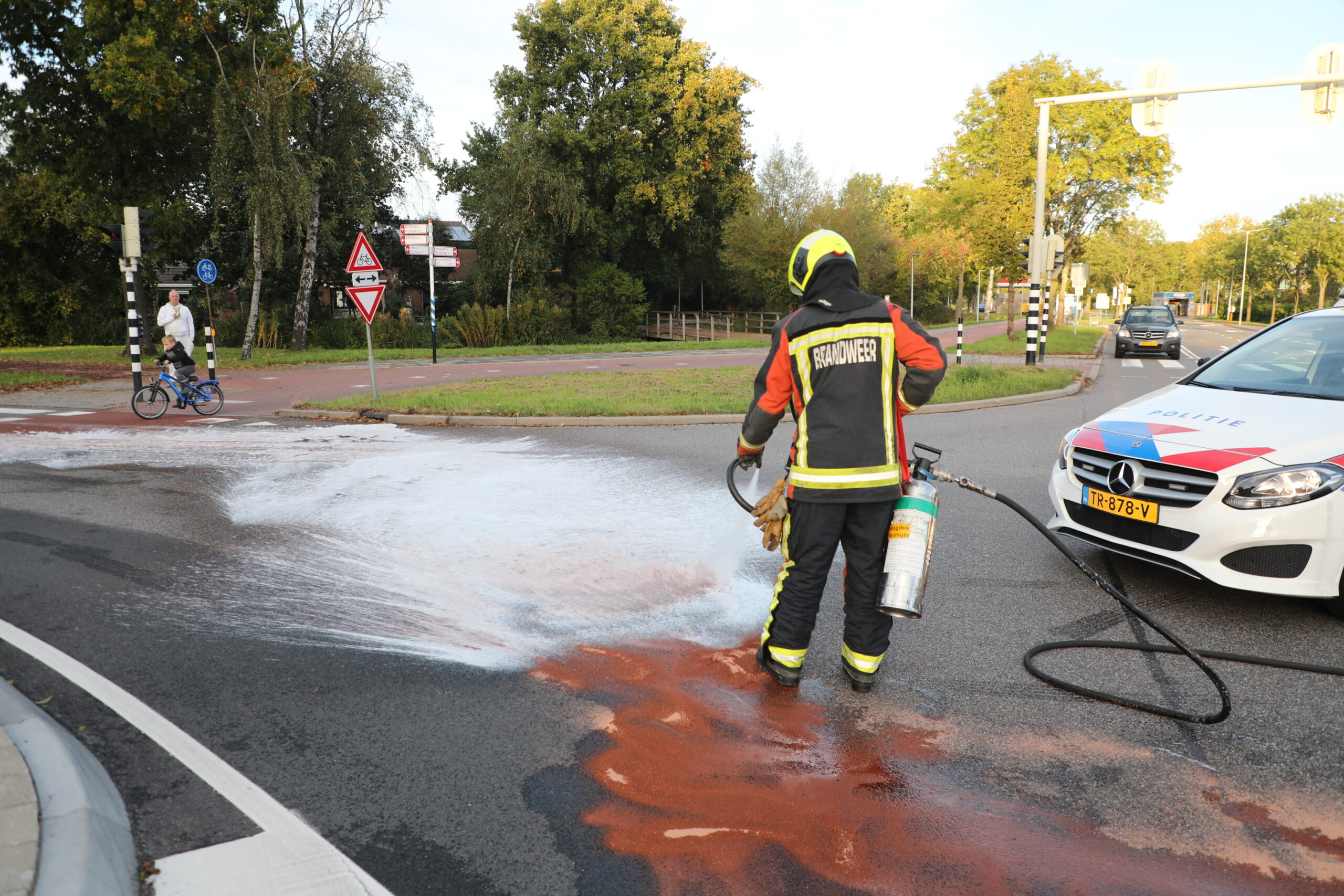 Slecht zicht door de laagstaande zon was waarschijnlijk de oorzaak van het ongeluk. De brandweer kwam ter plaatse voor hand- en spandiensten en het reinigen van het wegdek.