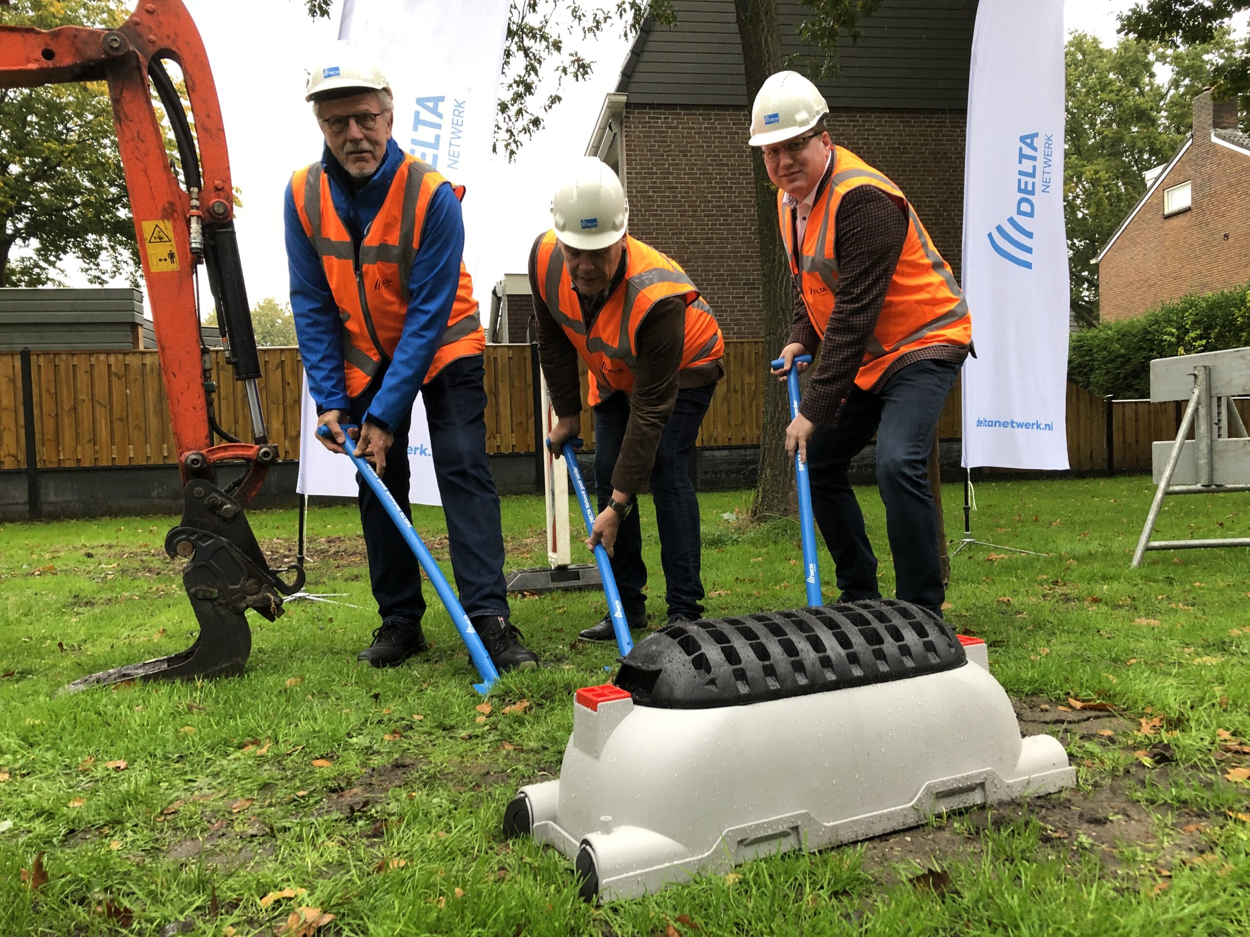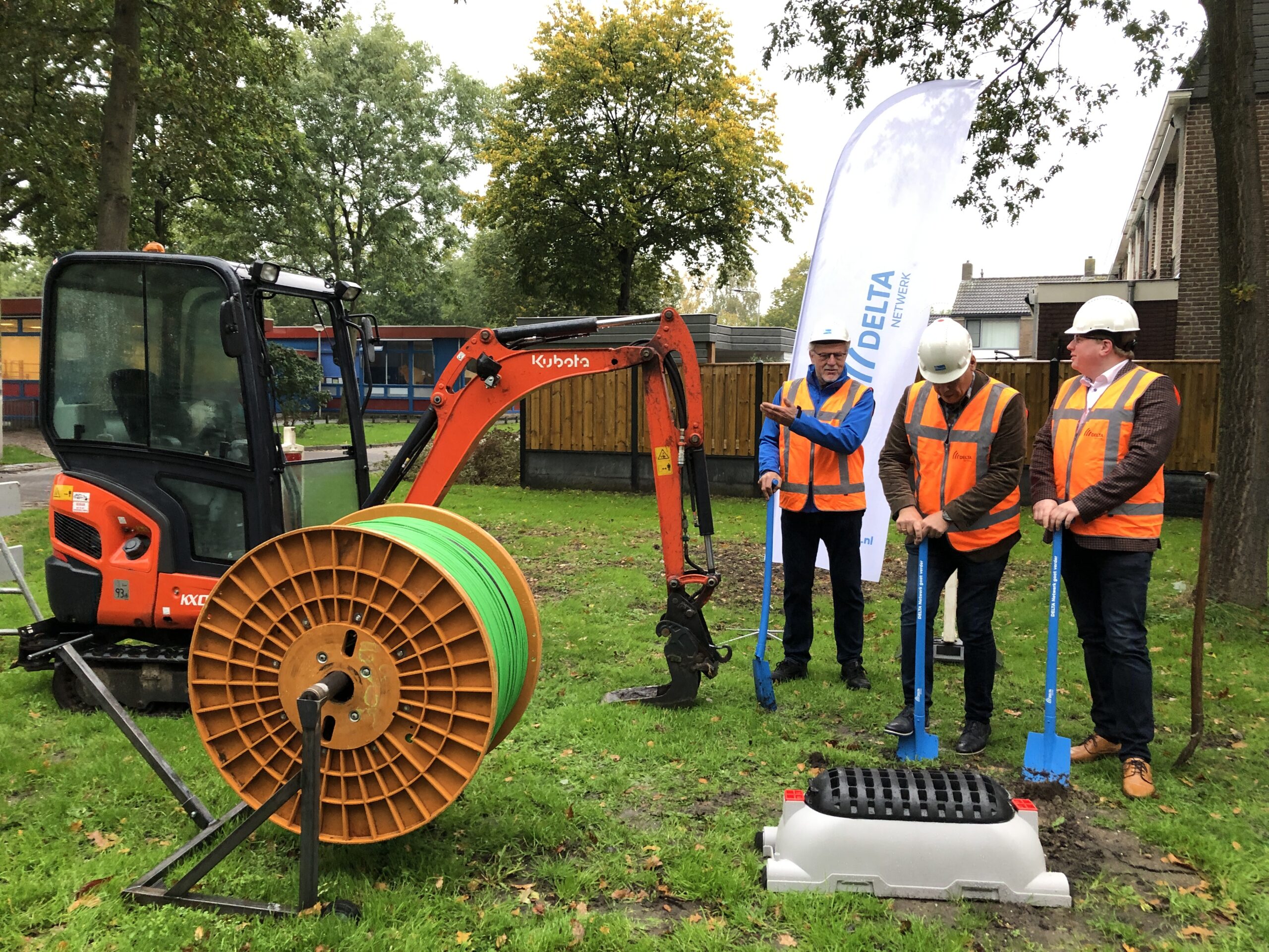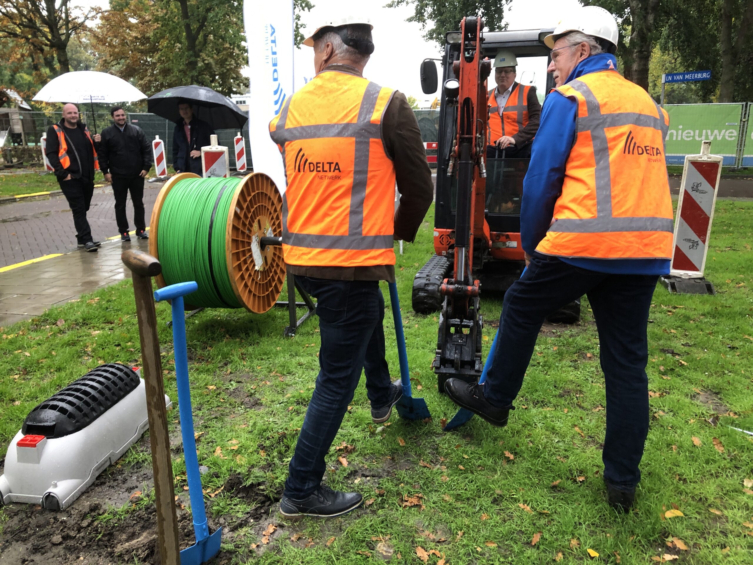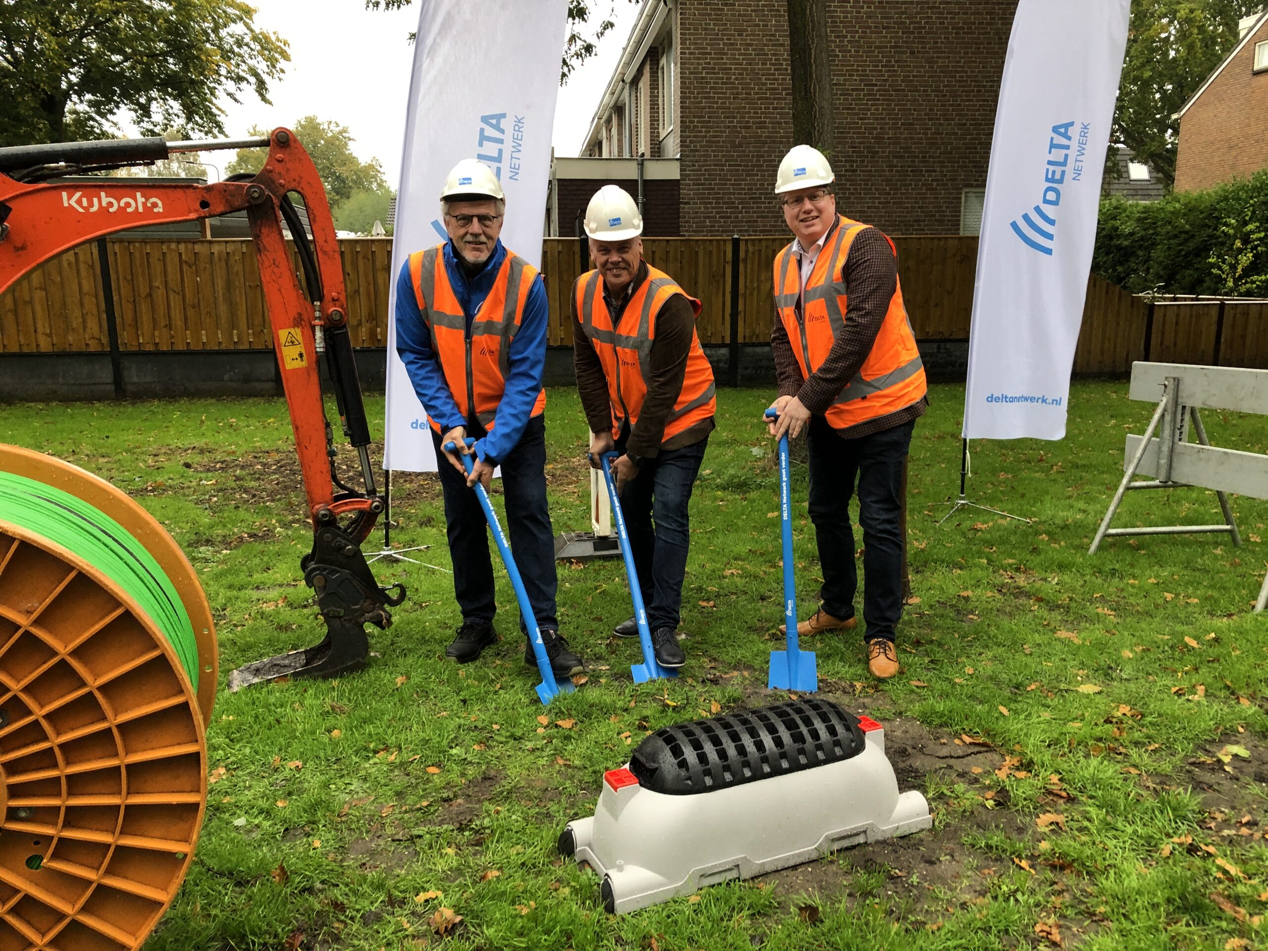 Wethouder Paul Olthof en directeuren Piet Grootenboer (DELTA netwerk) en Rob van Halderen (APK Telecom) hebben maandagochtend de start van de aanleg van snel internet in Zoeterwoude gevierd. Zij zetten de eerste schoppen in de grond op de hoek van de Oranjelaan en de Laan van Meerburg in Zoeterwoude-Rijndijk. Na dit symbolische gebaar wordt in de komende maanden de rest van de aanleg van het glasvezelnetwerk met graafmachines uitgevoerd.