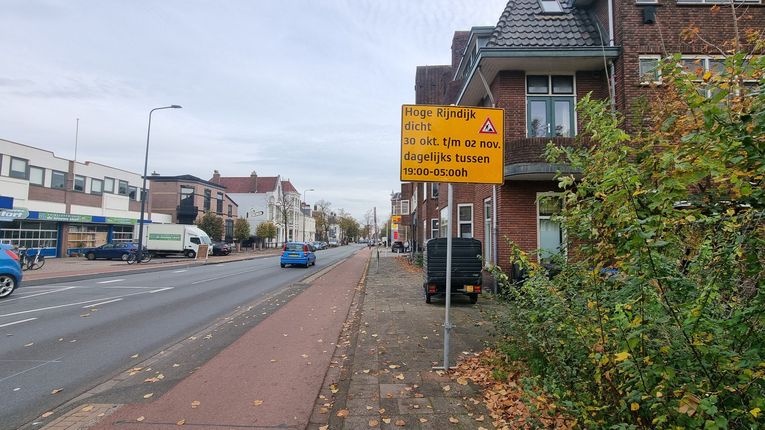Om de overlast voor het verkeer zoveel mogelijk te beperken wordt in de avond en nacht gewerkt. De Hoge Rijndijk is tijdens de werkzaamheden afgesloten voor verkeer dat via informatieborden wordt omgeleid. Fietspaden en trottoirs blijven toegankelijk.