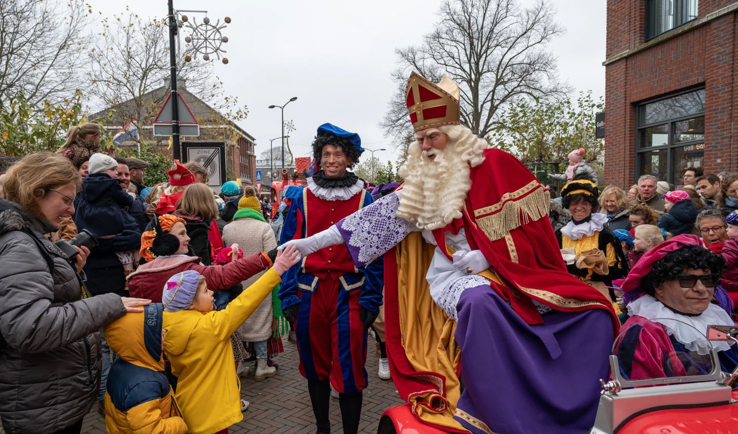 Na de rit door de Schoolstraat werd de Sint in de Voorstraat welkom geheten door burgemeester Nadine Stemerdink die samen met het bestuur van de centrumondernemers al stond te wachten in de muziektent. Voor de kinderen had Sint goed nieuws. “Jullie zijn misschien geschrokken van de vele berichten over de pakjesboot die is gezonken”, zei hij. “Maar ik kan jullie verzekeren dat alles goed is gekomen en we de kado’s hebben kunnen redden.”