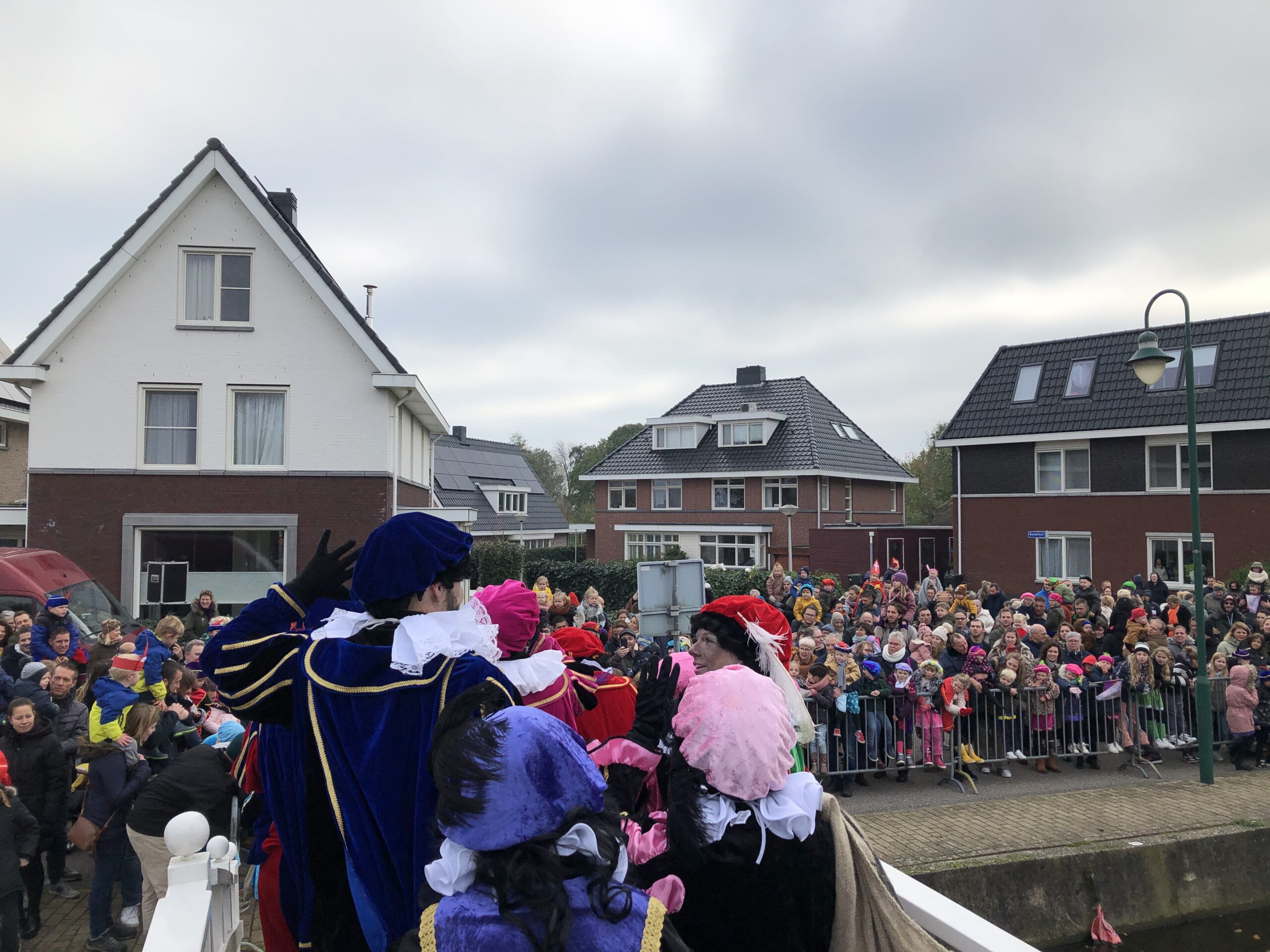 In ‘het Dorp’ kwam hij zaterdagochtend per boot aan. Samen met ruim honderd kinderen stond burgemeester Fred van Trigt Sint Nicolaas op te wachten bij de brug aan de Noordbuurtseweg. Eenmaal aan land besteeg Sinterklaas zijn trouwe schimmel Ozosnel en liep hij in optocht mee naar het Dorpsplein. Daar verzorgden Frank en Karin (K’dans) een ‘Welkom Sinterklaas’-dans waarna er de mogelijkheid was voor een meet-en-greet met de Sint.