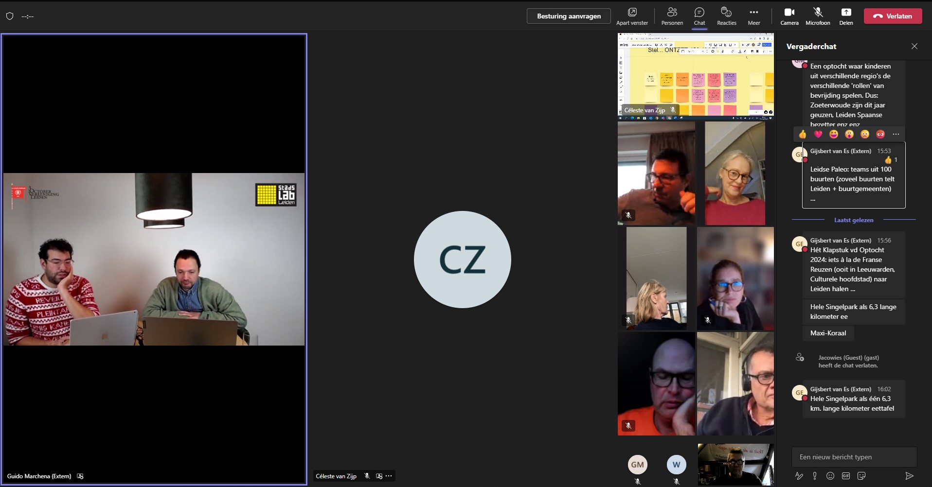 Een Leids Paleo kwam ook op het digitale bord met ‘geeltjes’ terecht. “Met teams uit de honderd buurten van Leiden en de regio die het tegen elkaar opnemen”, opperde Van Es Die het ook wel de moeite waard vindt om te kijken of de reuzen naar leiden kunnen komen die door Leeuwarden liepen toen die stad Europese hoofdstad van Nederland was.