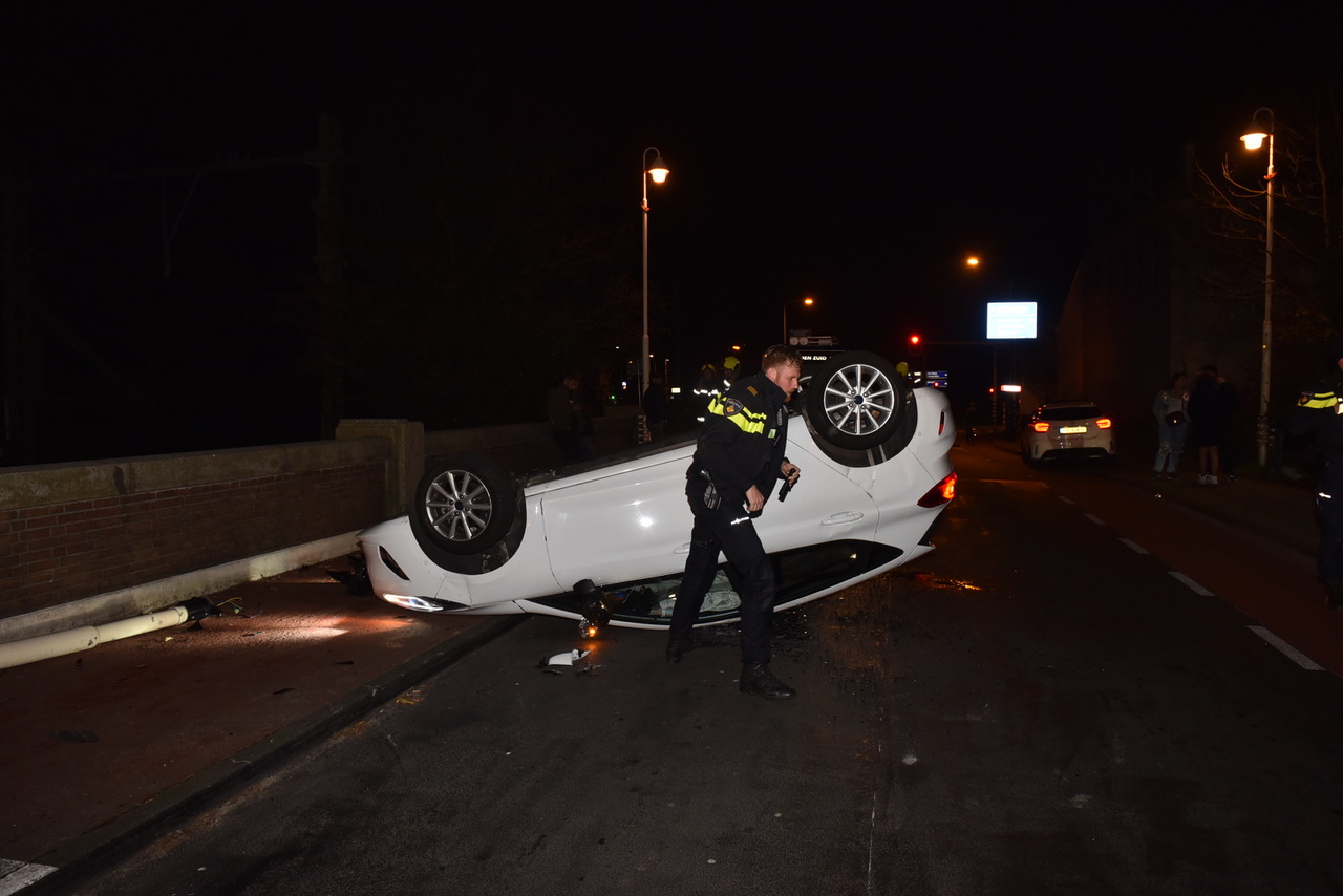 Op de Rijnzichtbrug in Leiden is in nacht van zaterdag op zondag een automobilist met zijn auto over de kop geslagen. De bestuurder reed rond 5.00 uur eerst een verkeerslicht omver en verloor toen de macht over het stuur. De bestuurder is bij het ongeval gewond geraakt en naar het ziekenhuis overgebracht.