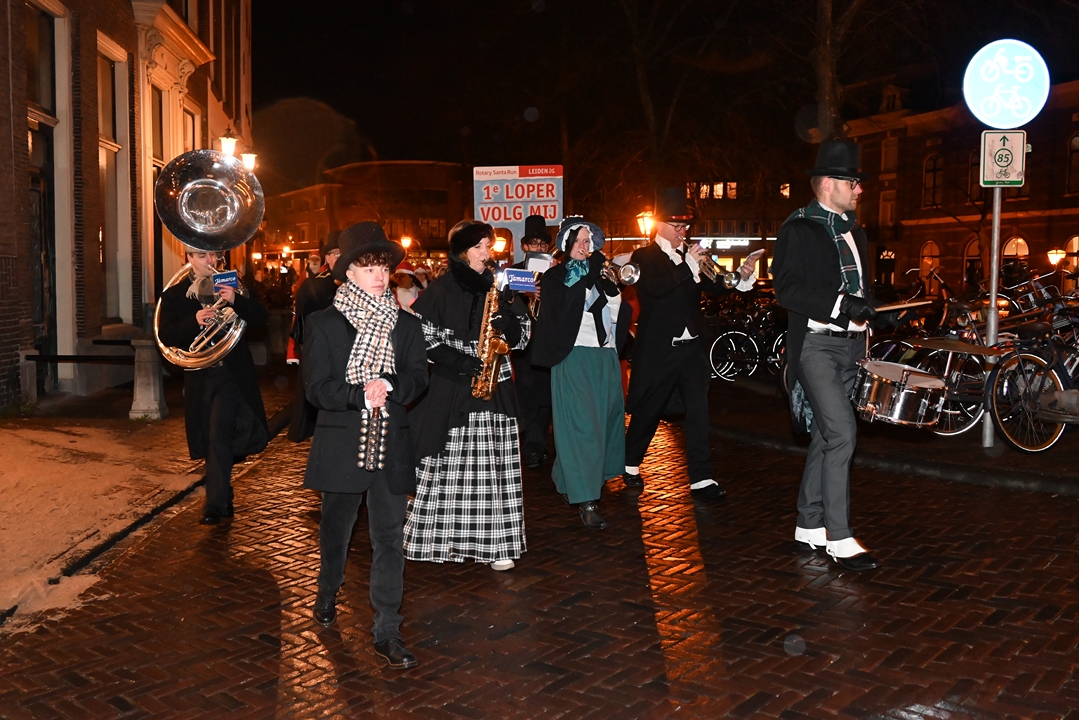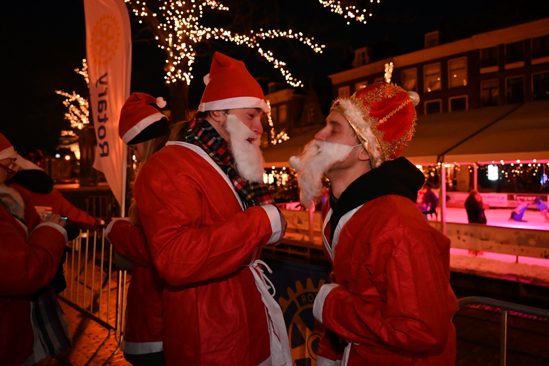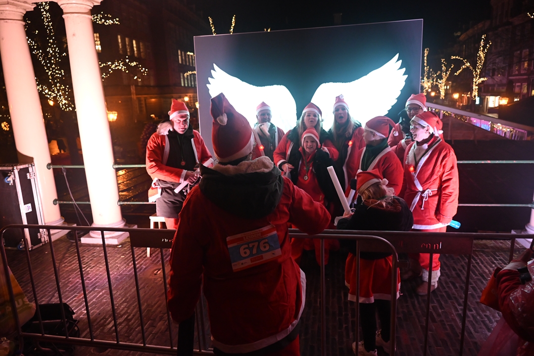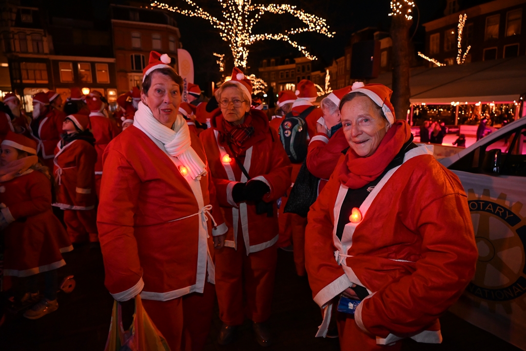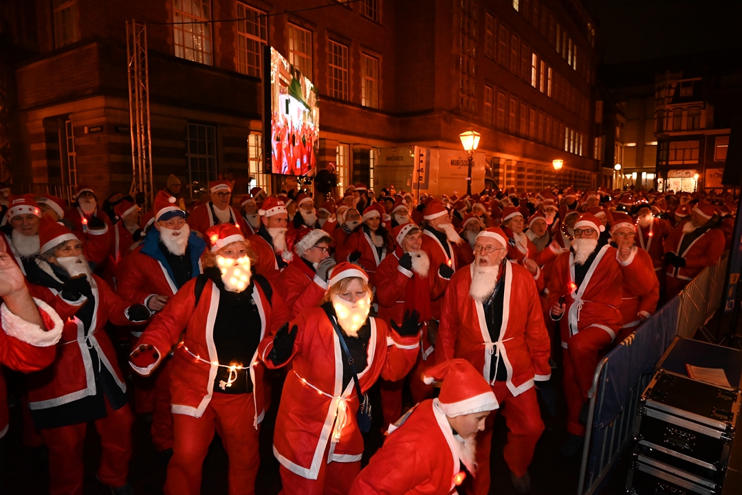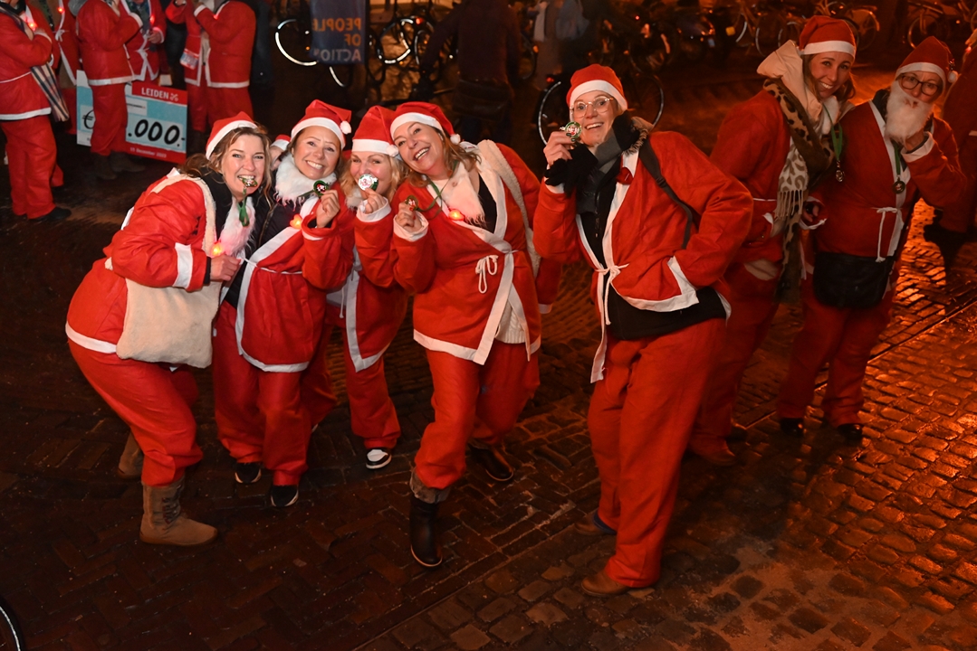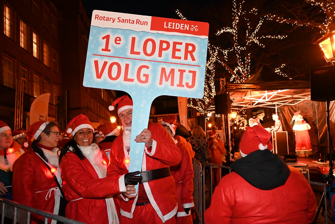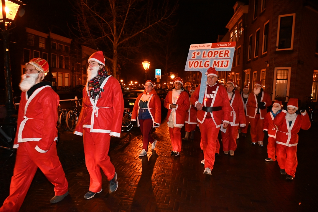 Onder aanvoering van de ‘echte kerstman’ liepen donderdagavond ruim 1500 hulpkerstmannen, -vrouwen en kinderen mee aan de Rotary Santa Run Leiden. Anders dan de naam doet vermoeden wordt er niet gerend maar gewandeld door het historische centrum van de stad. Een kaartje voor de wandeling kost 15,74 euro. De opbrengst gaat naar het goede doel.
