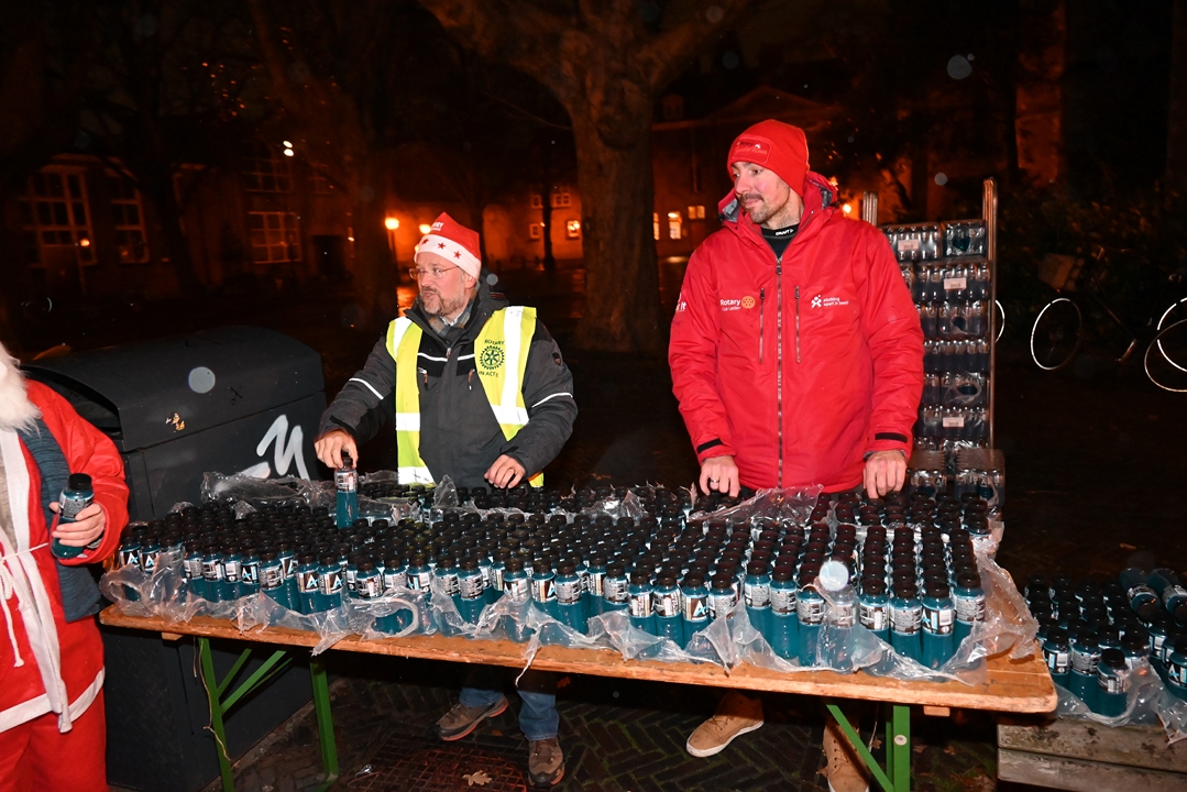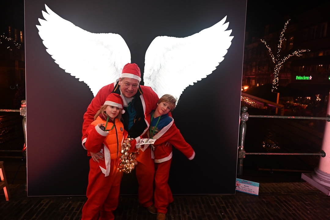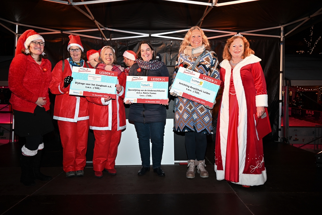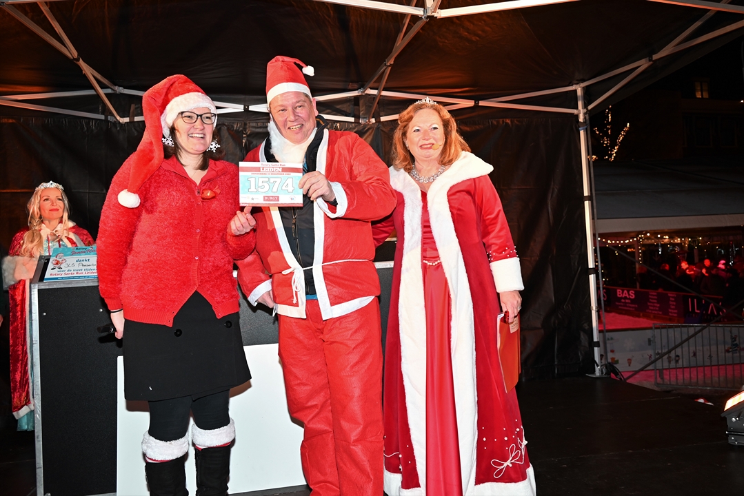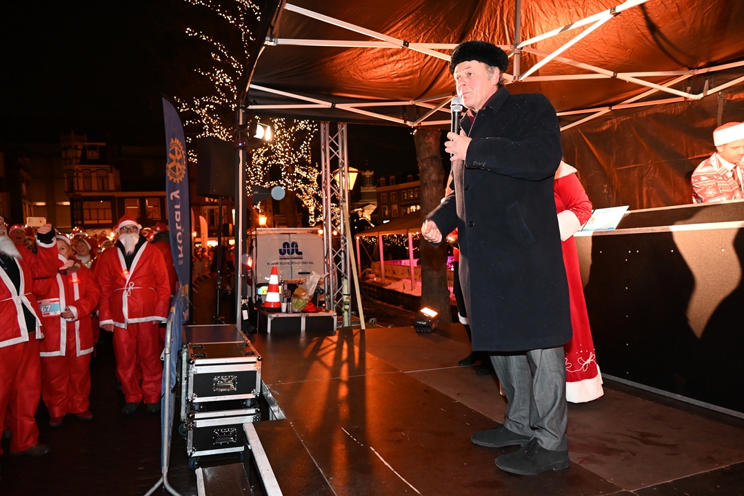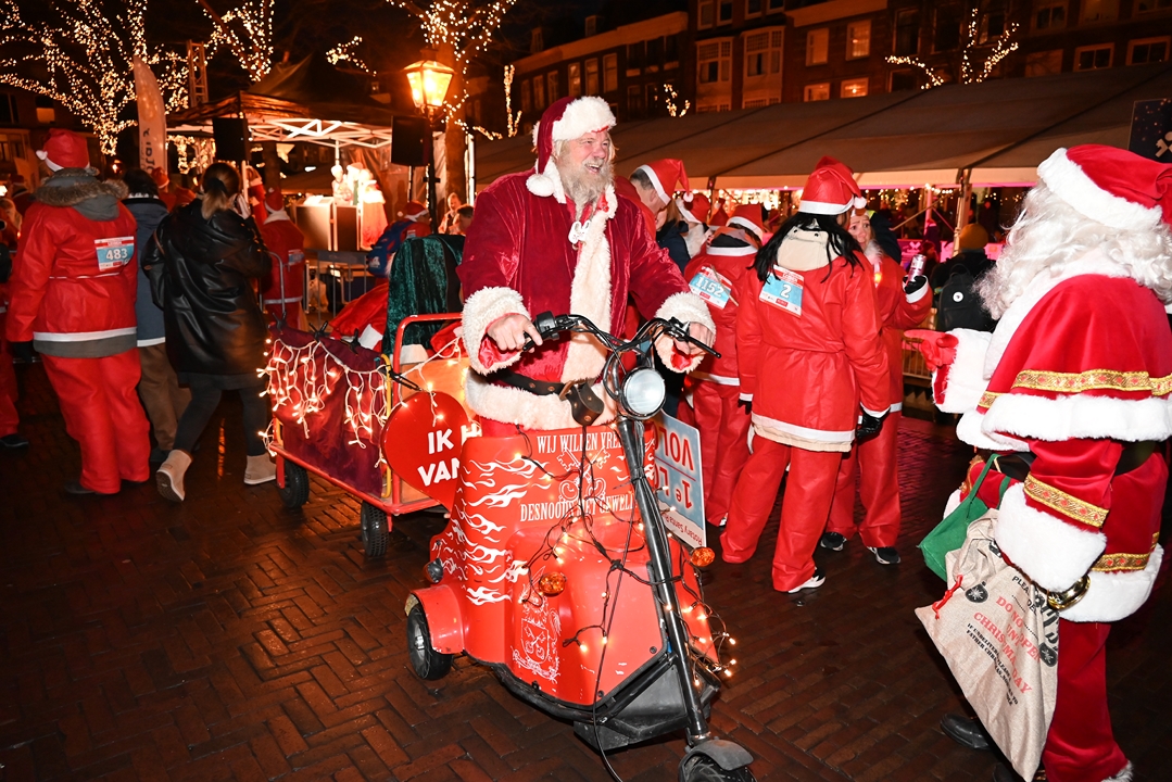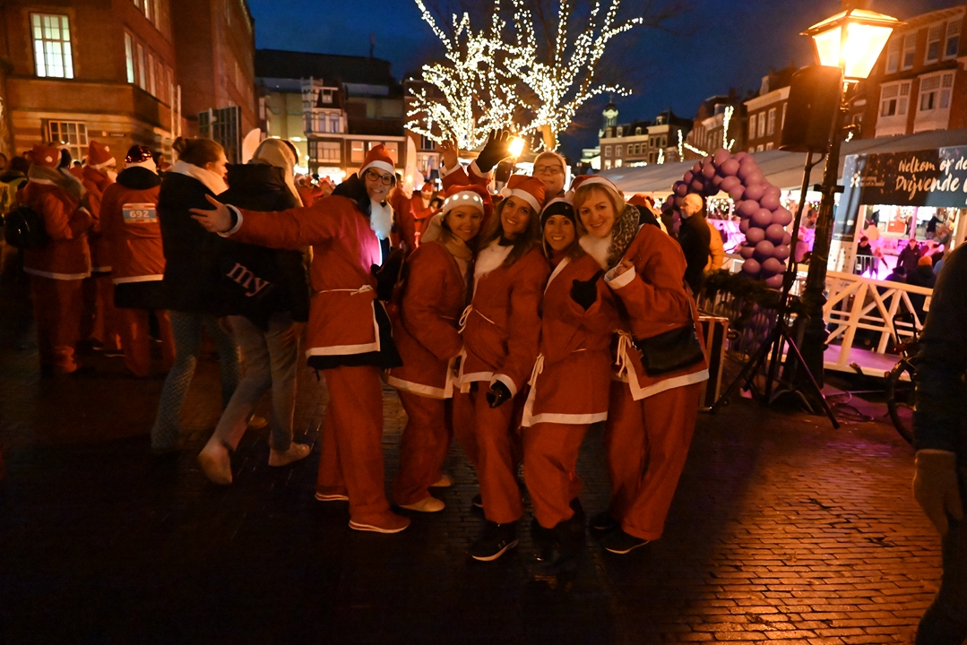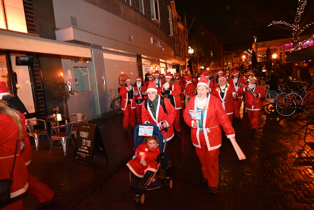 Onder aanvoering van de ‘echte kerstman’ liepen donderdagavond ruim 1500 hulpkerstmannen, -vrouwen en kinderen mee aan de Rotary Santa Run Leiden. Anders dan de naam doet vermoeden wordt er niet gerend maar gewandeld door het historische centrum van de stad. Een kaartje voor de wandeling kost 15,74 euro. De opbrengst gaat naar het goede doel.