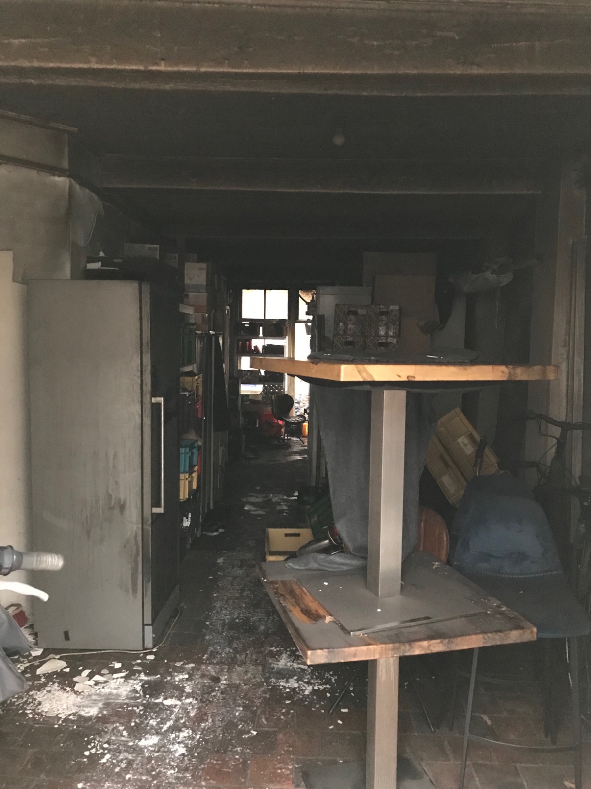 De uitgebrande ruimte is het magazijn van het er tegenover gevestigde restaurant Sabor. Oorzaak is waarschijnlijk kortsluiting. De schade is groot.
