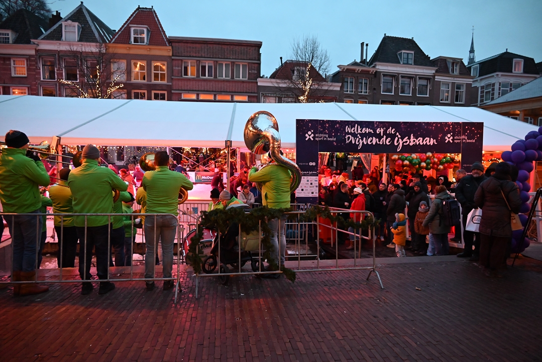 “Door de ijzel valt het wel een beetje in het water. Maar we maken er het beste van”, vertelt organisator Leo de Vogel terwijl het eerste orkest zich aan de zijkant van de ijsbaan warm probeert te spelen. In plaats van in twee sessies werden de optredens tot het eerste deel beperkt. “We staan van 16.00 uur tot 18.00 uur. De tweede serie optredens hebben we afgelast. Jammer want het is juist heel erg druk op de ijsbaan.”