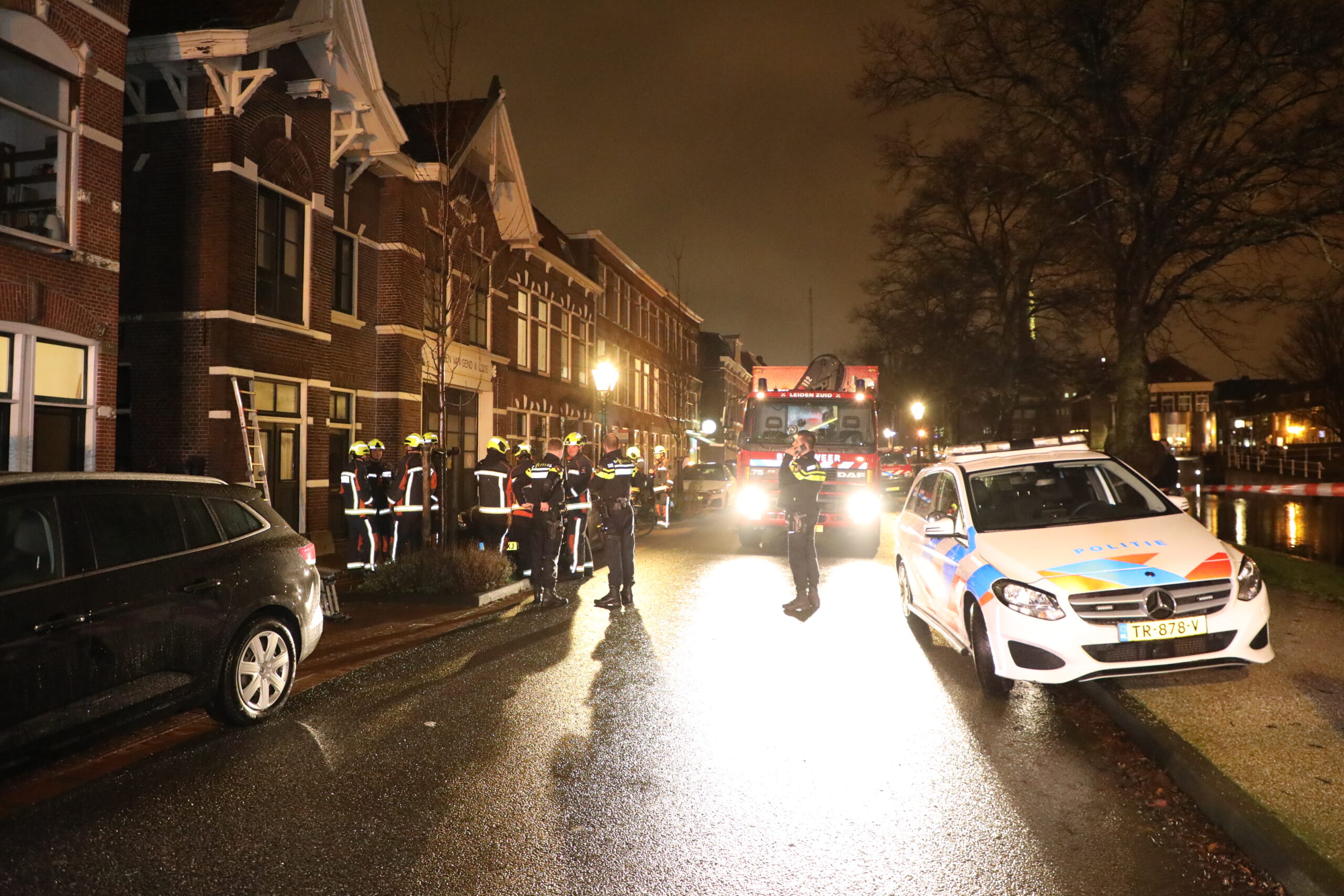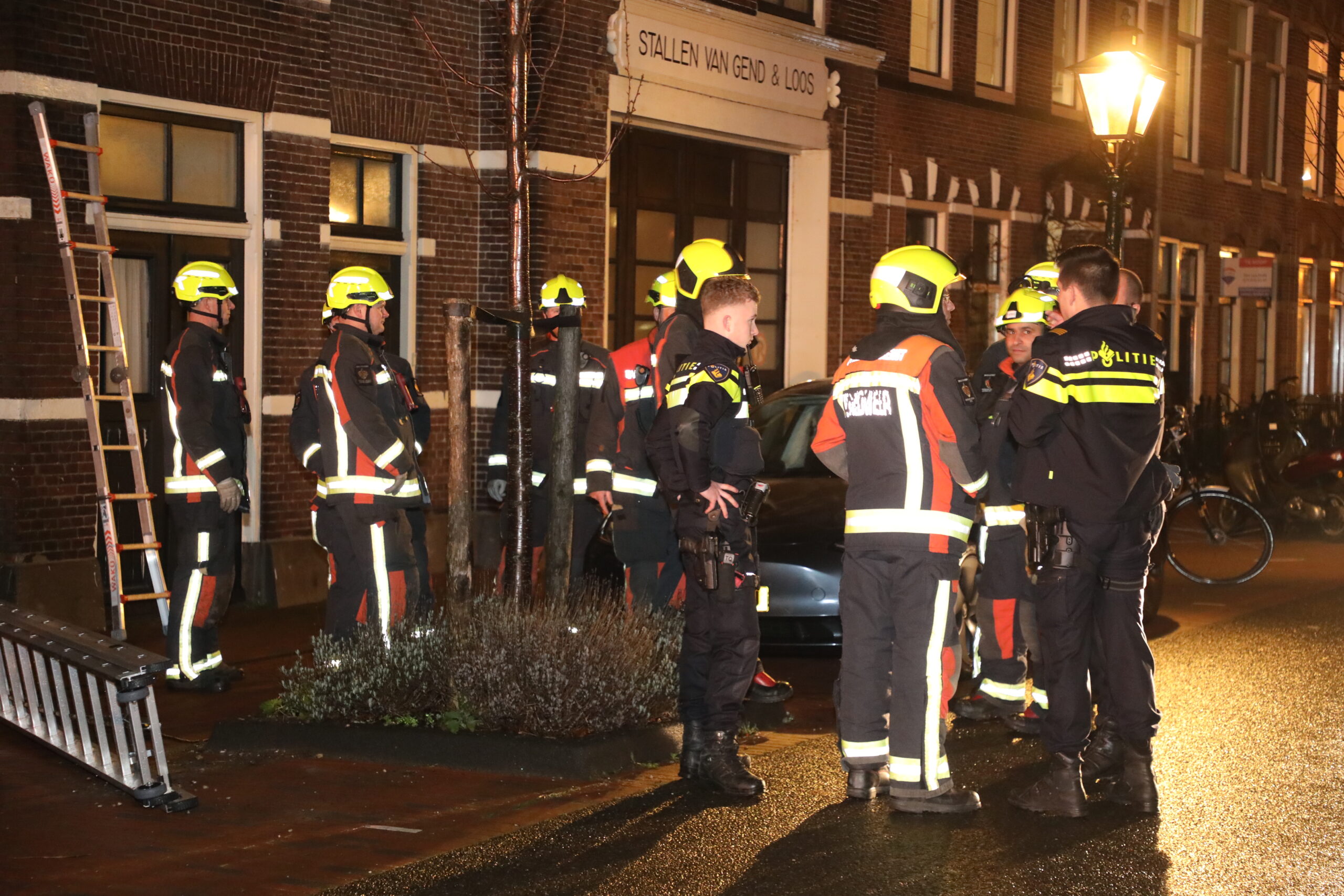 Politie en brandweer waren snel ter plaatse en hebben op de eigenaar van het pand gewacht. Het is voor de brandweer te gevaarlijk om met een ladder omhoog te gaan.