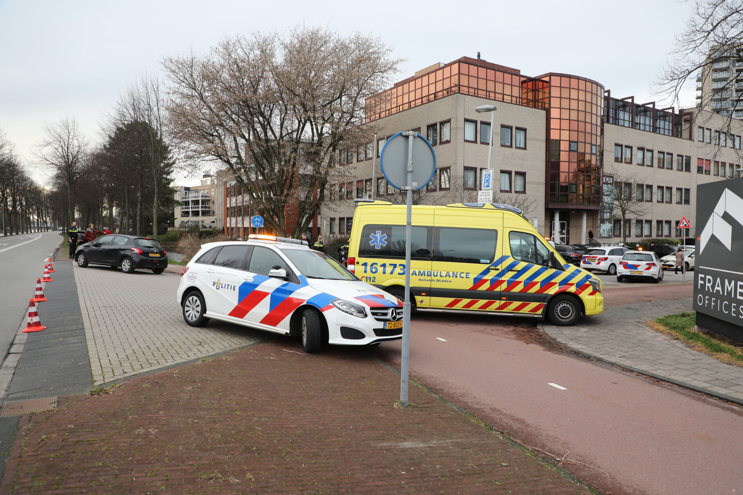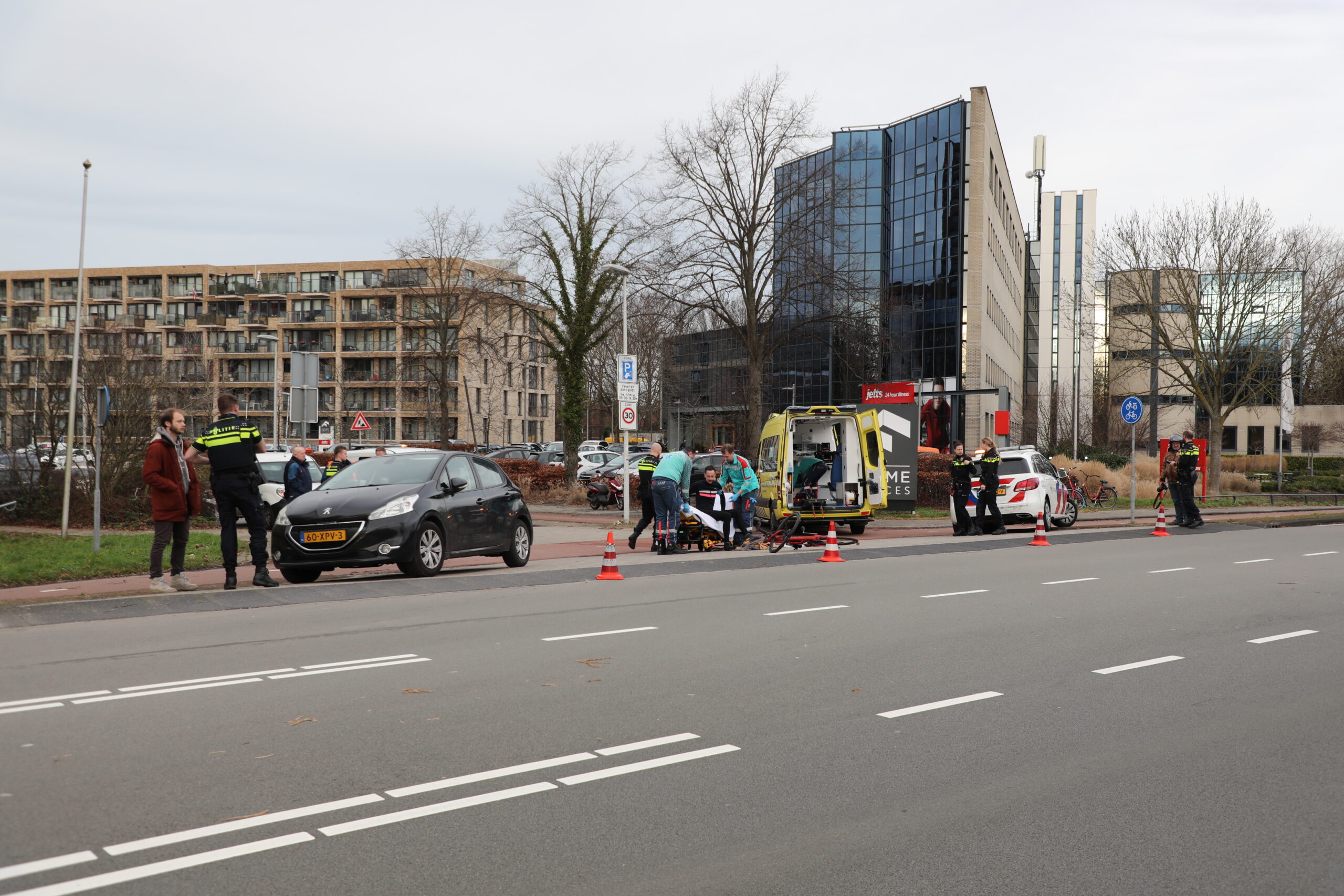Een wielrenner is vrijdagmiddag gewond afgevoerd naar het ziekenhuis, nadat hij op de Kanaalweg was aangereden door een personenauto die afsloeg naar het Kanaalpark. De racefietser kwam daarbij hard ten val.