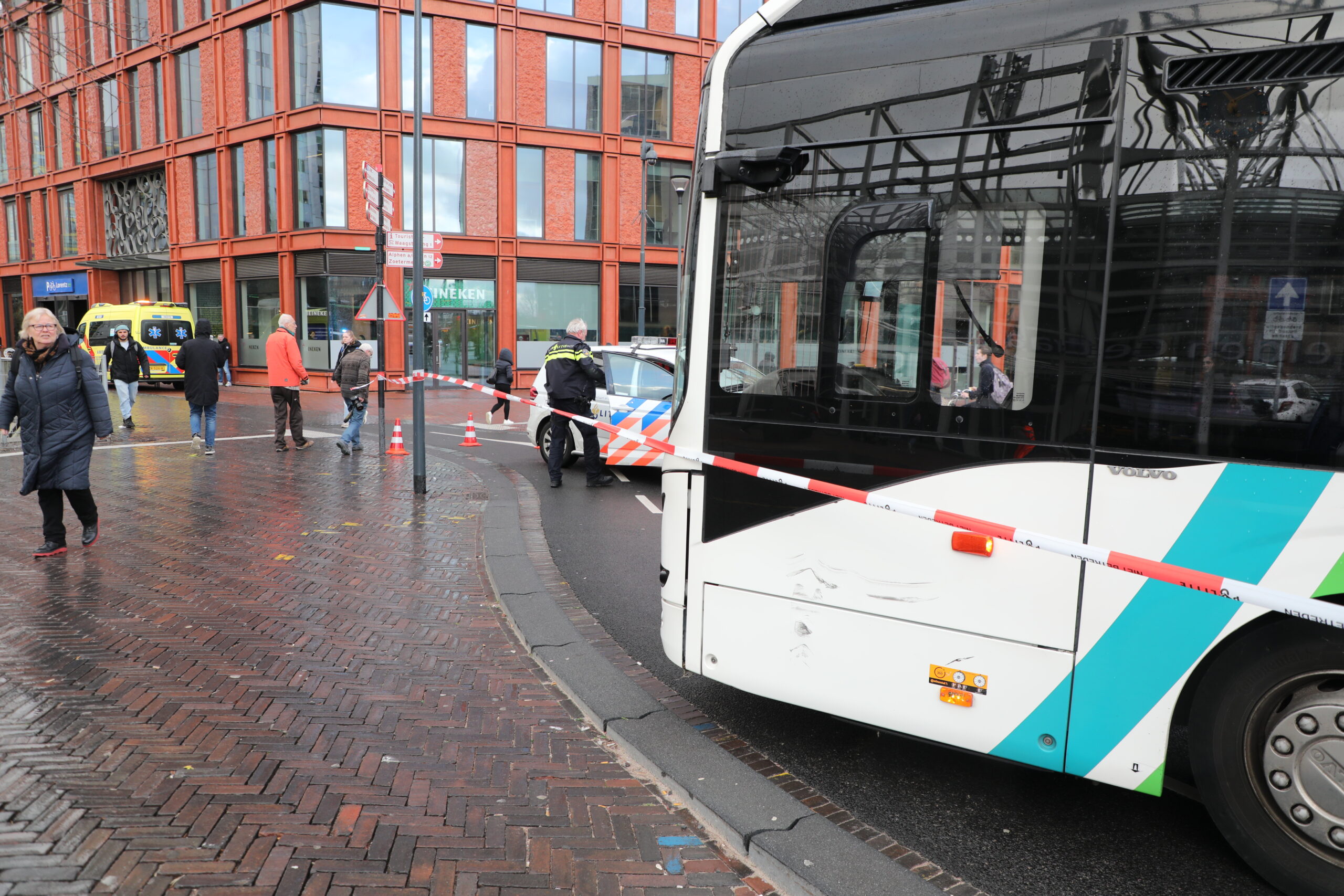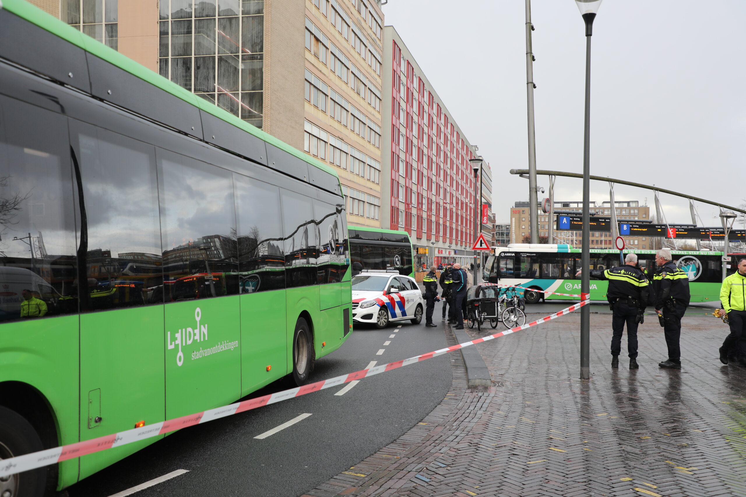 Op het Stationsplein in Leiden is aan het begin van de middag een stadsbus op een bakfiets gebotst. De bestuurder van de bakfiets raakte hierbij gewond en is met een ambulance naar het ziekenhuis gebracht. De politie onderzoekt het ongeval.