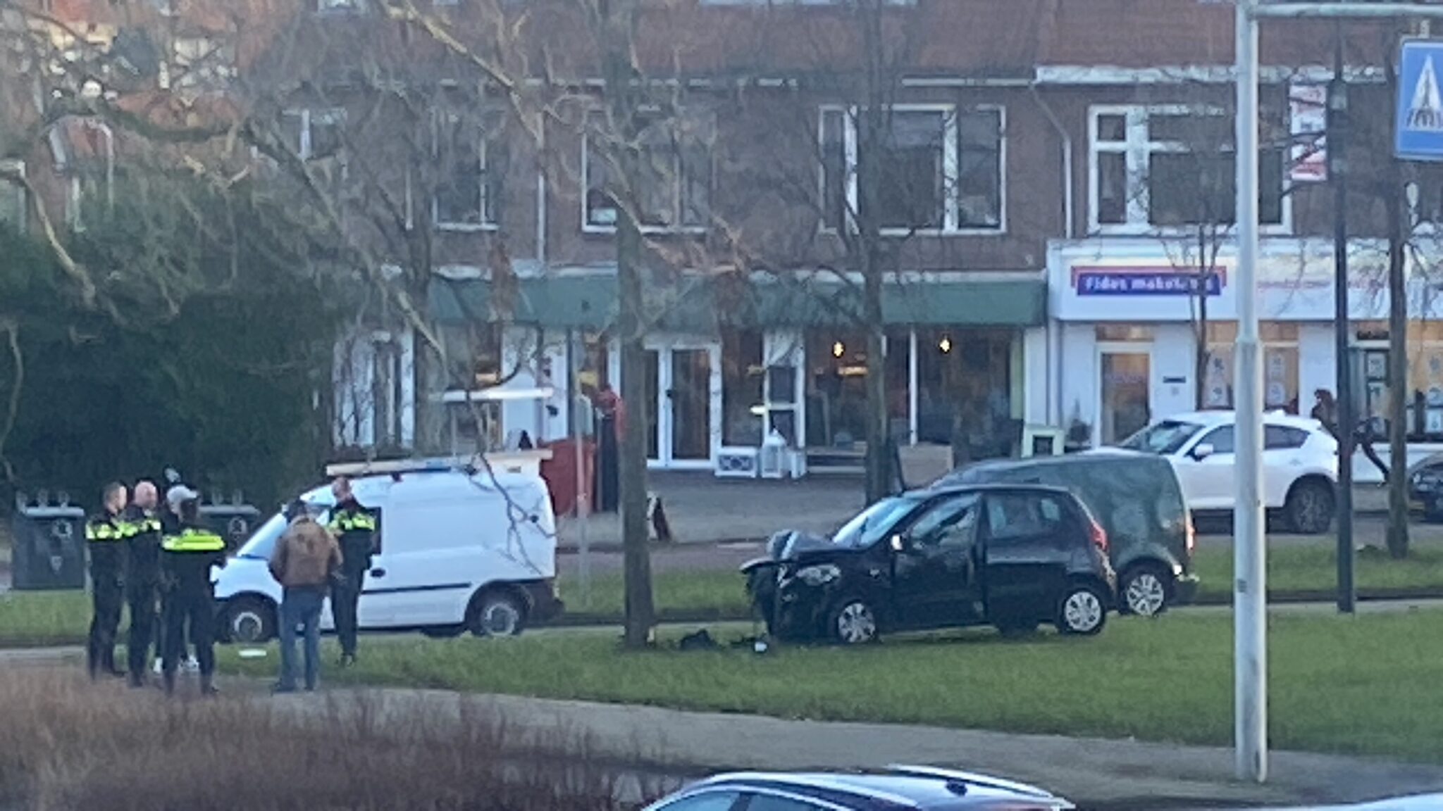 Op de kruising met de Zeemanlaan ging het mis. Een auto knalde tegen een boom, waarop ambulance, brandweer en politie werden opgetrommeld. De materiële schade is aanzienlijk. De inzittenden bleven min of meer ongedeerd